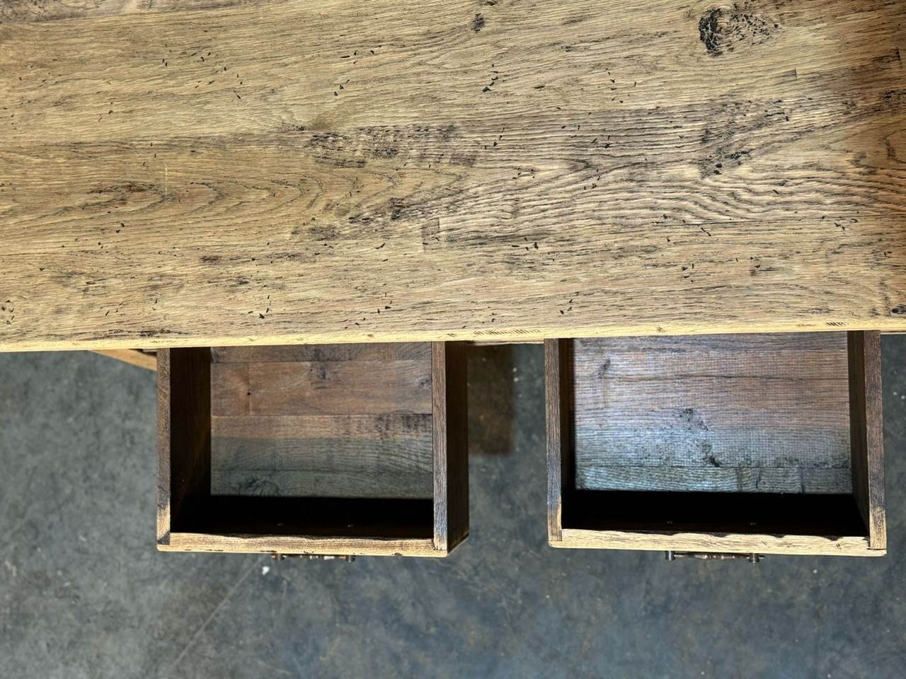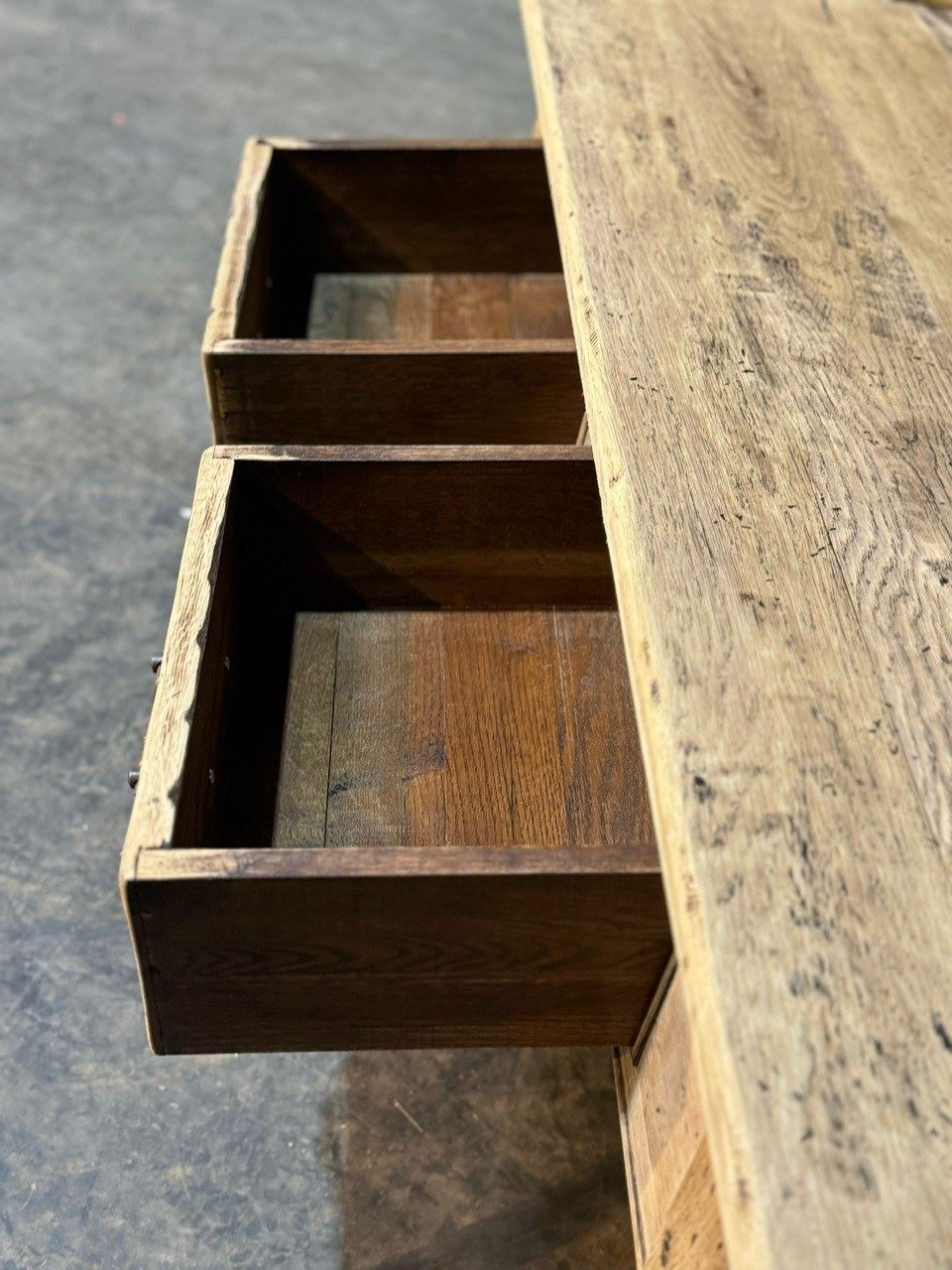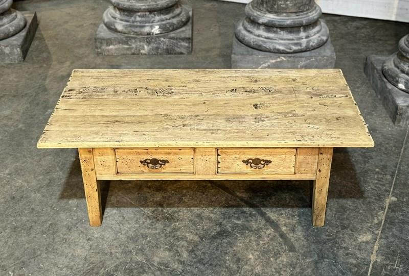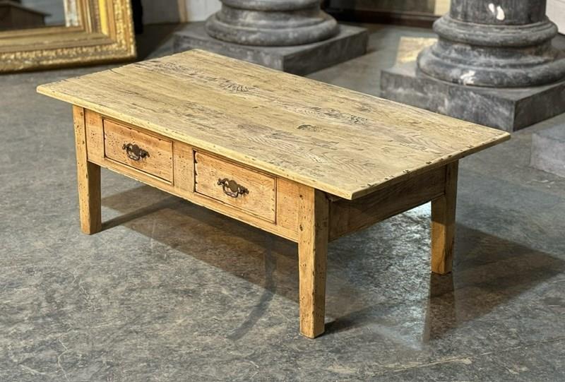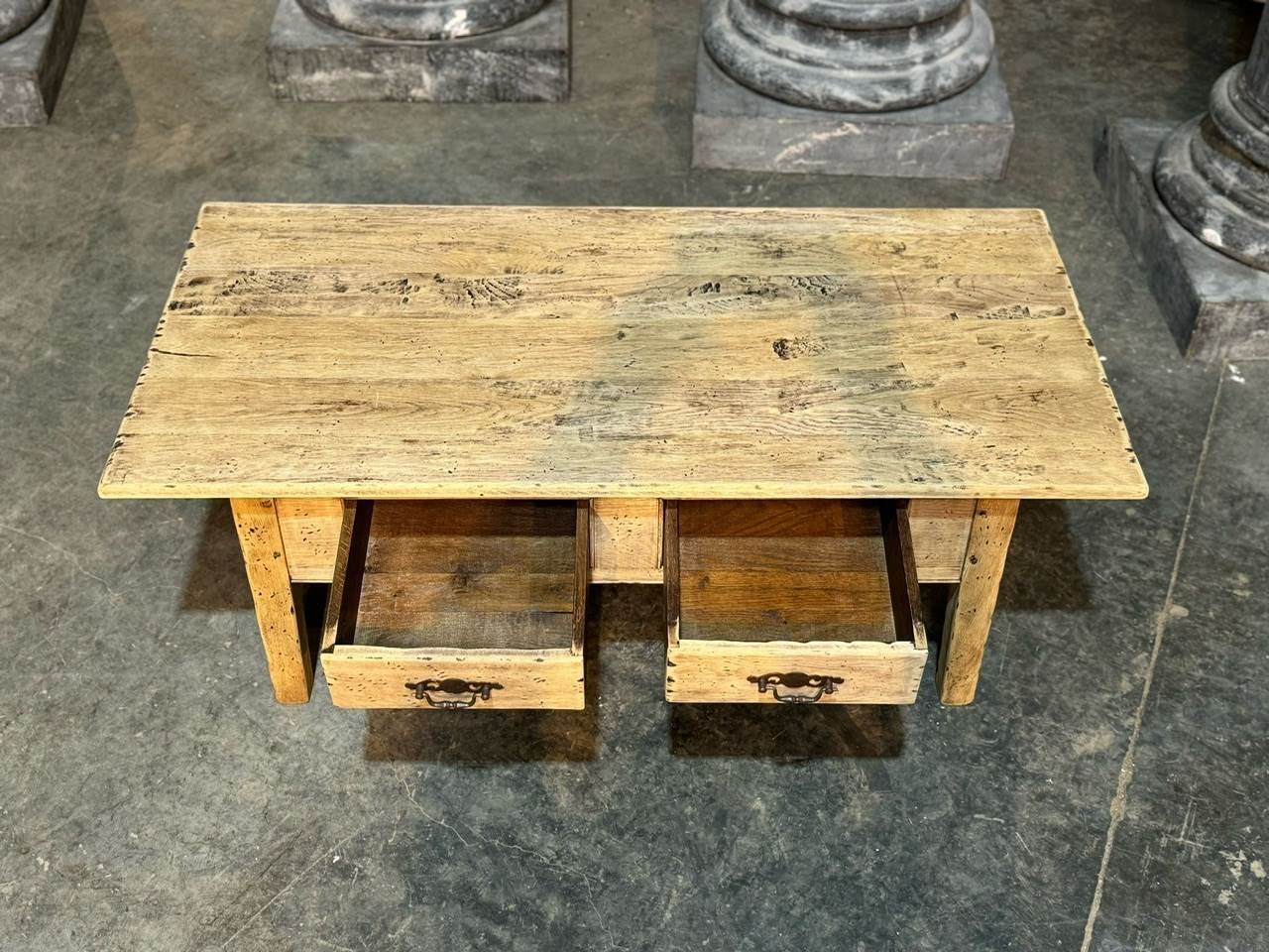 A good quality larger sized French Bleached Oak Farmhouse Coffee Table, dating to the early 1900s and of good quality construction. Having 2 drawer to the front and we have bleached it first a lighter look and to bring out the beauty of the oak.