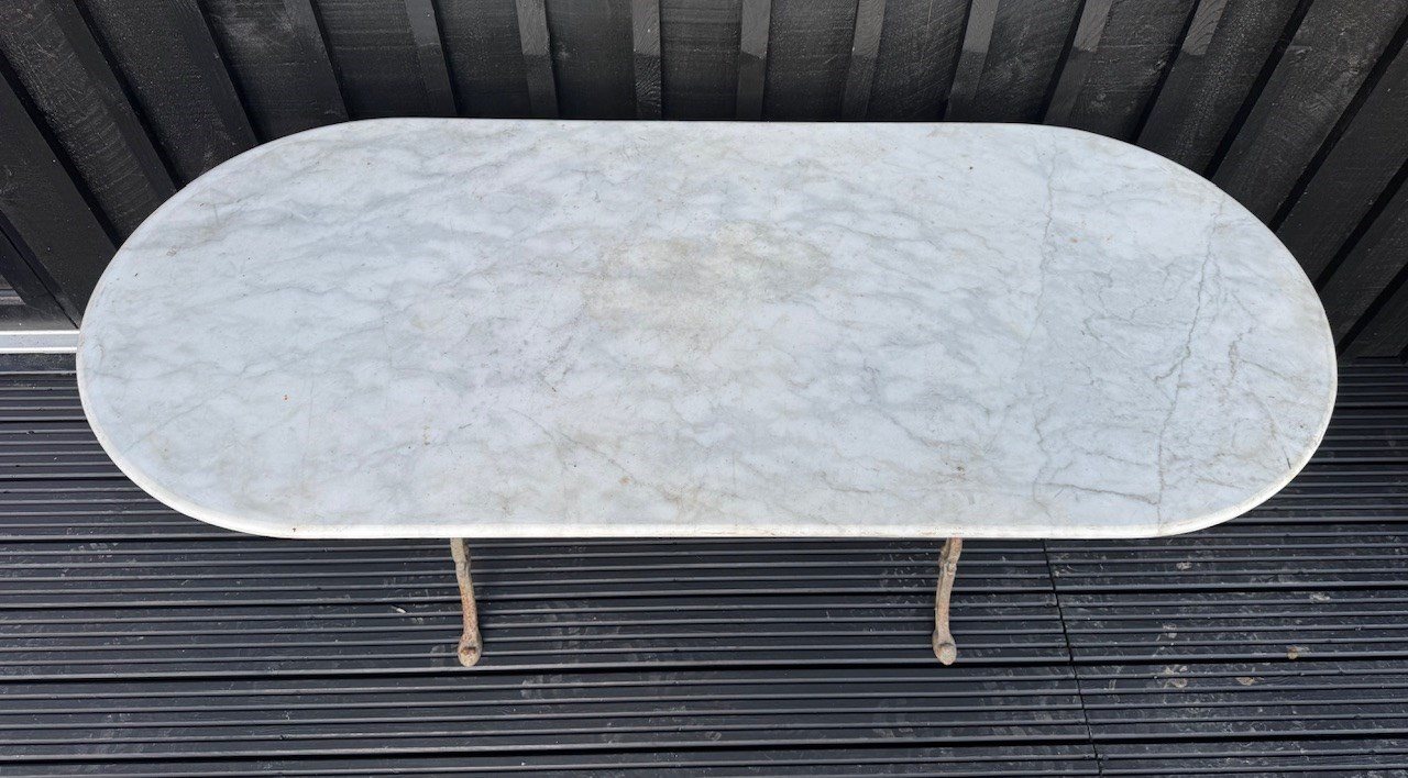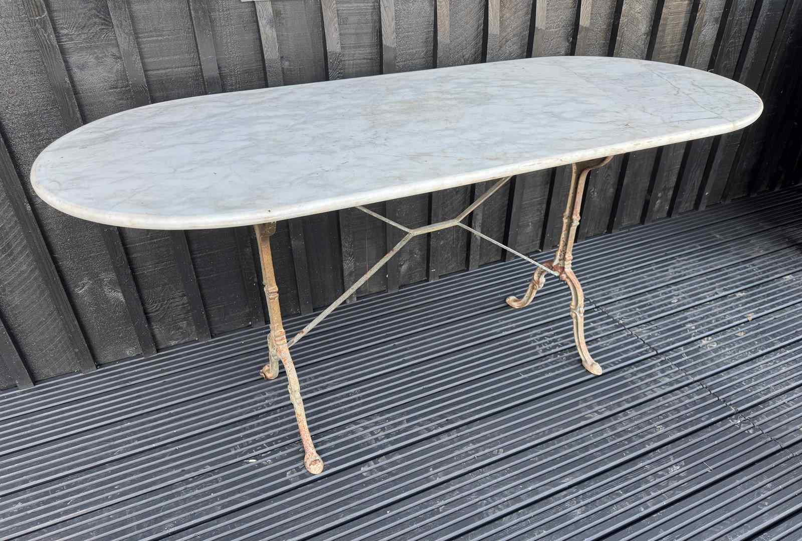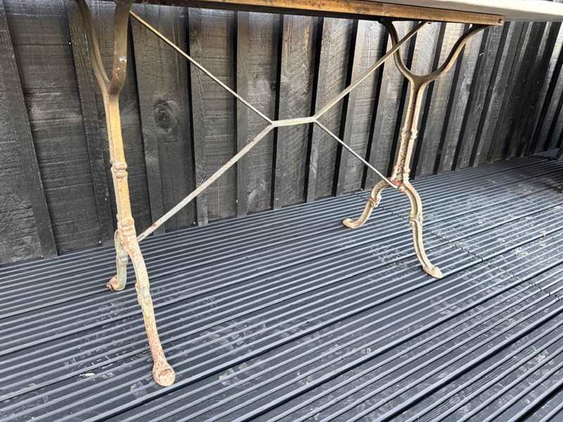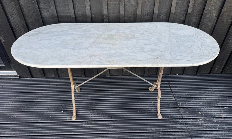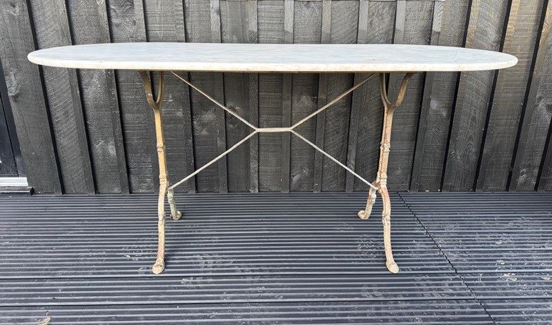 A larger than usual French Bistro Table. Having original marble top and cast iron base. In overall good condition.
