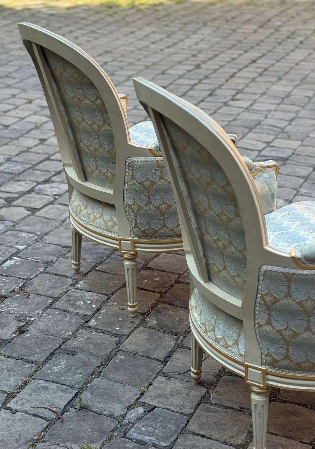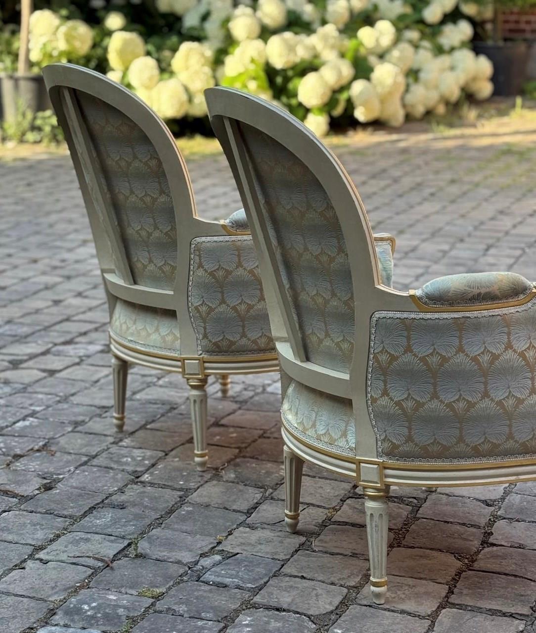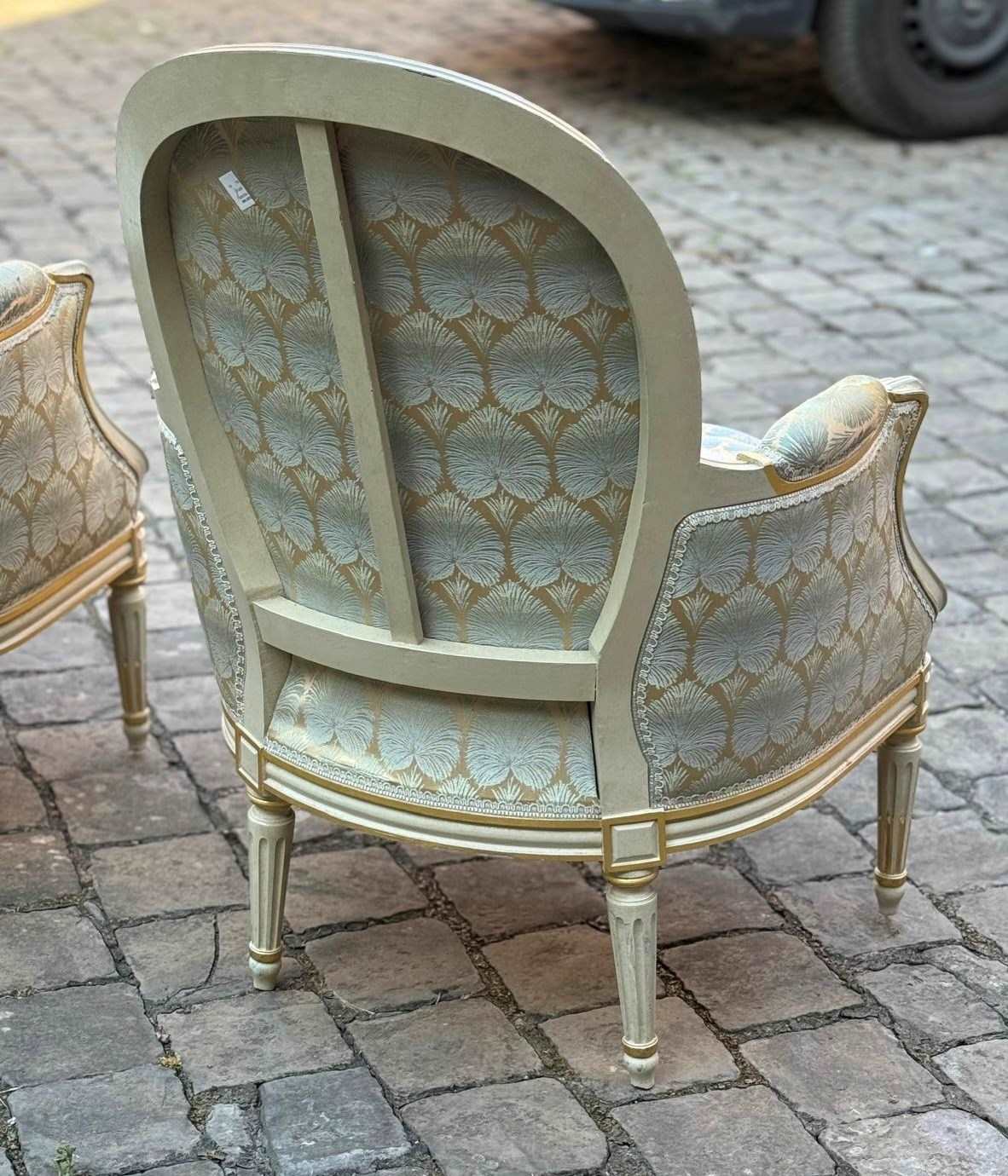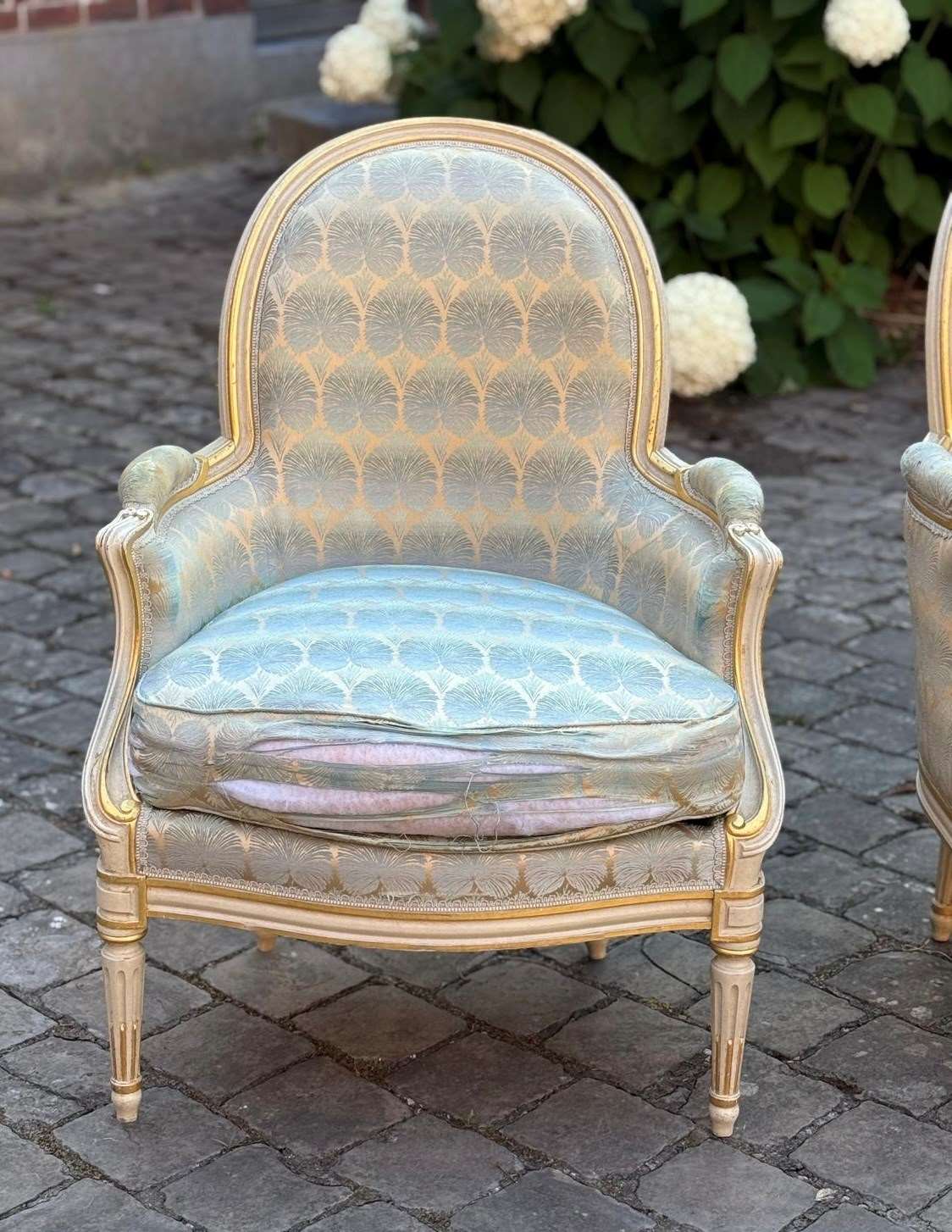 A comfortable pair of French Bergere Arm Chairs ready to be re covered in your fabric. The frames are strong and sturdy and in excellent original condition.