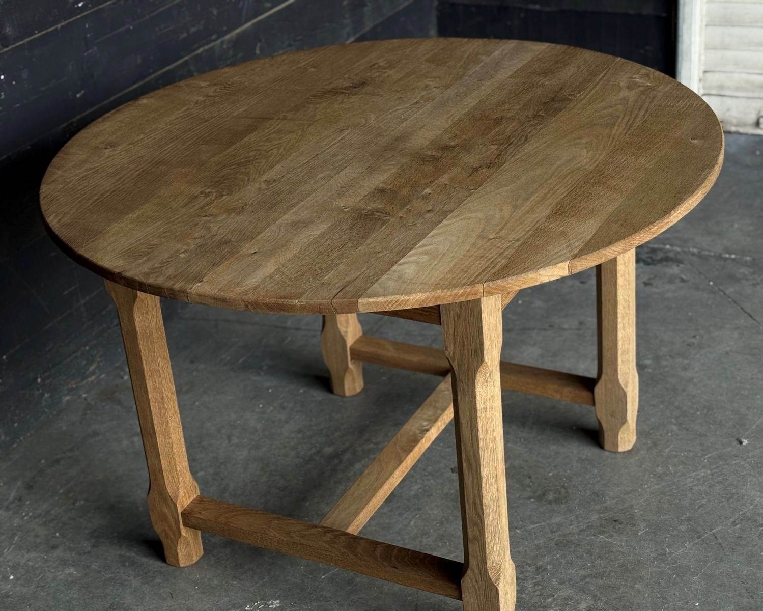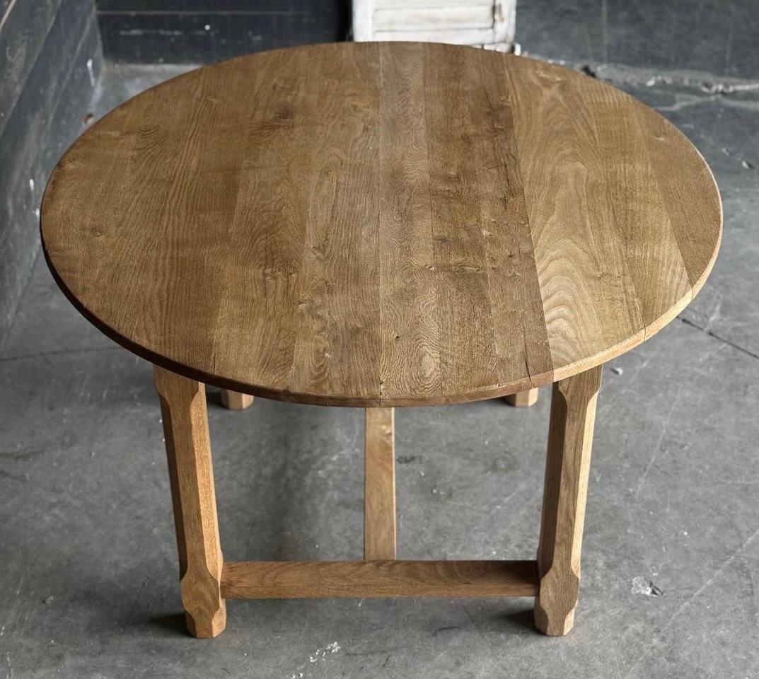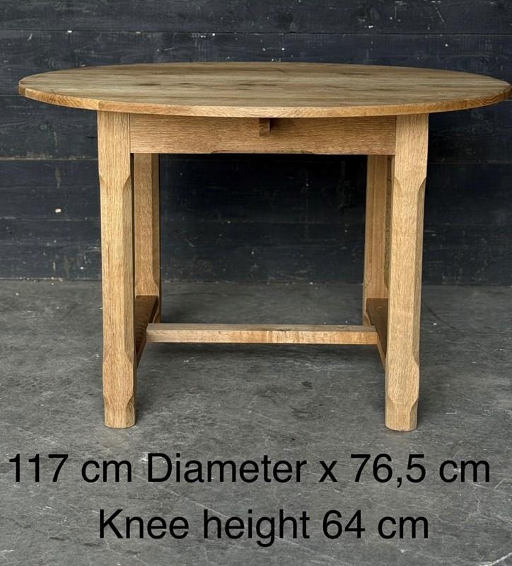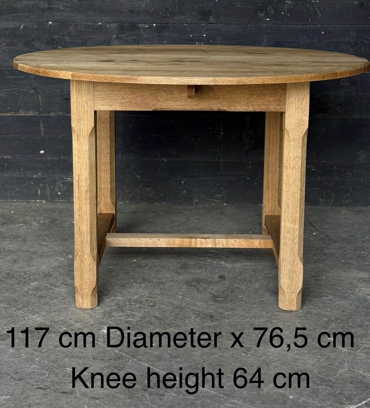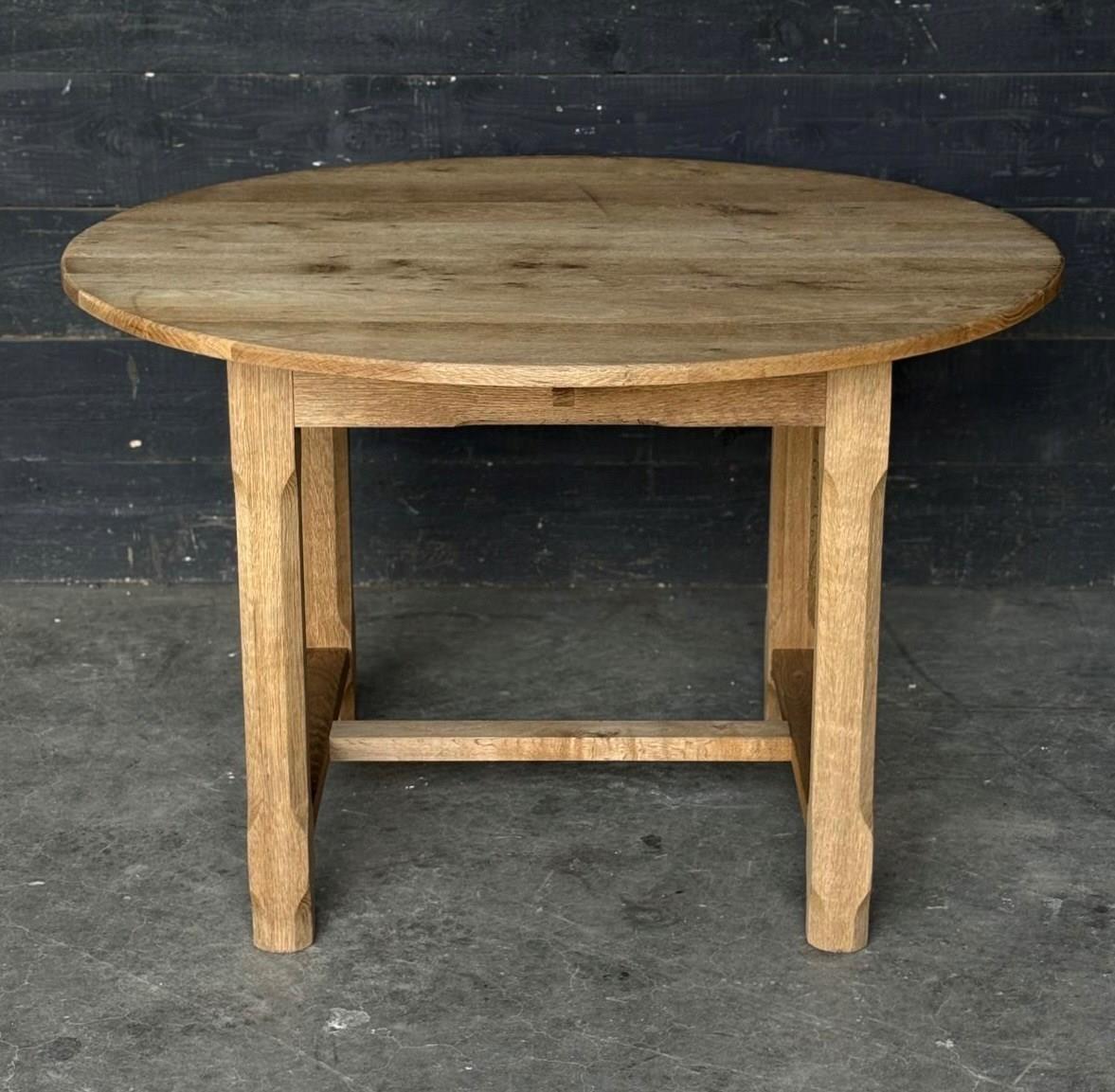 A lovely Solid Oak Round Farmhouse Dining Table. French in origin and dating to the early 1900s. We have bleached it for a lighter look and in excellent original condition for the home.