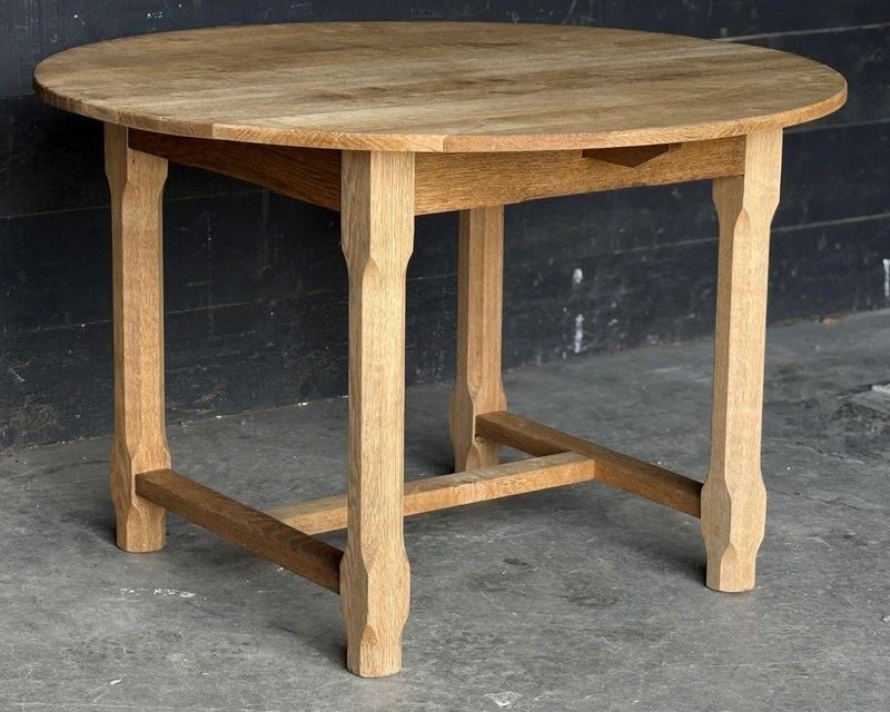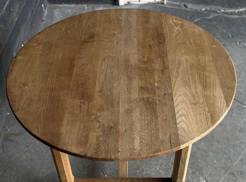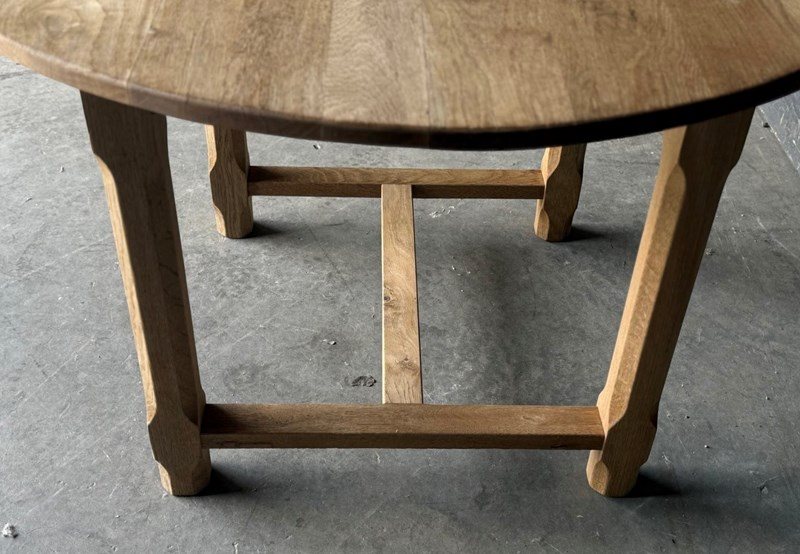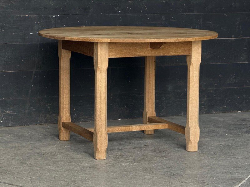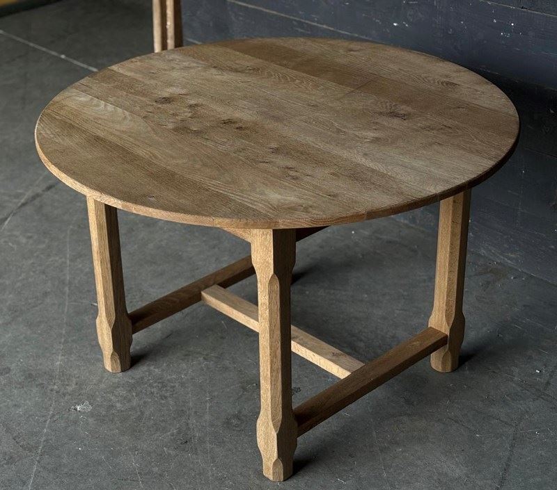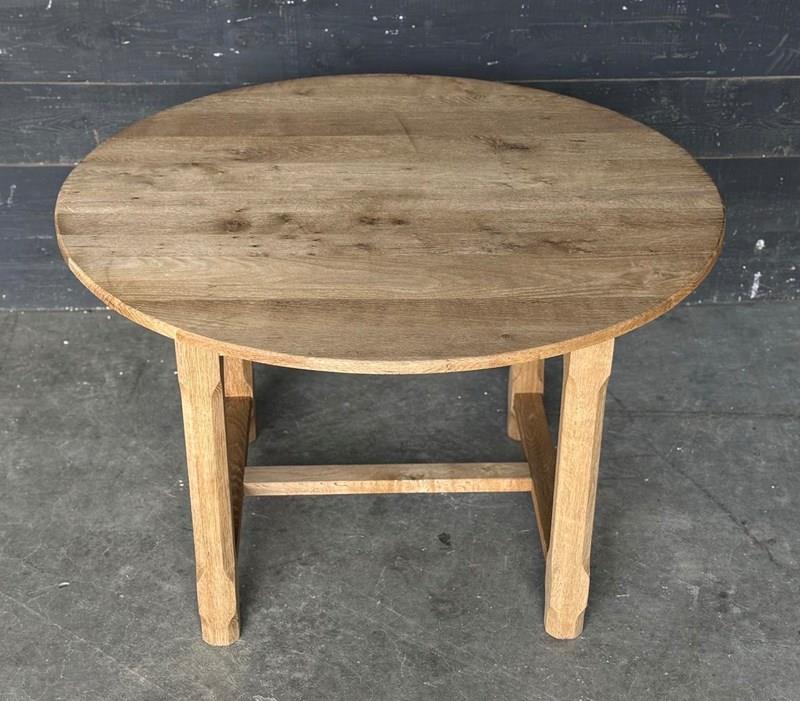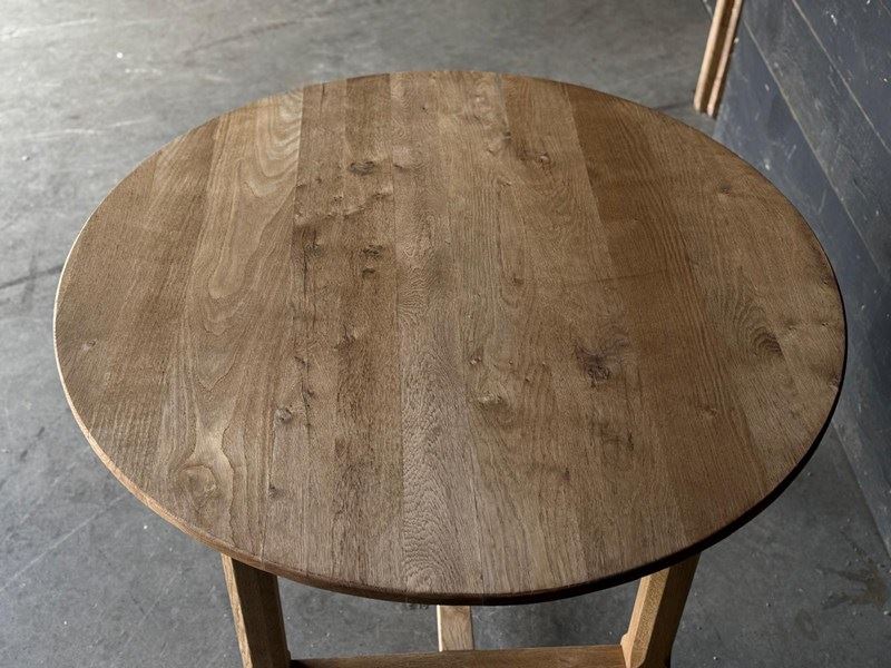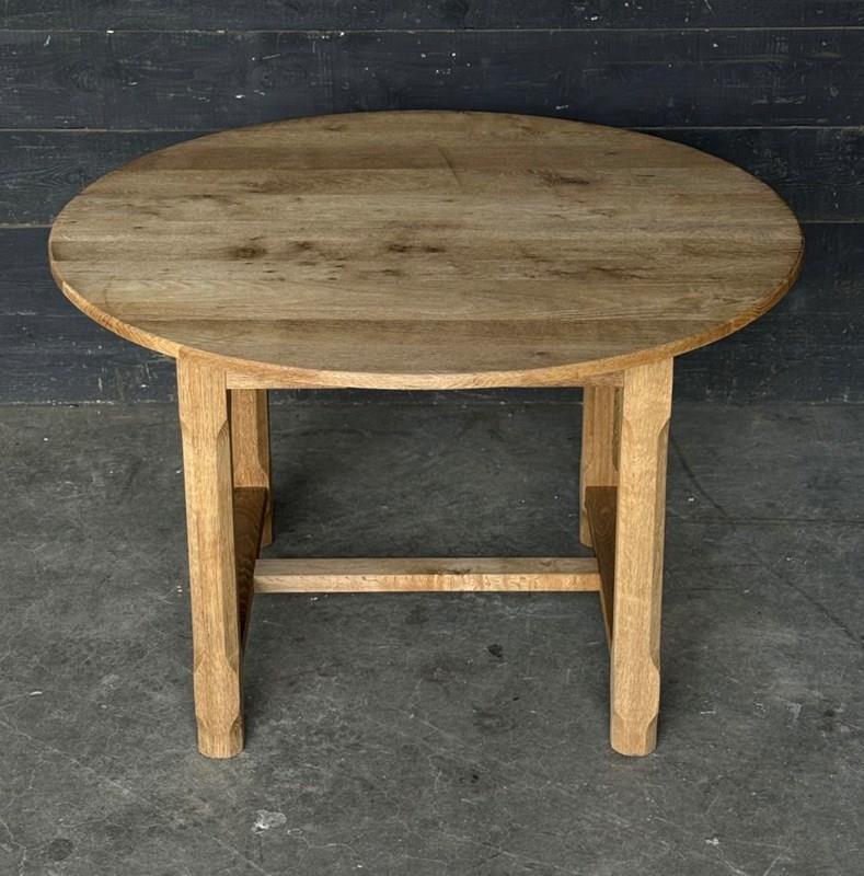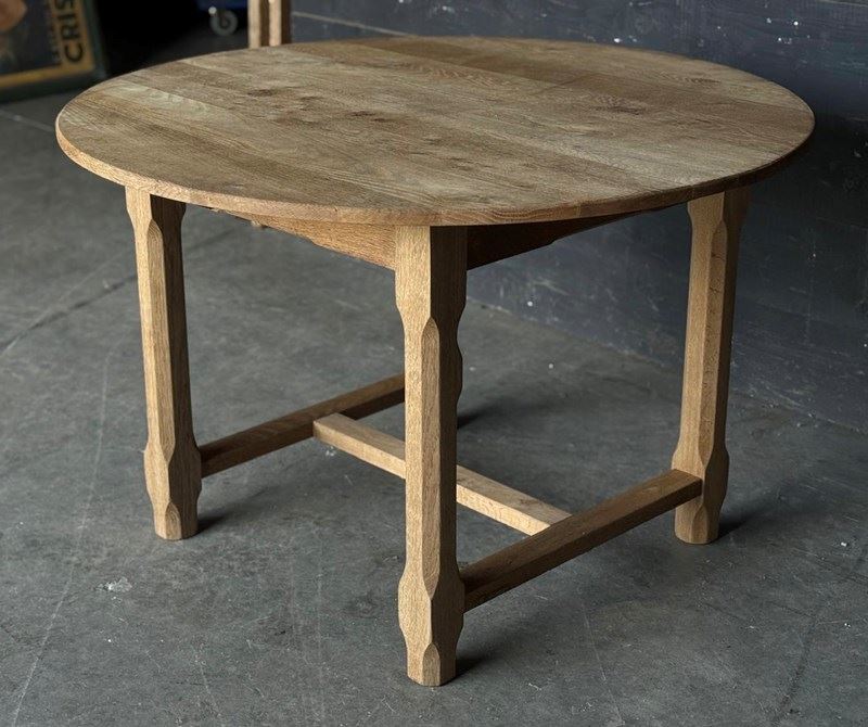 A lovely Solid Oak Round Farmhouse Dining Table. French in origin and dating to the early 1900s. We have bleached it for a lighter look and in excellent original condition for the home.