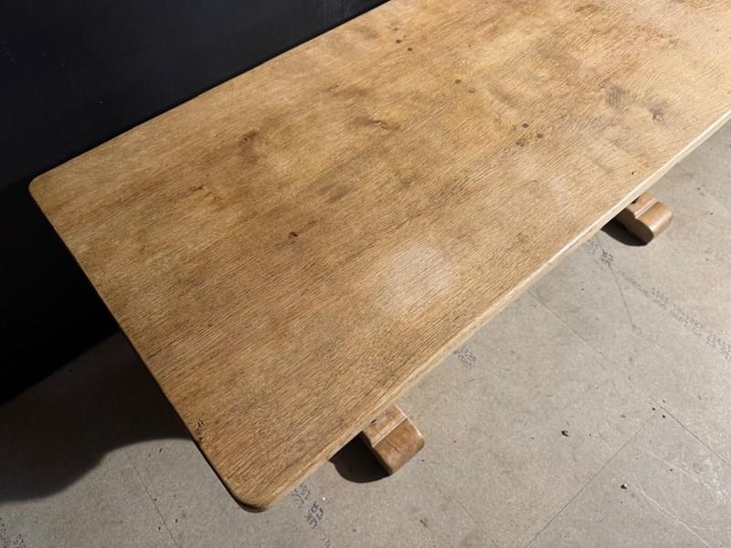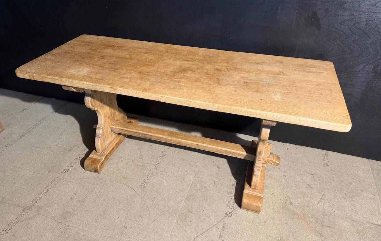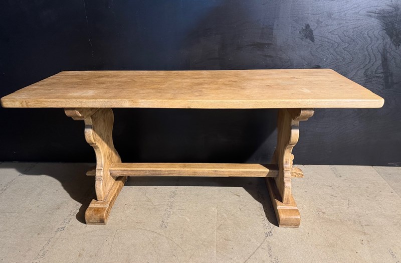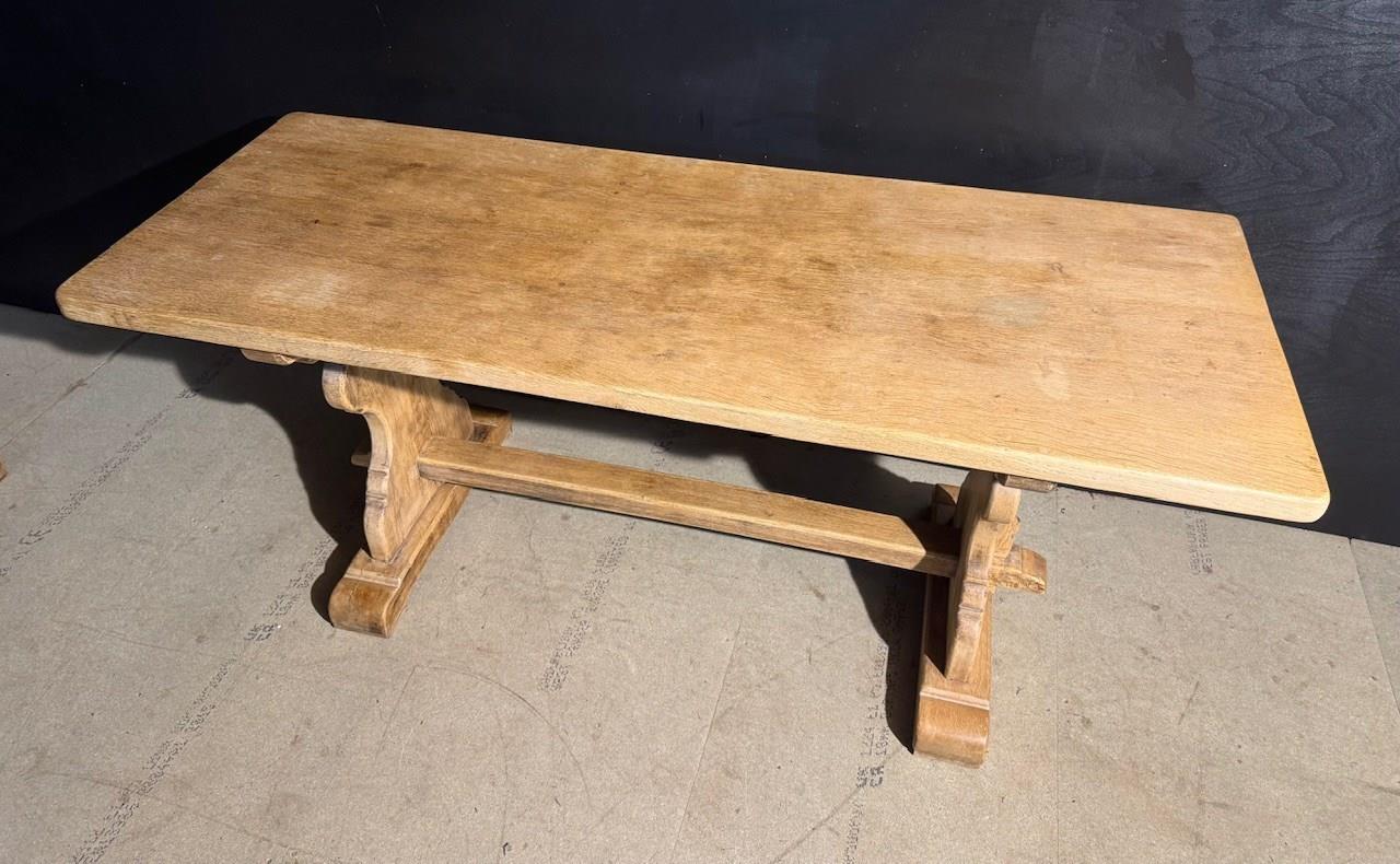 A good quality French Solid Oak Farmhouse Dining Table with slightly smaller proportions than usual. We have bleached it for a lighter look and on overall excellent original condition for the home. Height 76.5 cm Length 180 cm Depth 69 cm Between Legs 100.5 cm Top Thickness 4.5 cm End Overhang 30 cm