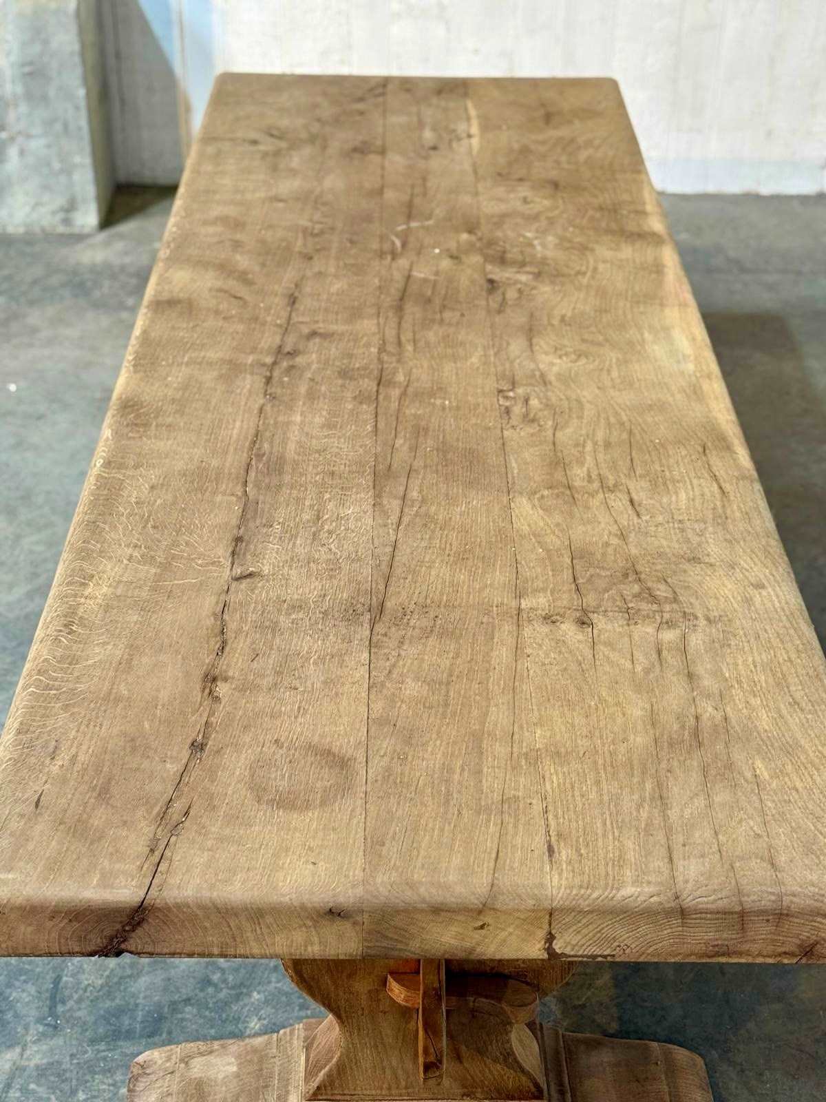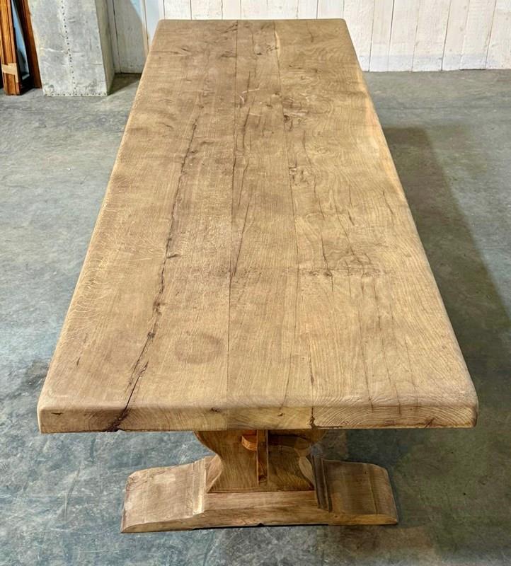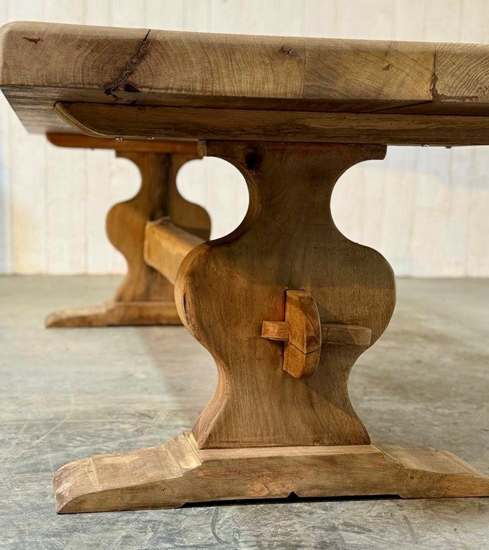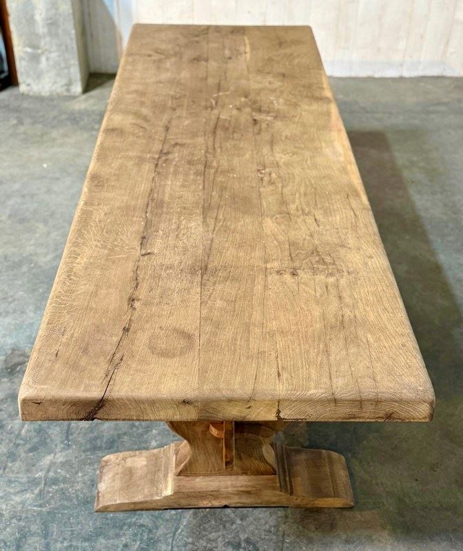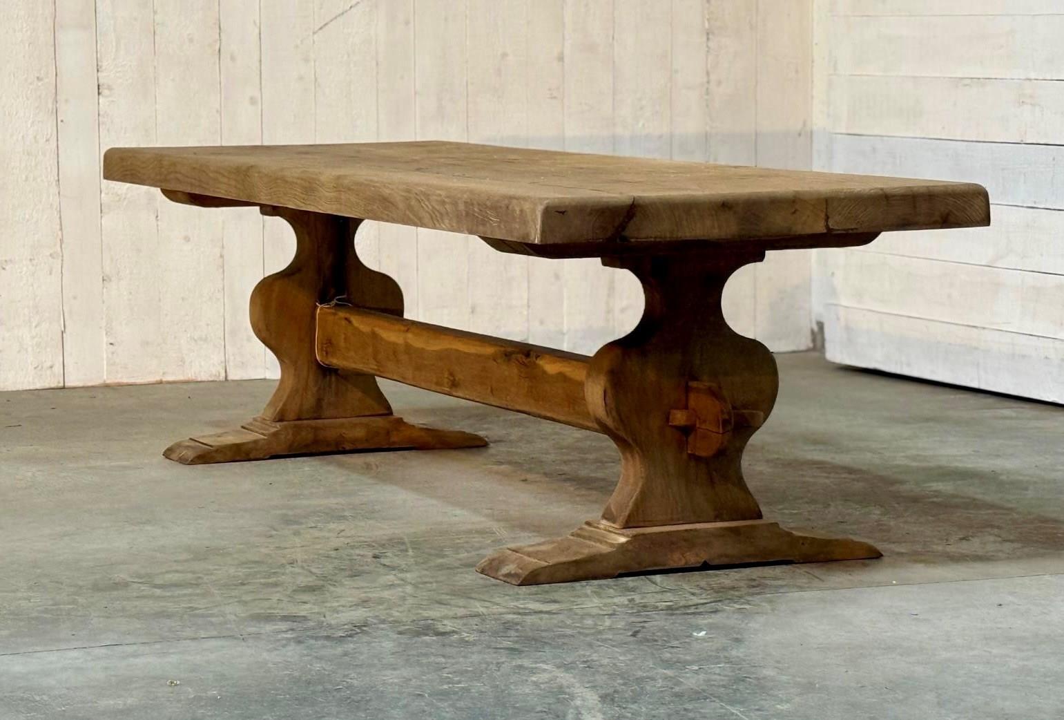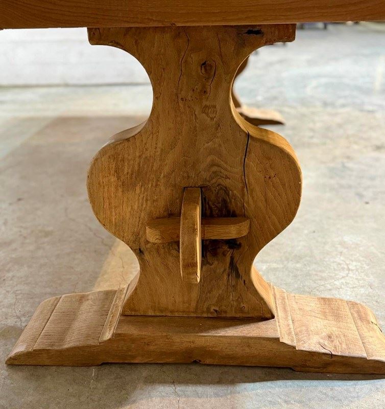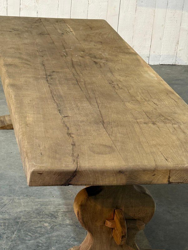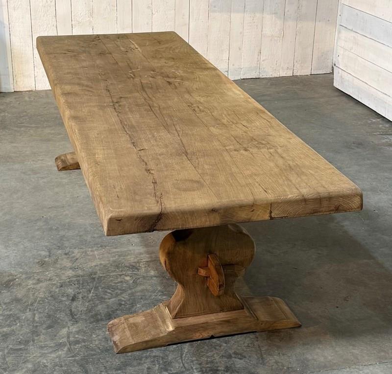 A wonderful solid Oak Farmhouse Dining Table, having loads of character and a great thick top. French in origin and dating to the early 1900s, of good quality construction this table will be around for generations to come. Comfortably seating 12 and 14 when needed, also a good depth which is rare.