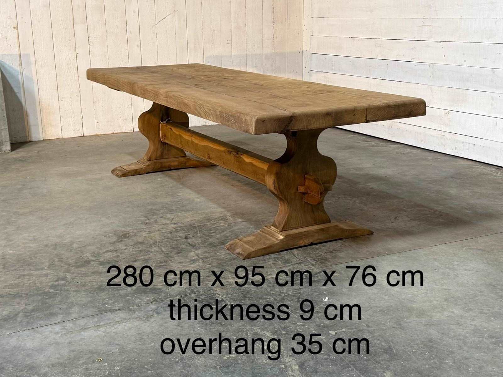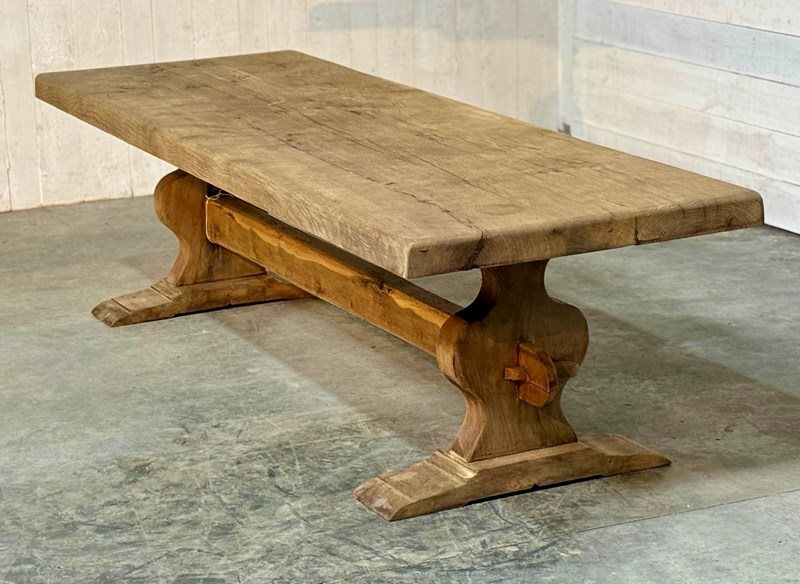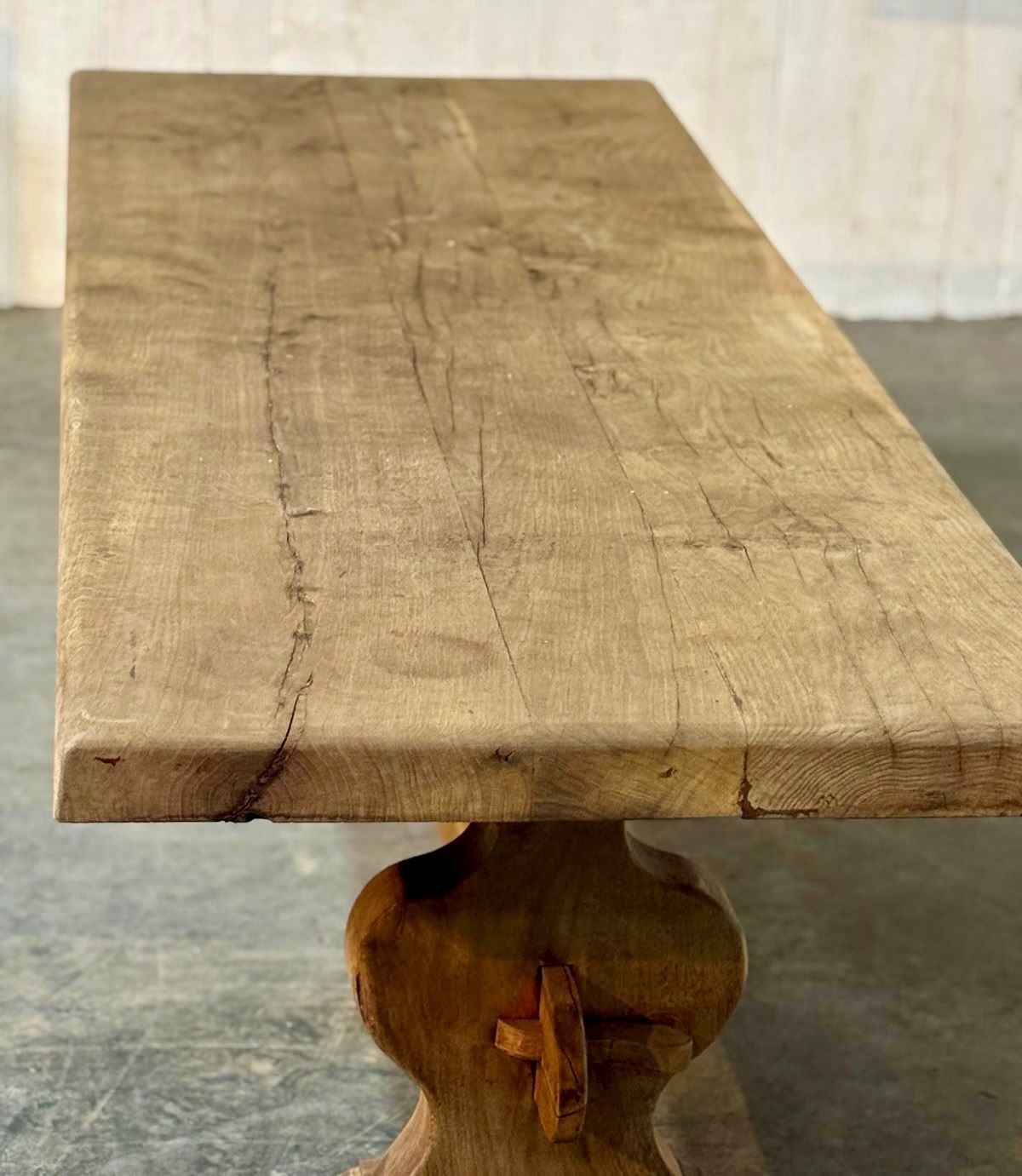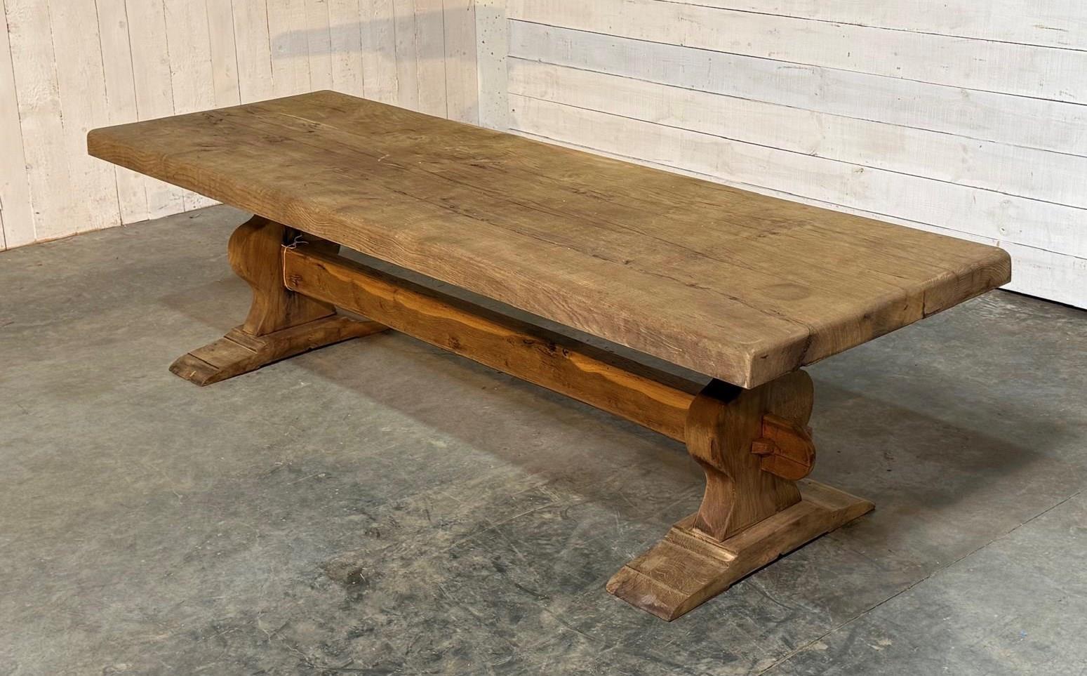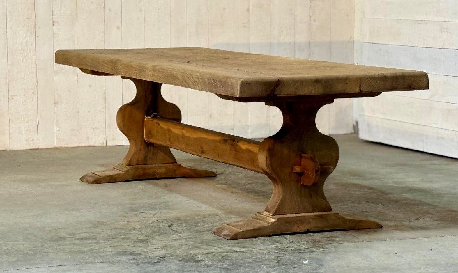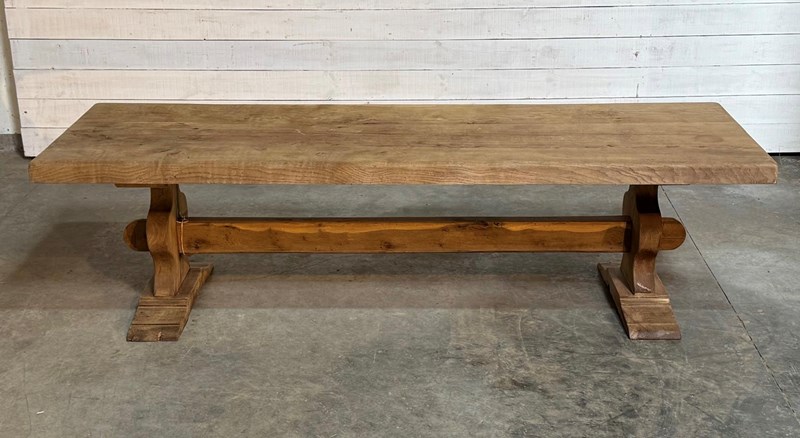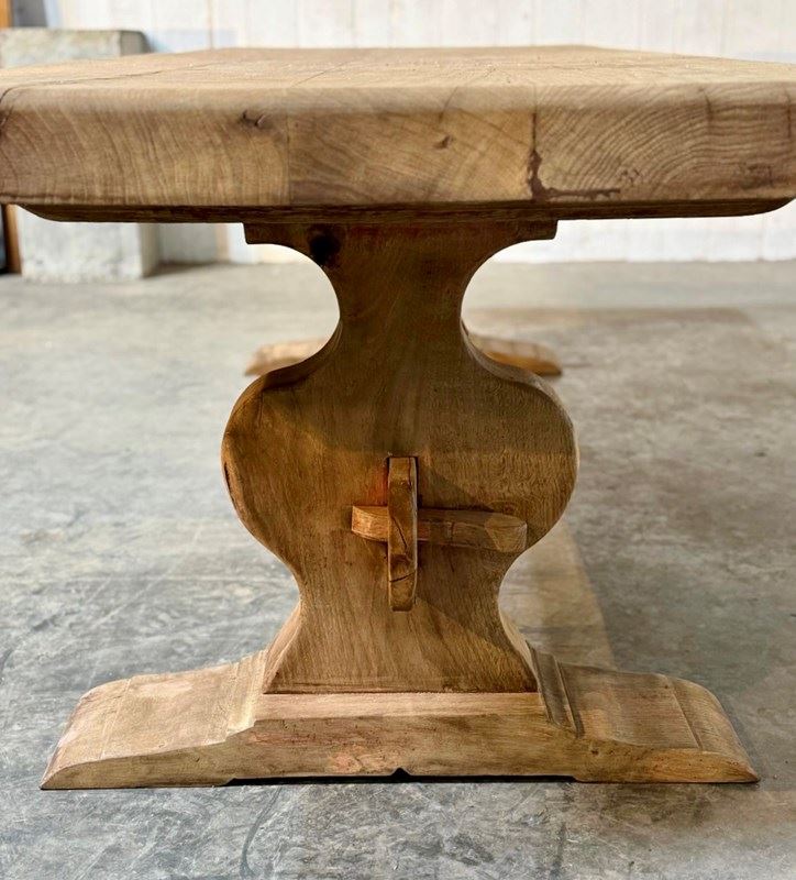 A wonderful solid Oak Farmhouse Dining Table, having loads of character and a great thick top. French in origin and dating to the early 1900s, of good quality construction this table will be around for generations to come. Comfortably seating 12 and 14 when needed, also a good depth which is rare.