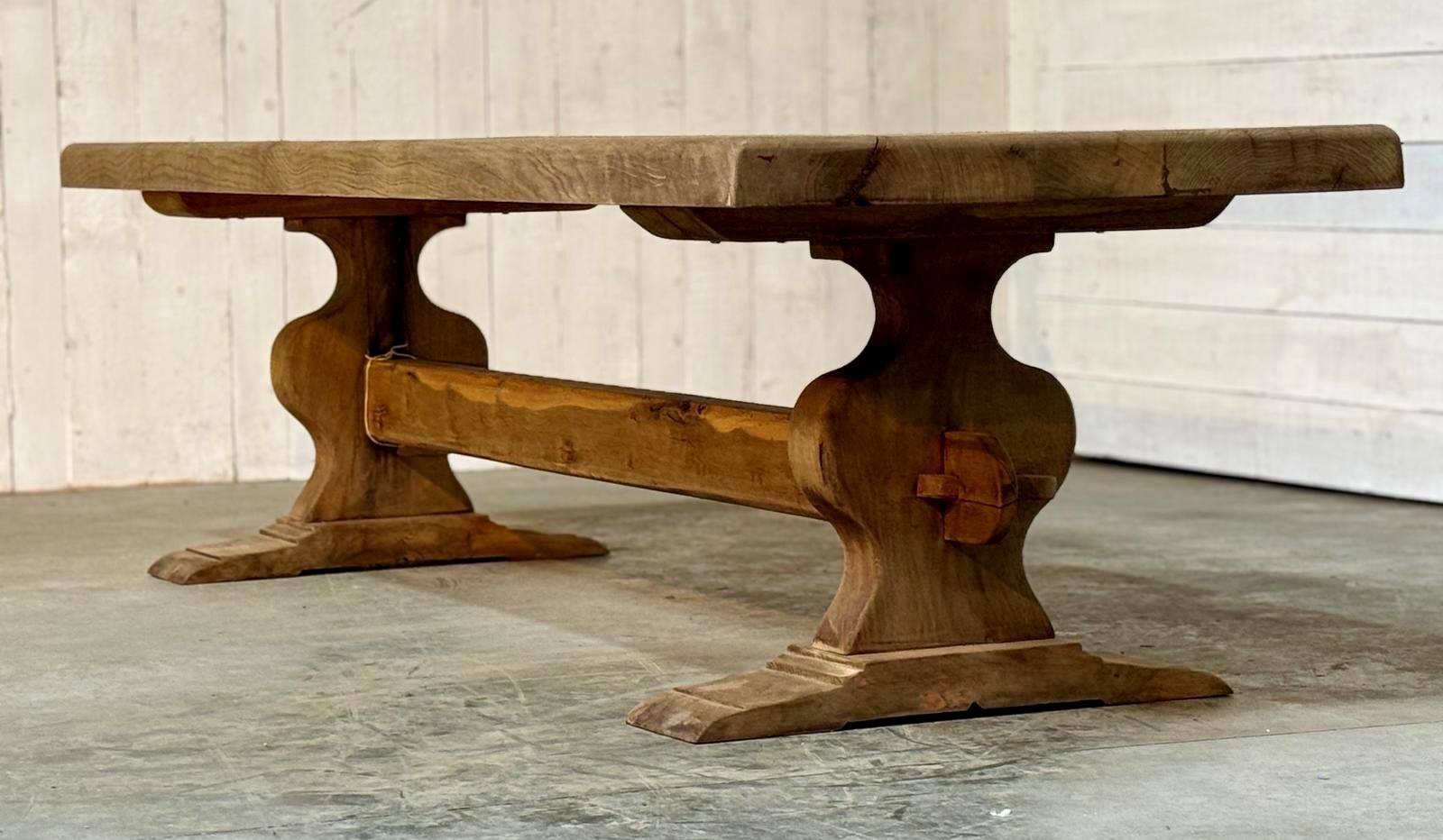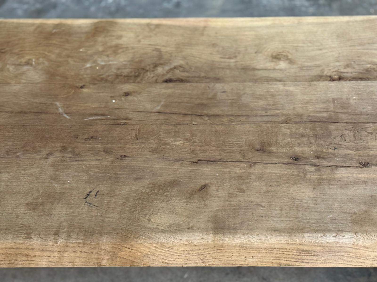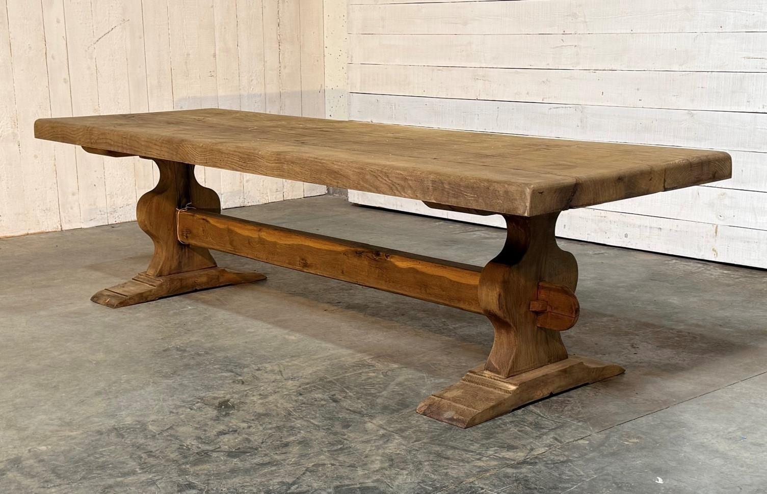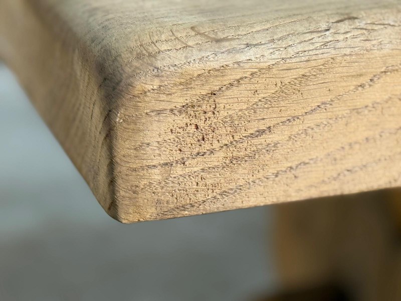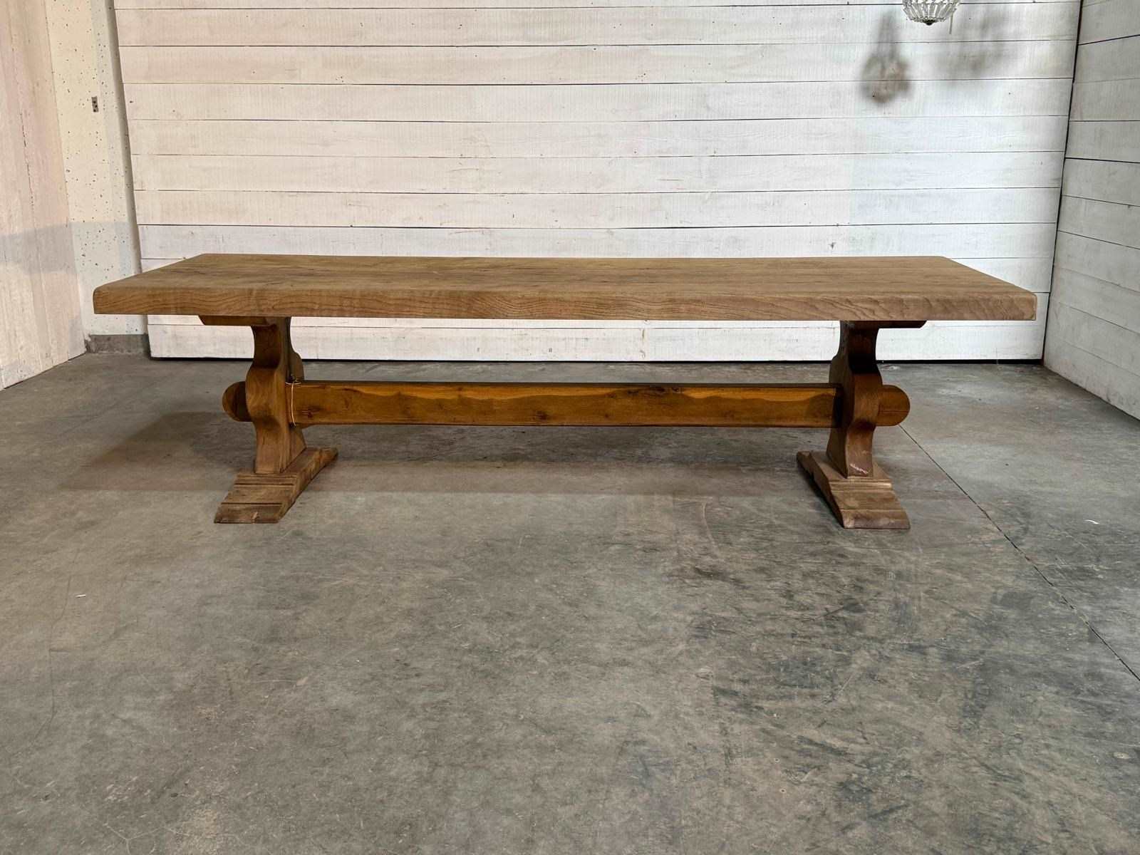 A wonderful solid Oak Farmhouse Dining Table, having loads of character and a great thick top. French in origin and dating to the early 1900s, of good quality construction this table will be around for generations to come. Comfortably seating 12 and 14 when needed, also a good depth which is rare.