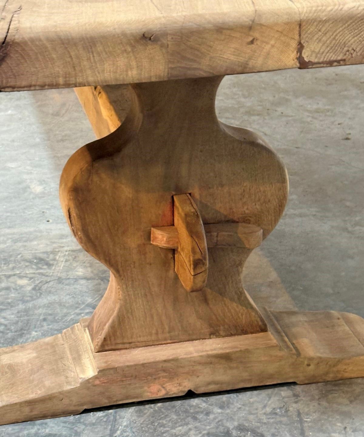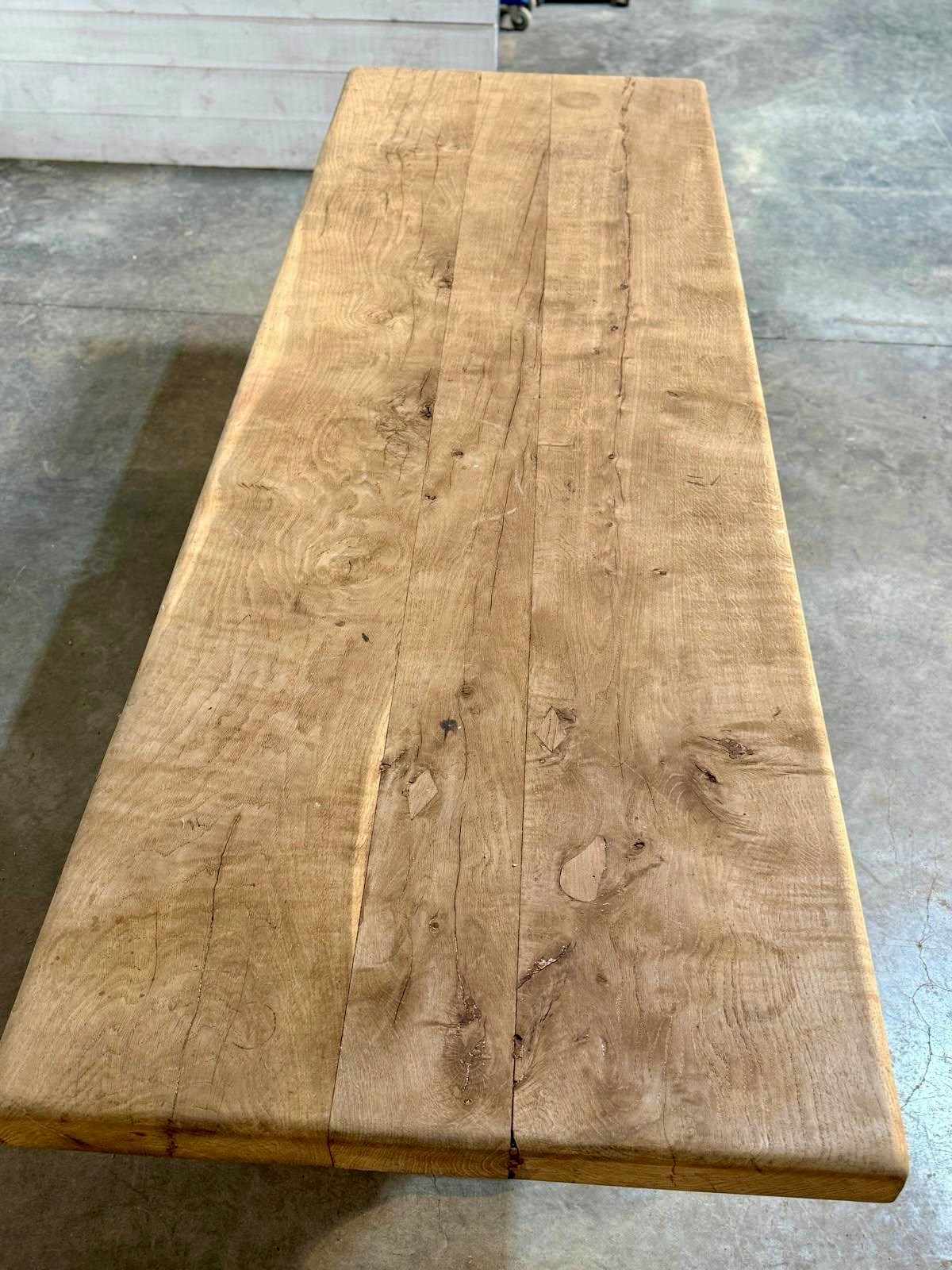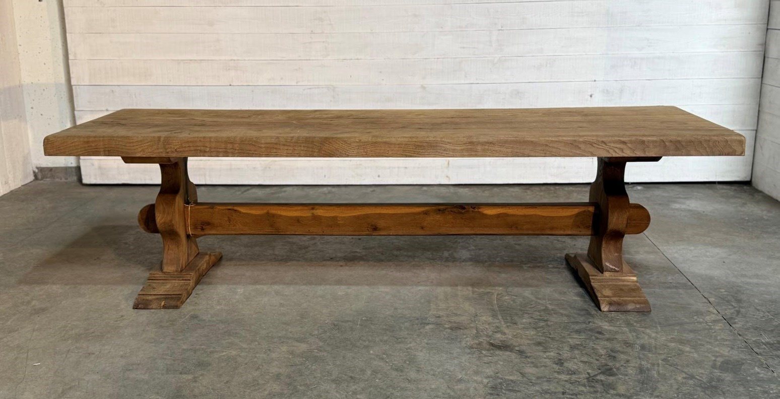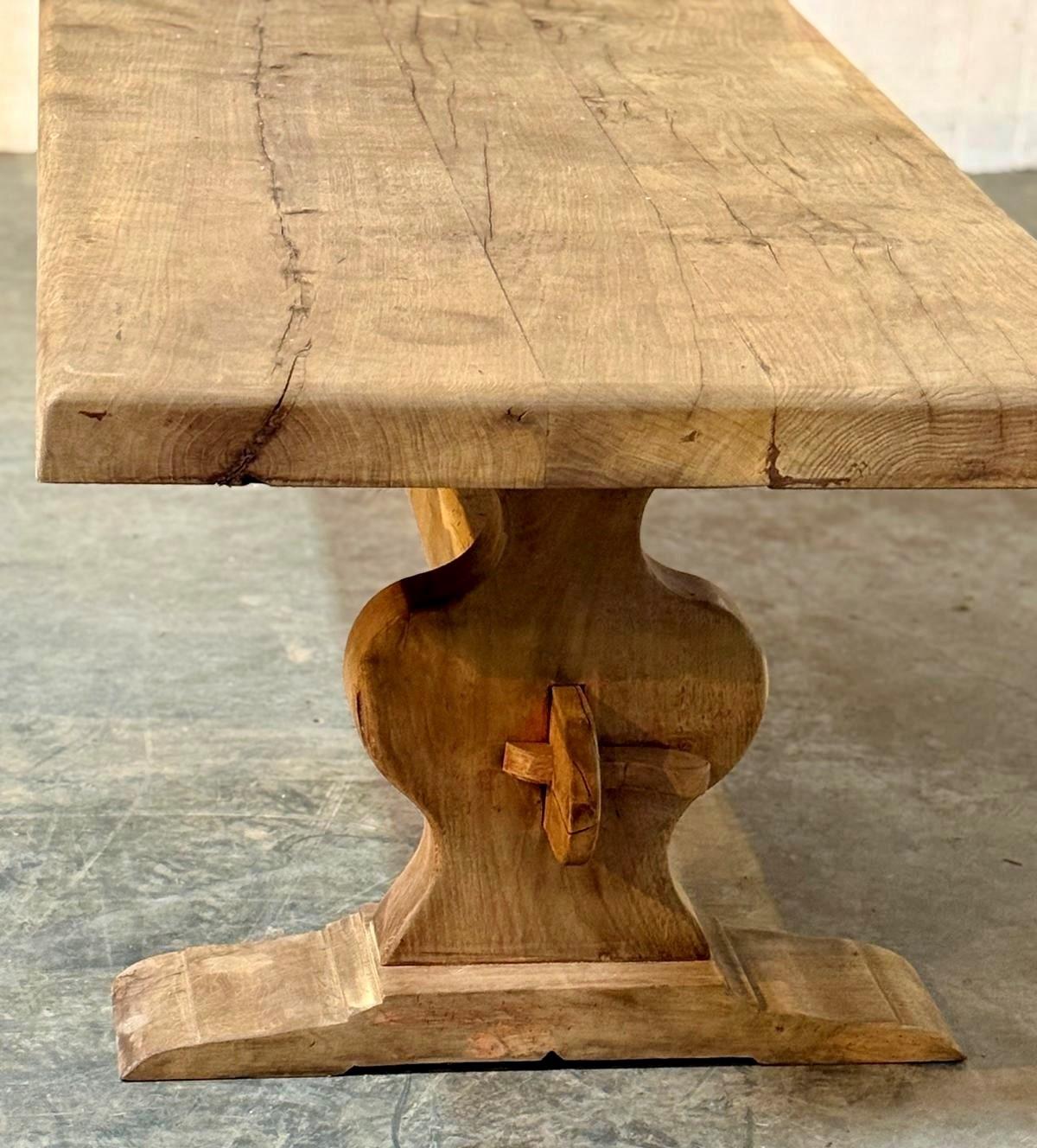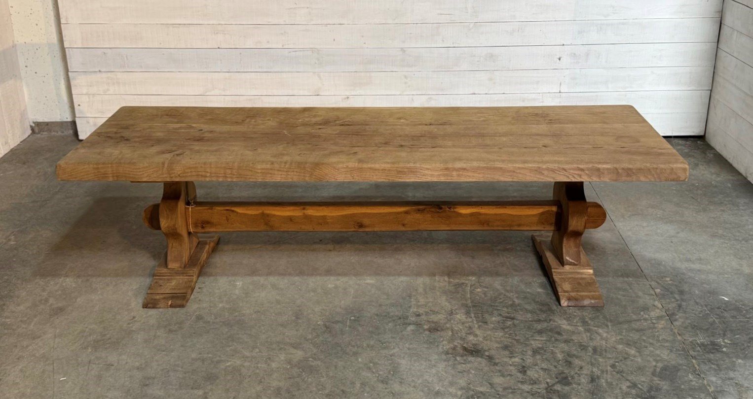 A wonderful solid Oak Farmhouse Dining Table, having loads of character and a great thick top. French in origin and dating to the early 1900s, of good quality construction this table will be around for generations to come. Comfortably seating 12 and 14 when needed, also a good depth which is rare.