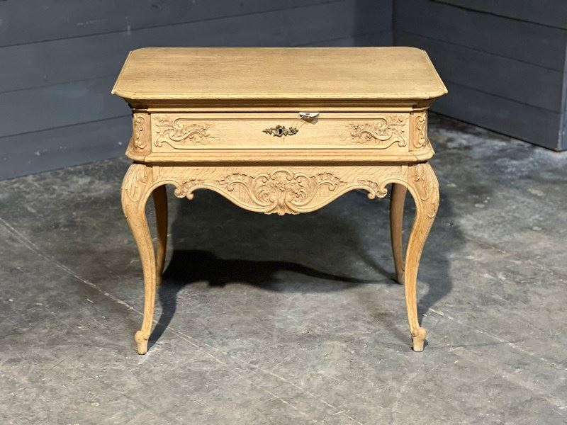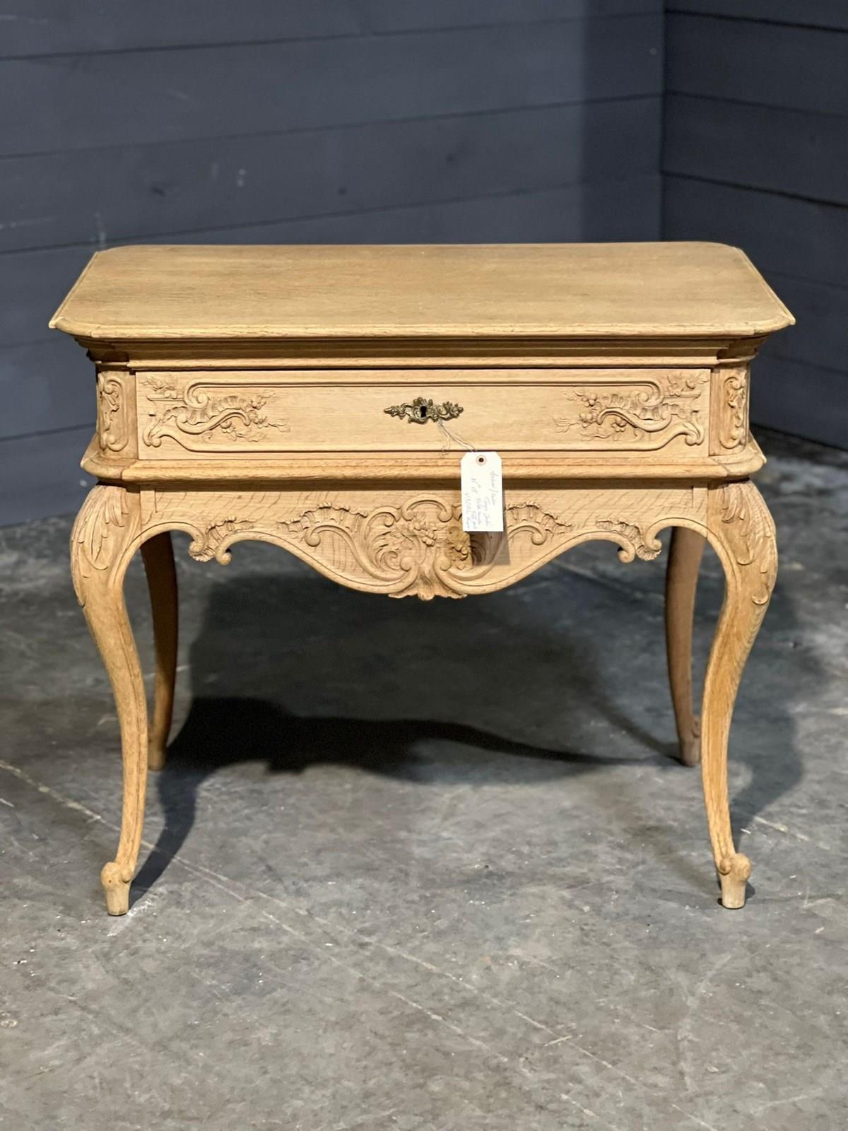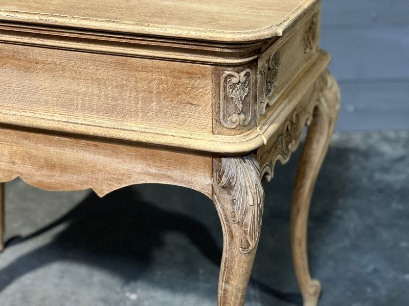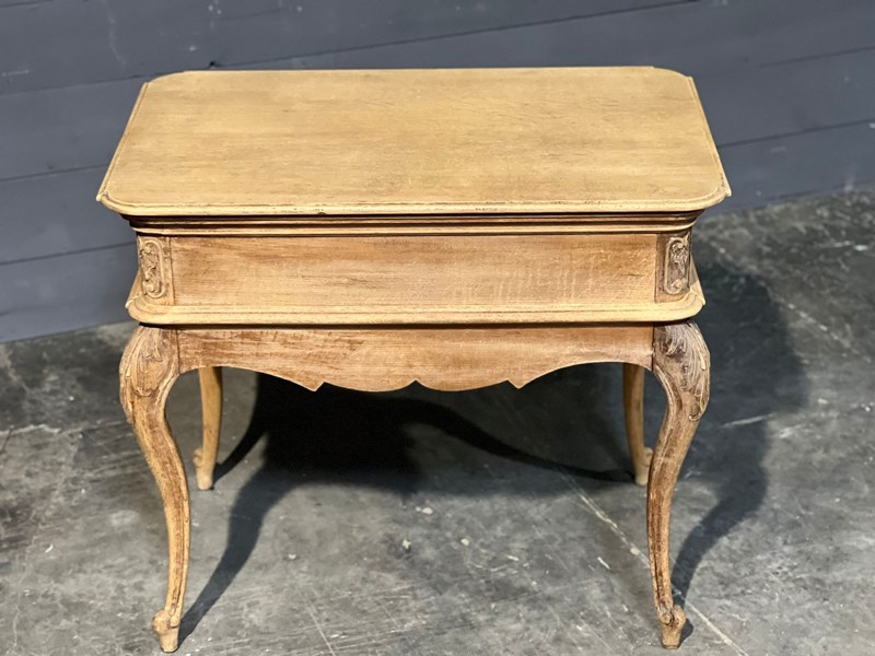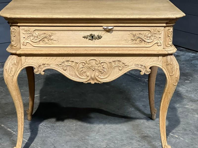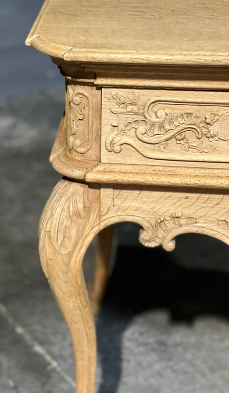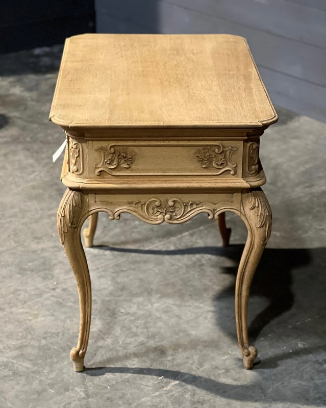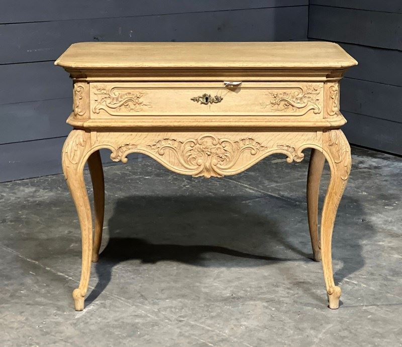 A delightful Solid Oak Side or Lamp Table, having a single drawer to the front, lovely carved decoration and elegant legs. We have bleached it for a light look and in excellent original condition for the home. Height 79 cm Width 91 cm Depth 60.5 cm