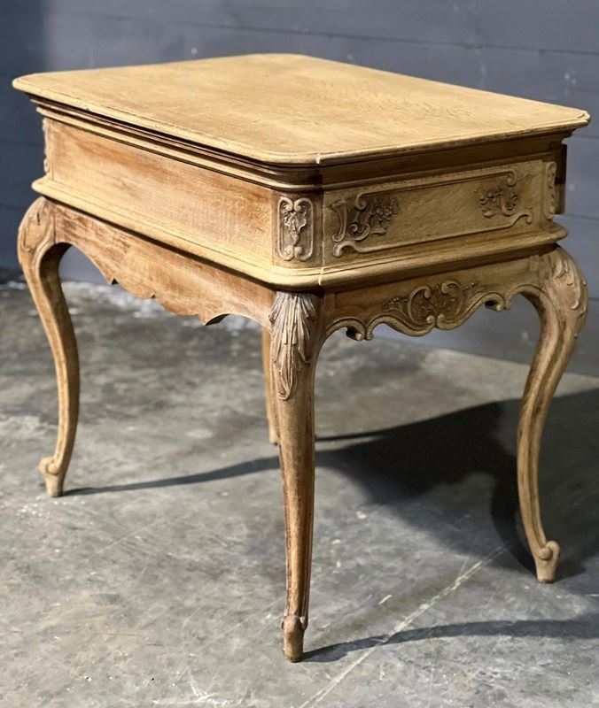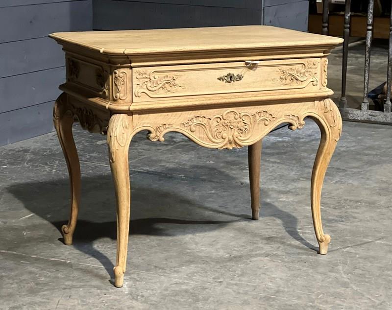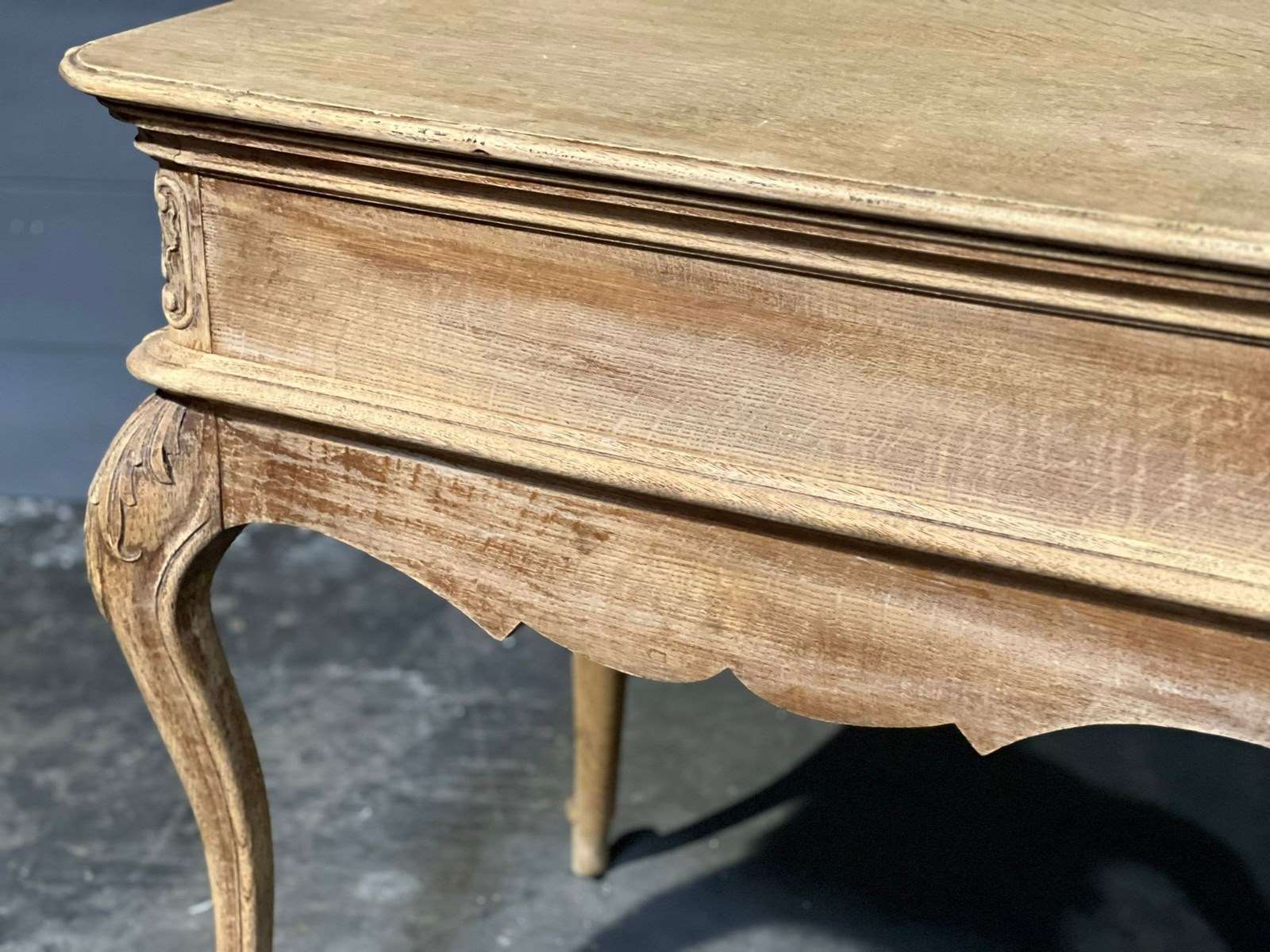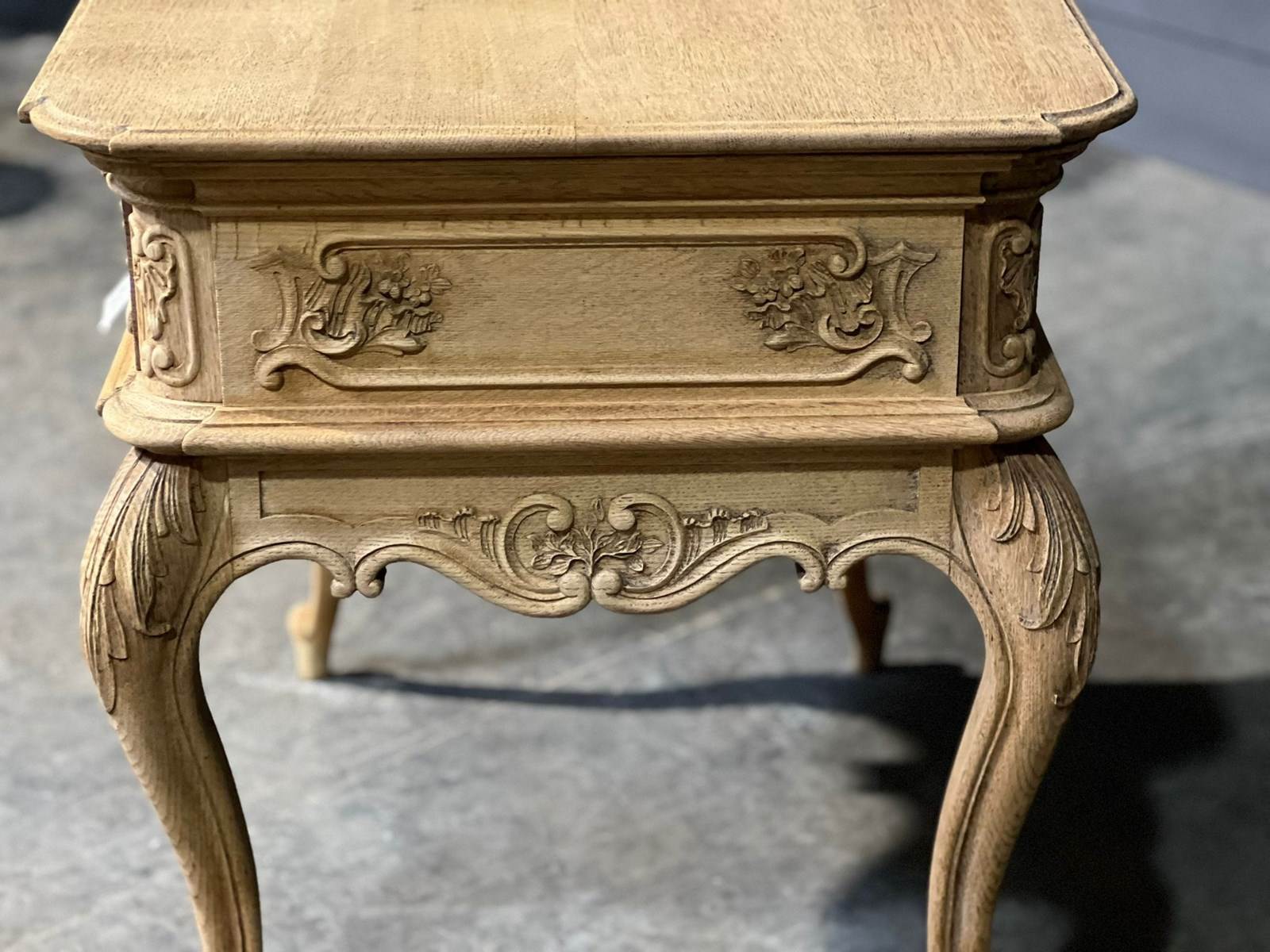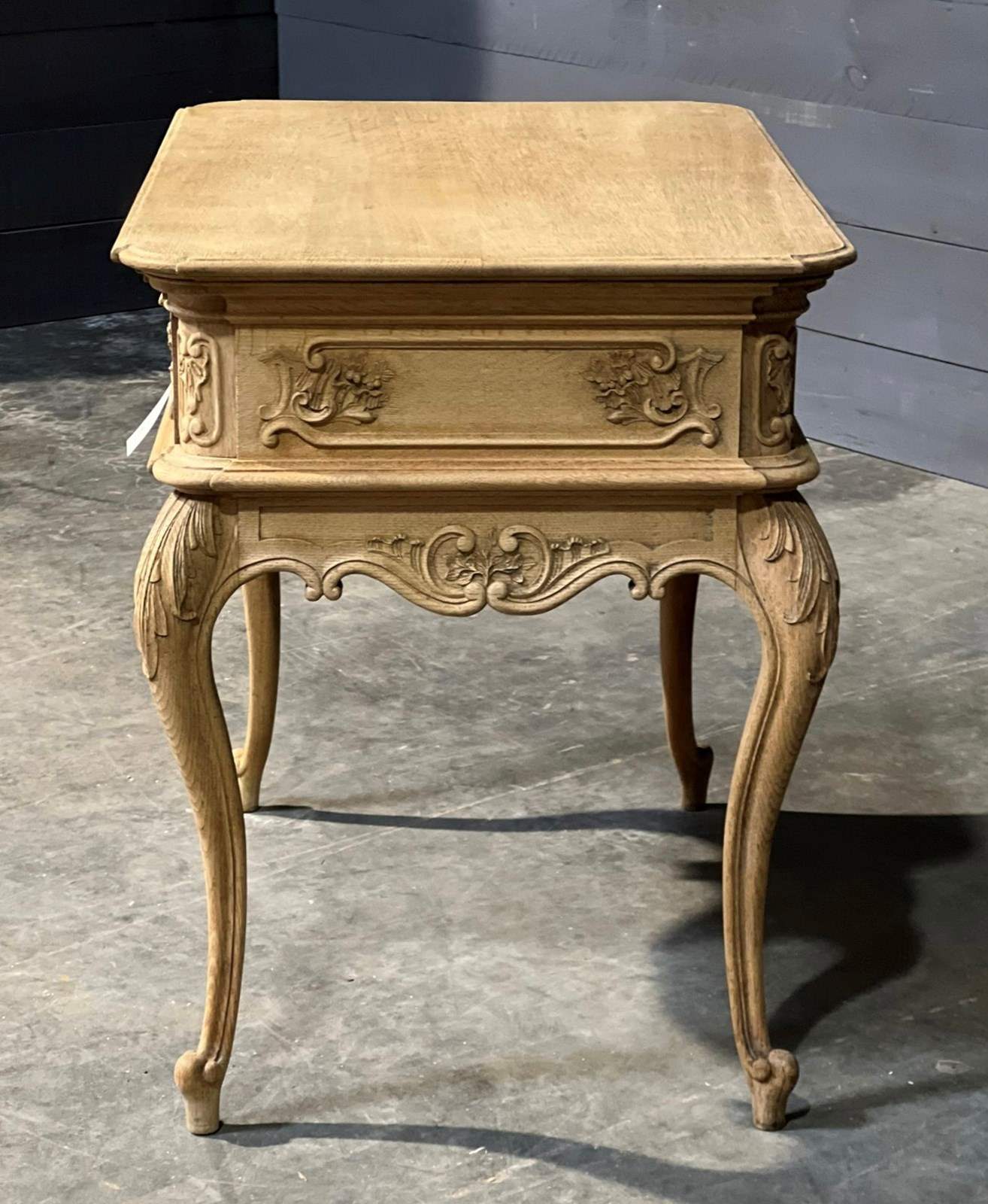 A delightful Solid Oak Side or Lamp Table, having a single drawer to the front, lovely carved decoration and elegant legs. We have bleached it for a light look and in excellent original condition for the home. Height 79 cm Width 91 cm Depth 60.5 cm