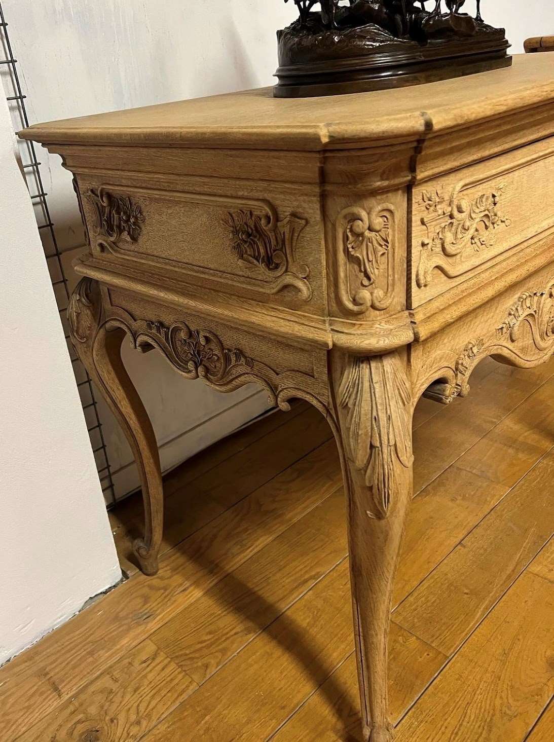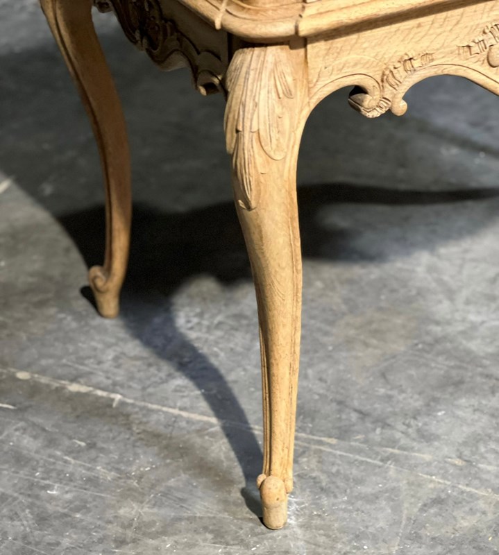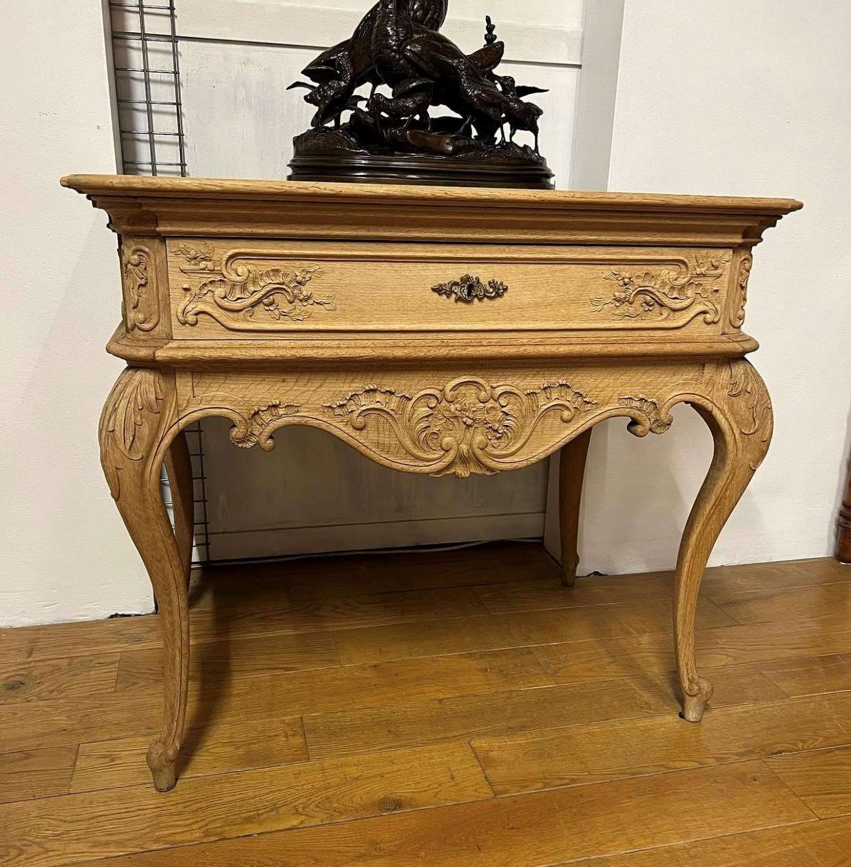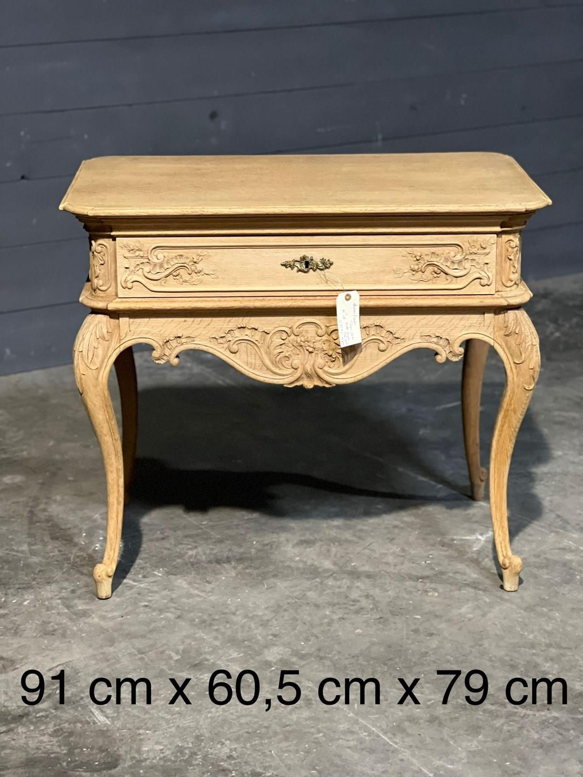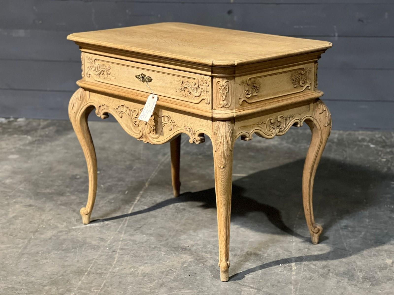 A delightful Solid Oak Side or Lamp Table, having a single drawer to the front, lovely carved decoration and elegant legs. We have bleached it for a light look and in excellent original condition for the home. Height 79 cm Width 91 cm Depth 60.5 cm