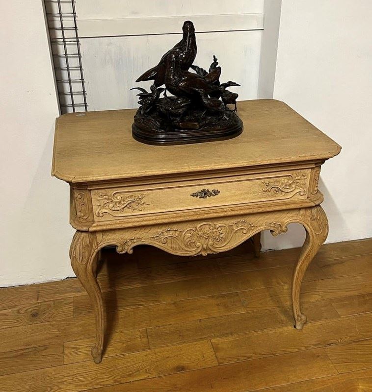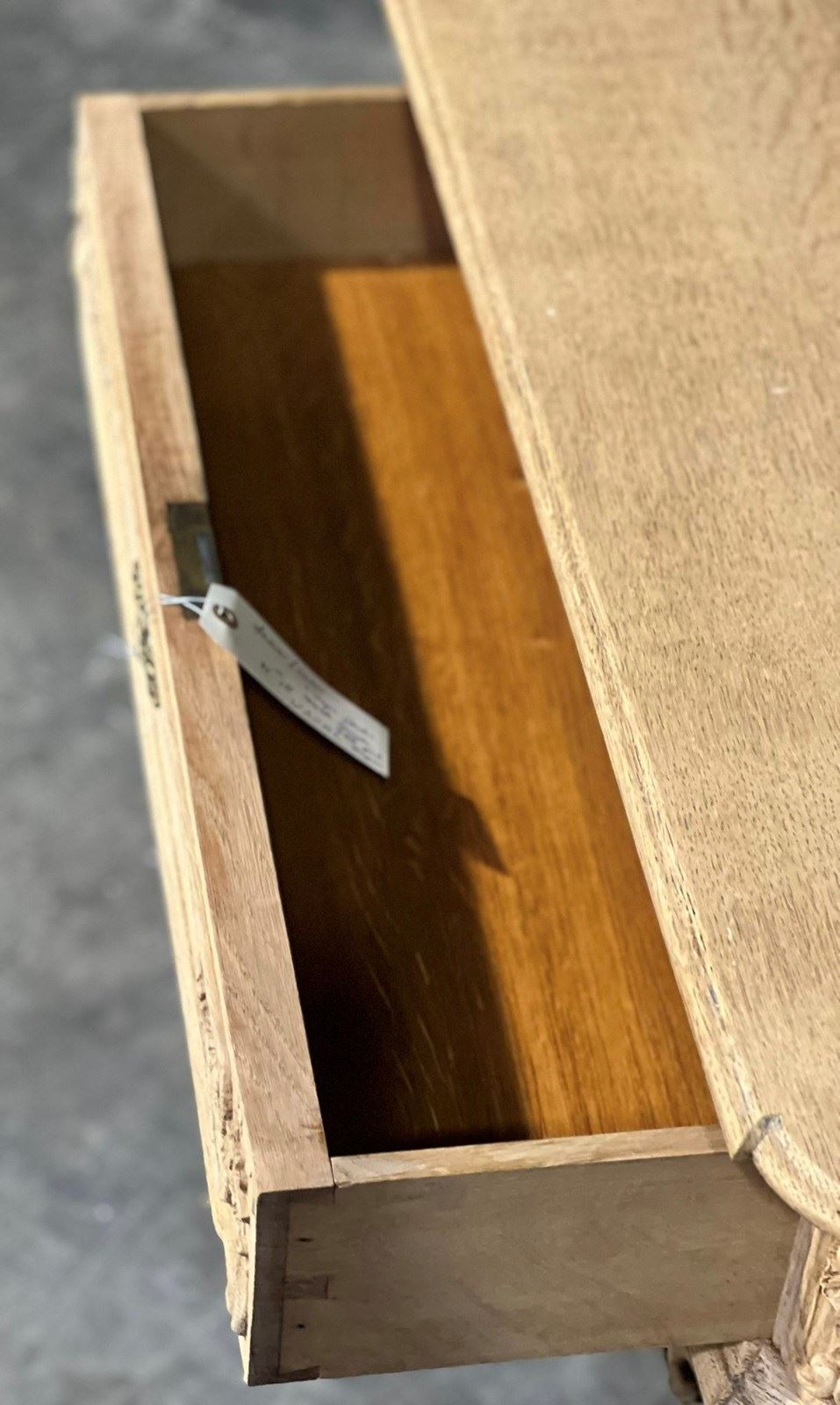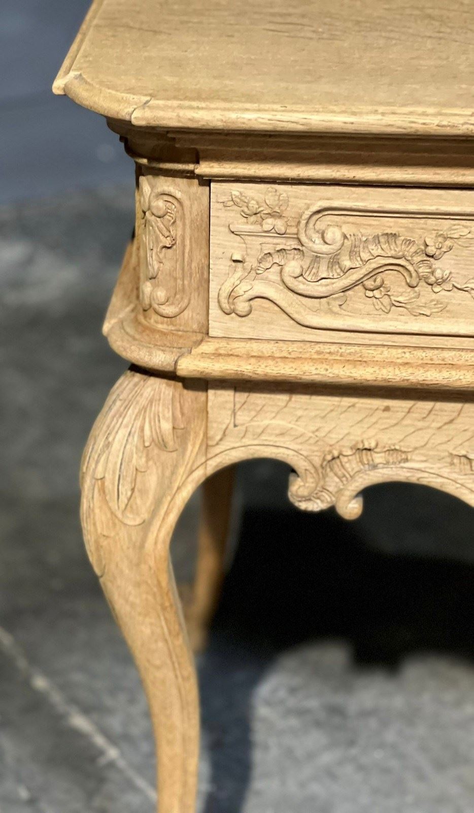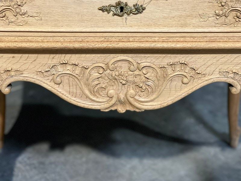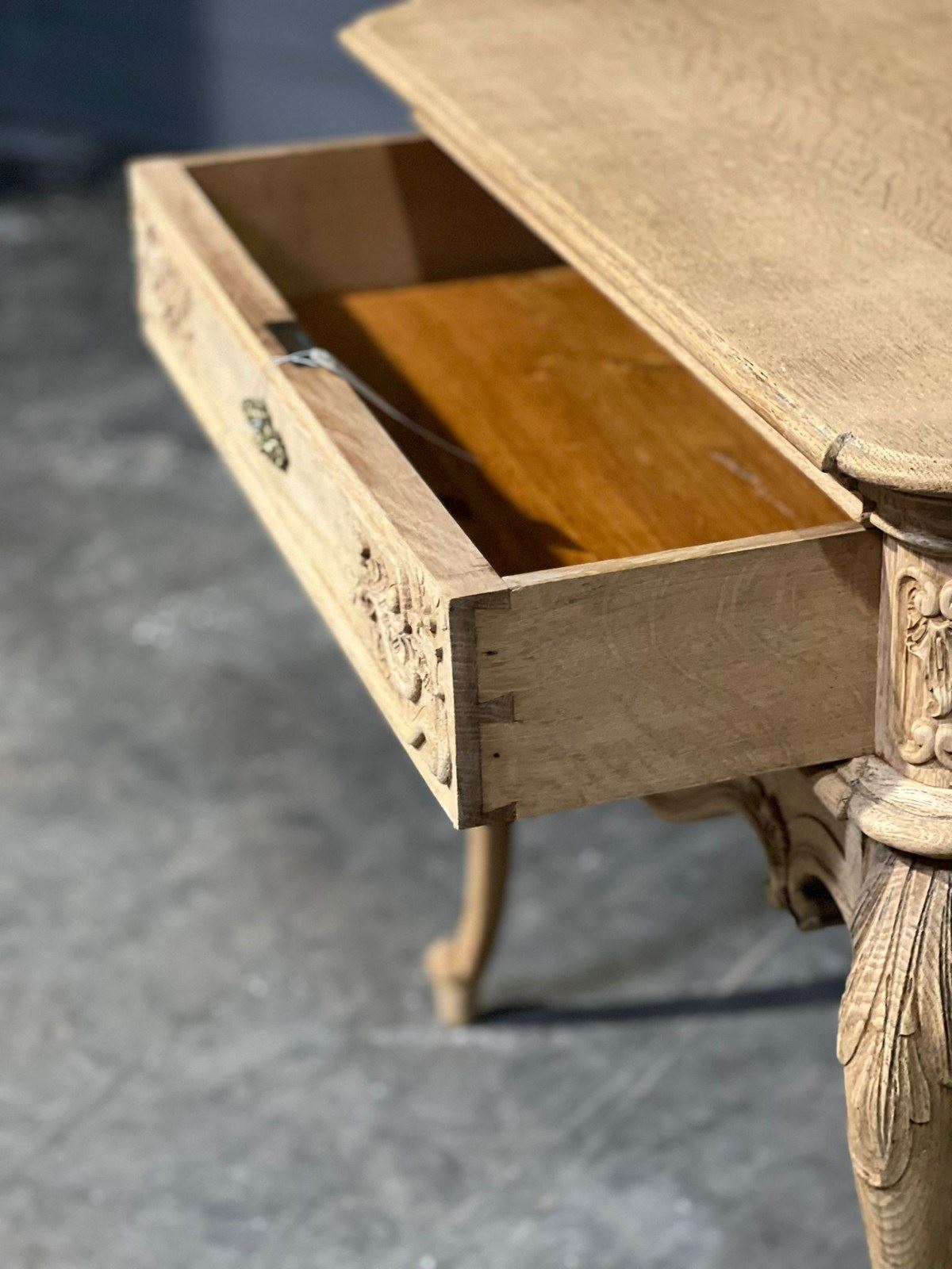 A delightful Solid Oak Side or Lamp Table, having a single drawer to the front, lovely carved decoration and elegant legs. We have bleached it for a light look and in excellent original condition for the home. Height 79 cm Width 91 cm Depth 60.5 cm