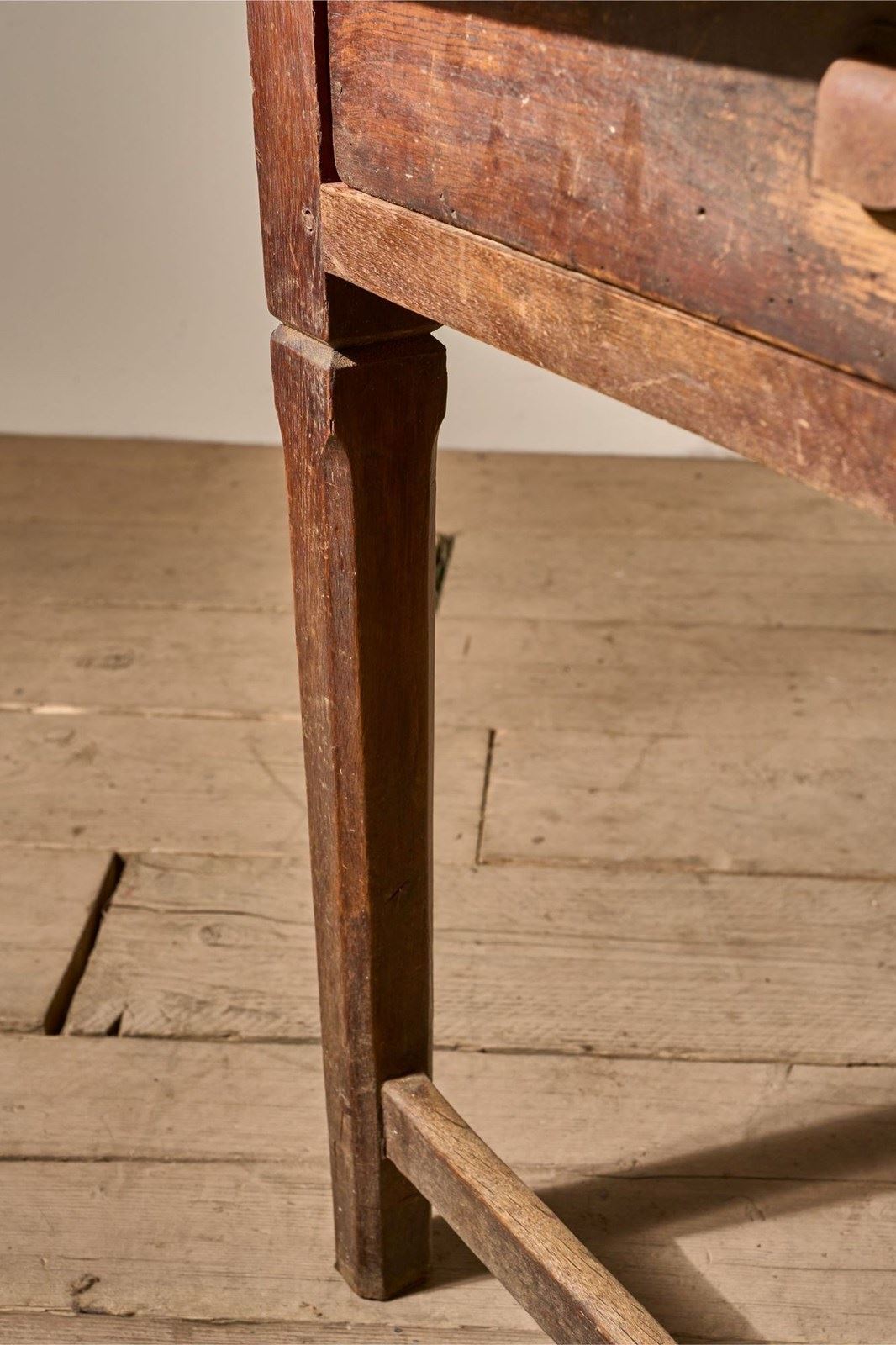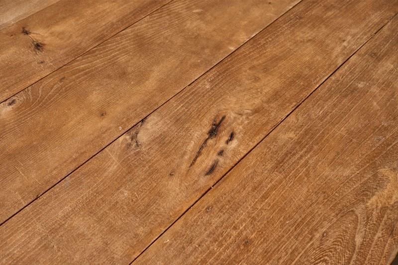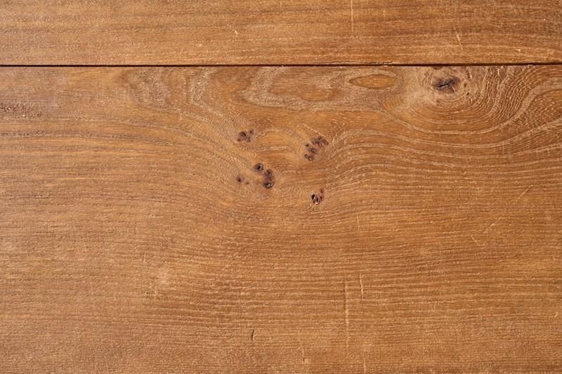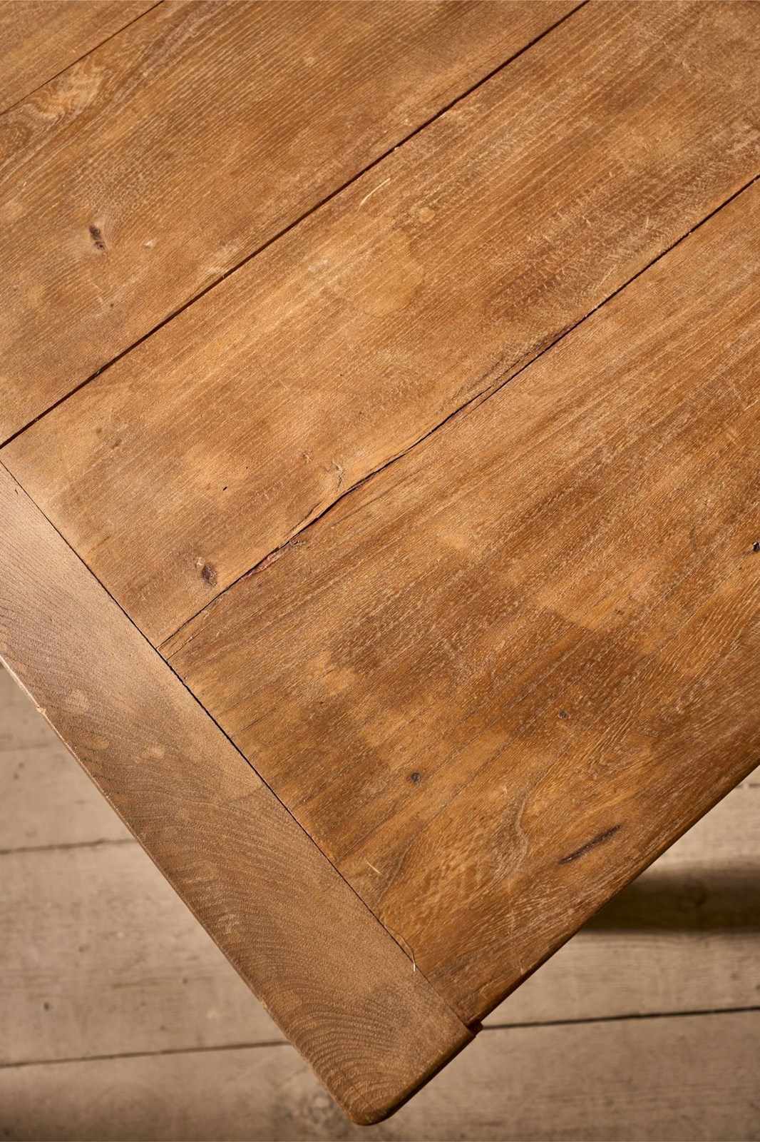 This is a classic French farmhouse table with plenty of character. 19th century in age with a lovely dry stained base and a patinated elm top. The top has honest marks, scratches consistent with age and use but doesn't detract. The table is complete with two drawers (replaced drawer bottoms) which run smooth and close flush. Solid condition and an ideal everyday dining table.