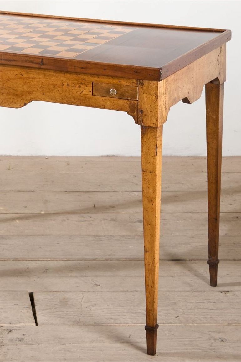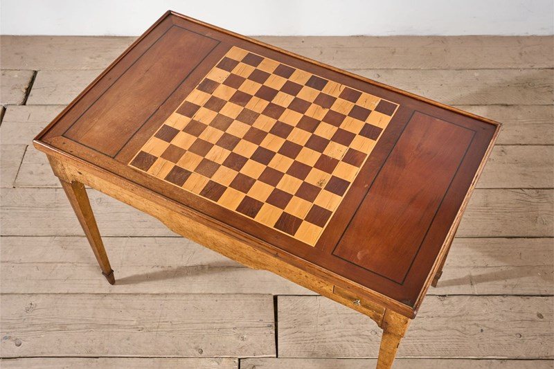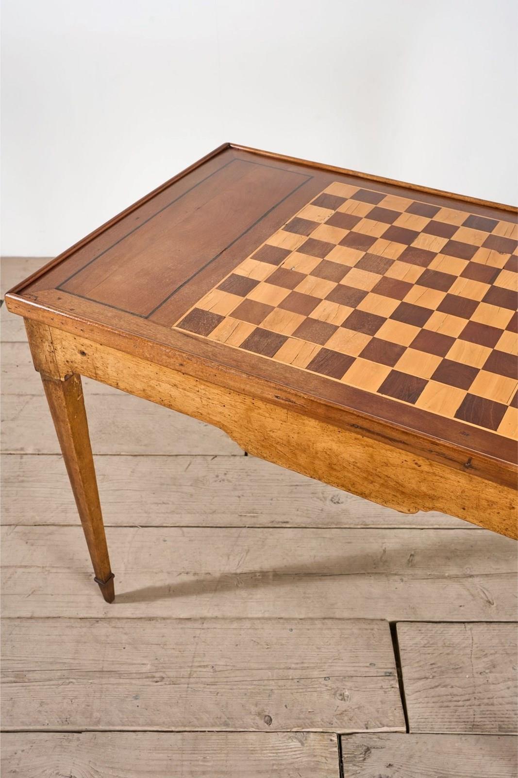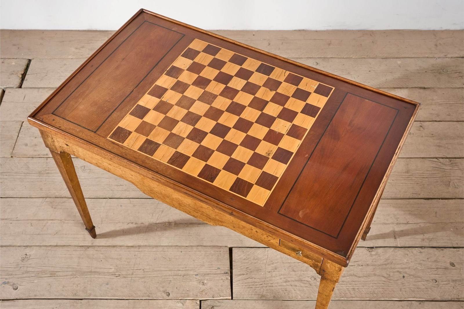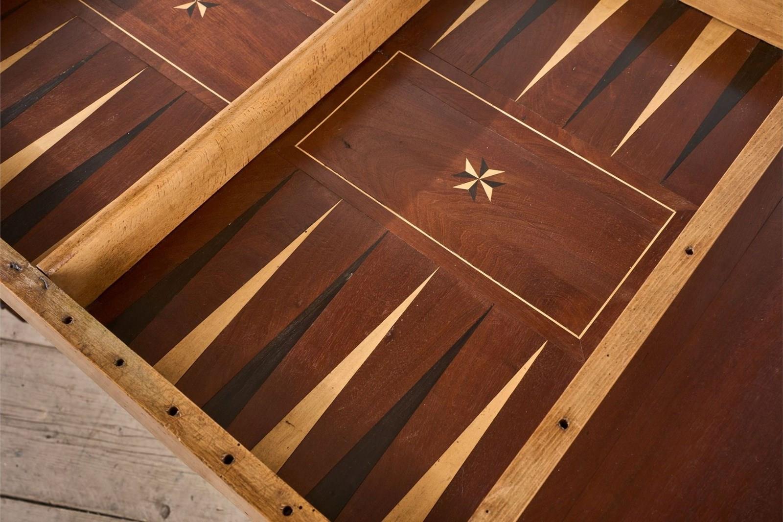 This is a beautiful 19th century French games table complete with 13 white and 13 black games counters, reversible top and full Backgammon table within. Totally original with minor age related marks and patina consistent with age and use. The design of the table is very elegant and the mixture of dark and light woods really show the quality of this piece.