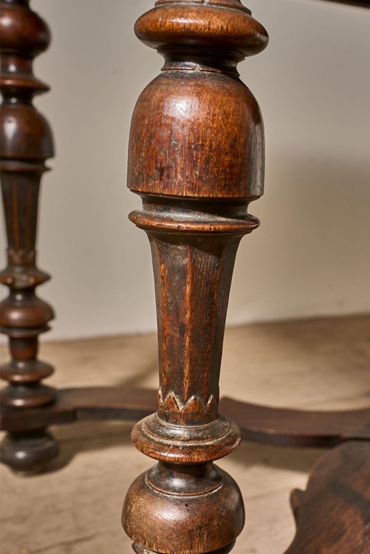 This is a lovely designed 19th century French oak side table. The legs and lower stretchers have a great amount of detail, making this table hugely decorative. The table is complete with a thick oak drawer that runs smoothly and is lined with hessian. The patina and colour are wonderful. Overall condition is good with no structural issues but there is a split in the top. All part of its character but we can let in a timber piece to this should you prefer.