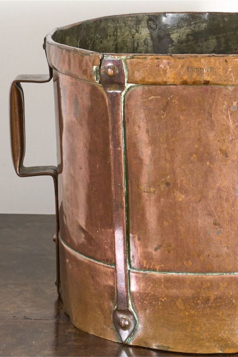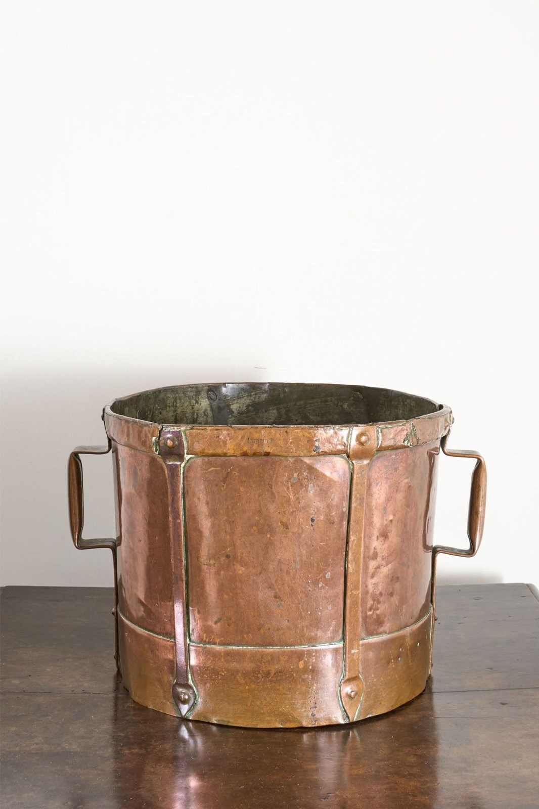 We have been fortunate to get a hold of 6 totally original and untouched 19th century Heavy copper grain measures. They have plenty of character and charm. The patina is fabulous and their misshapen appearance in parts just adds to their attraction. These would make great planters or ice buckets if you throw a lavish party.