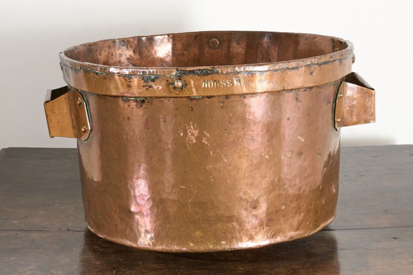 We have been fortunate to get a hold of 6 totally original and untouched 19th century Heavy copper grain measures. They have plenty of character and charm. The patina is fabulous and their misshapen appearance in parts just adds to their attraction. These would make great planters or ice buckets if you throw a lavish party.