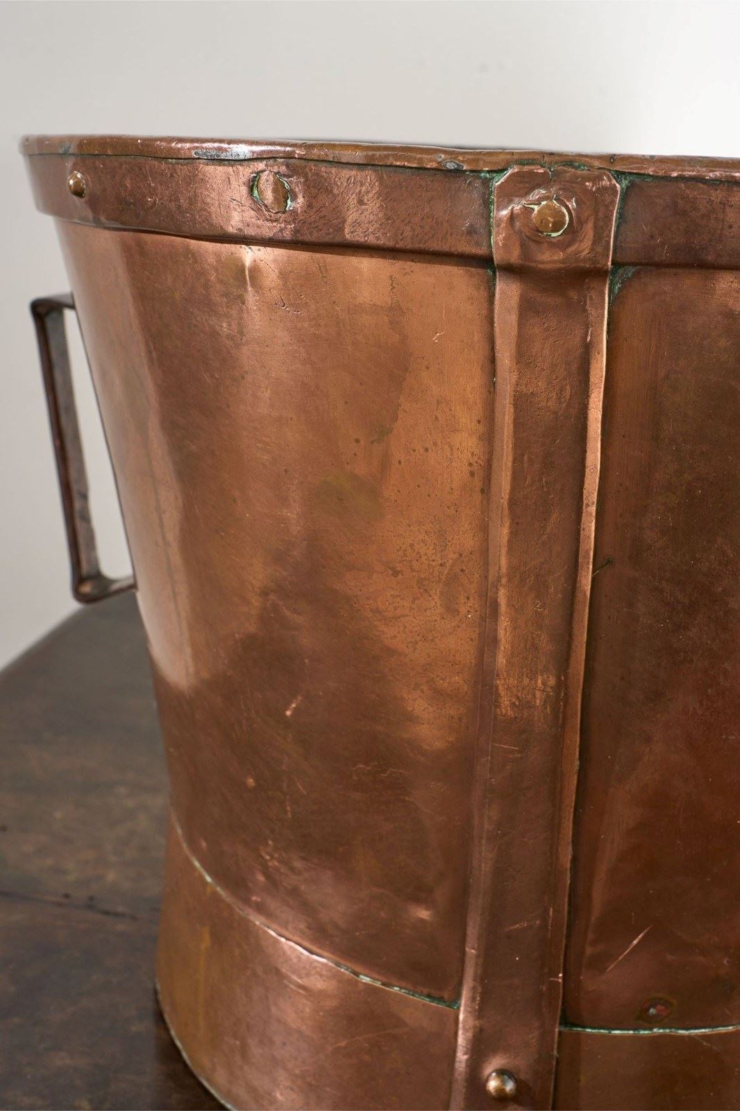We have been fortunate to get a hold of 6 totally original and untouched 19th century Heavy copper grain measures. They have plenty of character and charm. The patina is fabulous and their misshapen appearance in parts just adds to their attraction. These would make great planters or ice buckets if you throw a lavish party.