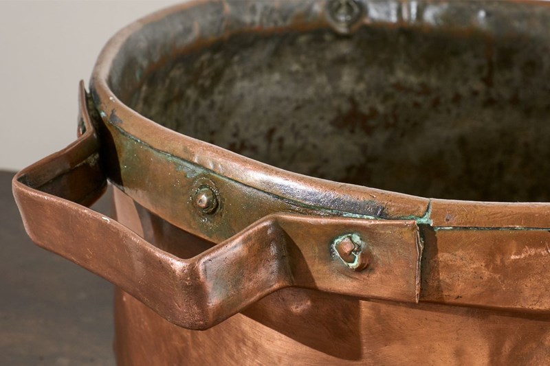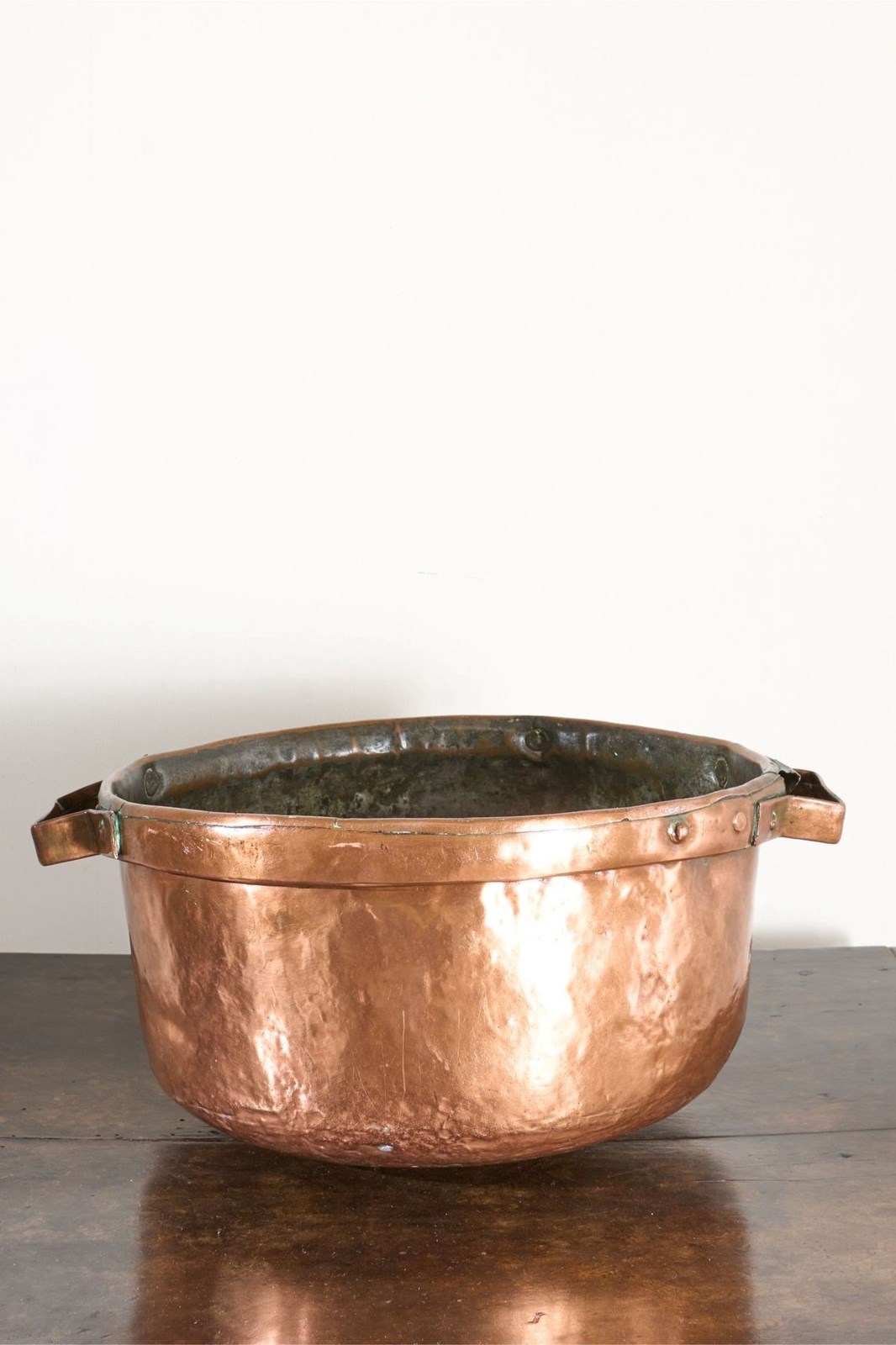 We have been fortunate to get a hold of 6 totally original and untouched 19th century Heavy copper grain measures. They have plenty of character and charm. The patina is fabulous and their misshapen appearance in parts just adds to their attraction. These would make great planters or ice buckets if you throw a lavish party.