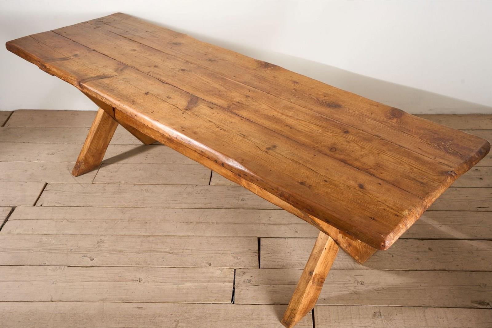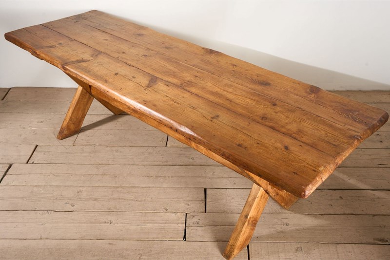19Th Century Waney Edged Pine X Frame Tavern Table