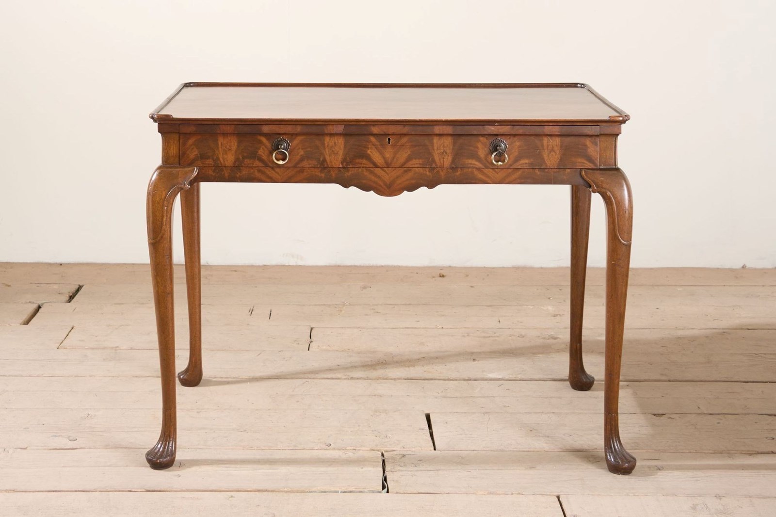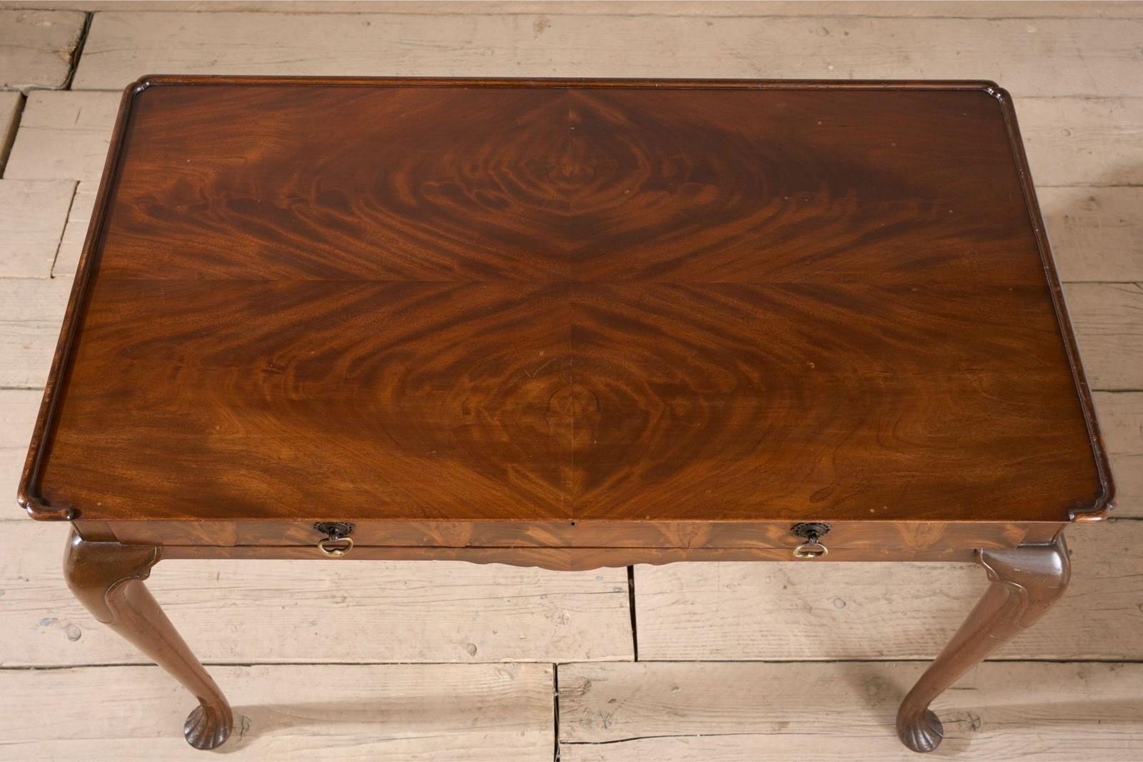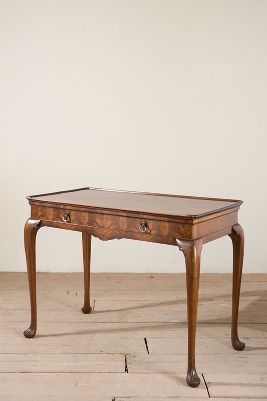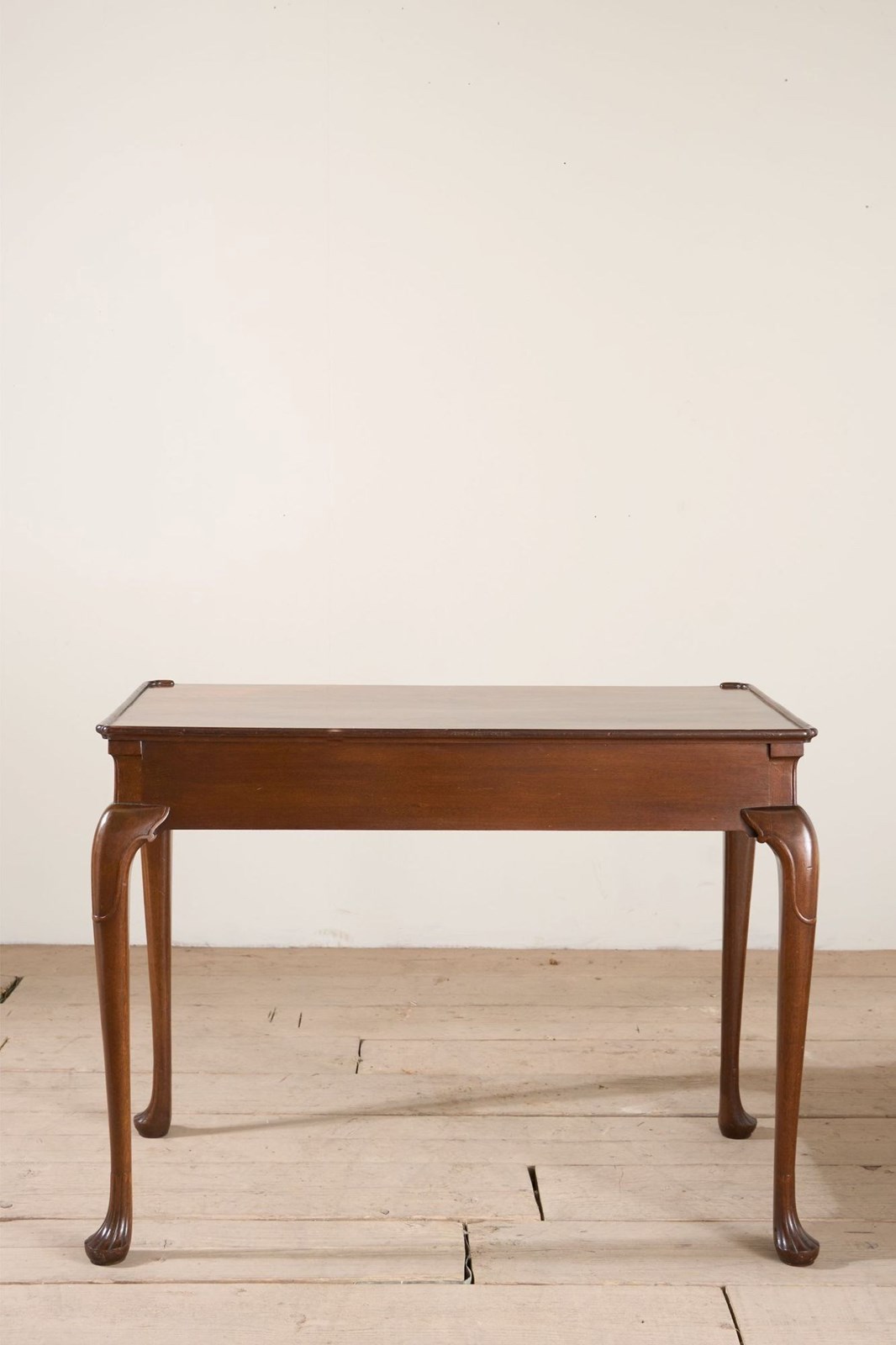 This is a very high quality early 20th century Mahogany silver table by renowned makers Whytock and Reid. The design is elegant and classic, meaning it will sit well in a huge number of interiors. Useful as a sofa table or console table. Clean overall condition with no major issues. The design is neat and I particularly like the carved detail on the feet. The drawer also opens and closes smoothly. The Whytock and Reid stamp in on the top of the drawer.