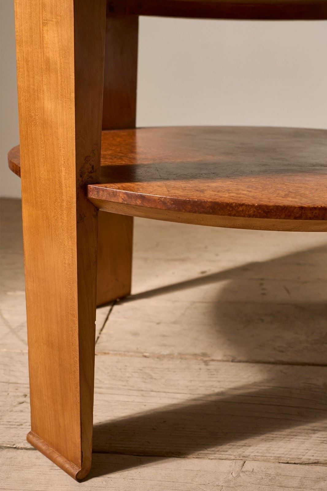 This is a very attractive and high quality all original Art Deco coffee table. The top and shelf are made from stunning Burr yew, with beautiful figuring and colour. The overall condition is very good with a few minor age related marks. The legs are a neat design but taper which shows the quality of the table. Weight is quite heavy for a relatively small table also. Ideal as a coffee or a side table.
