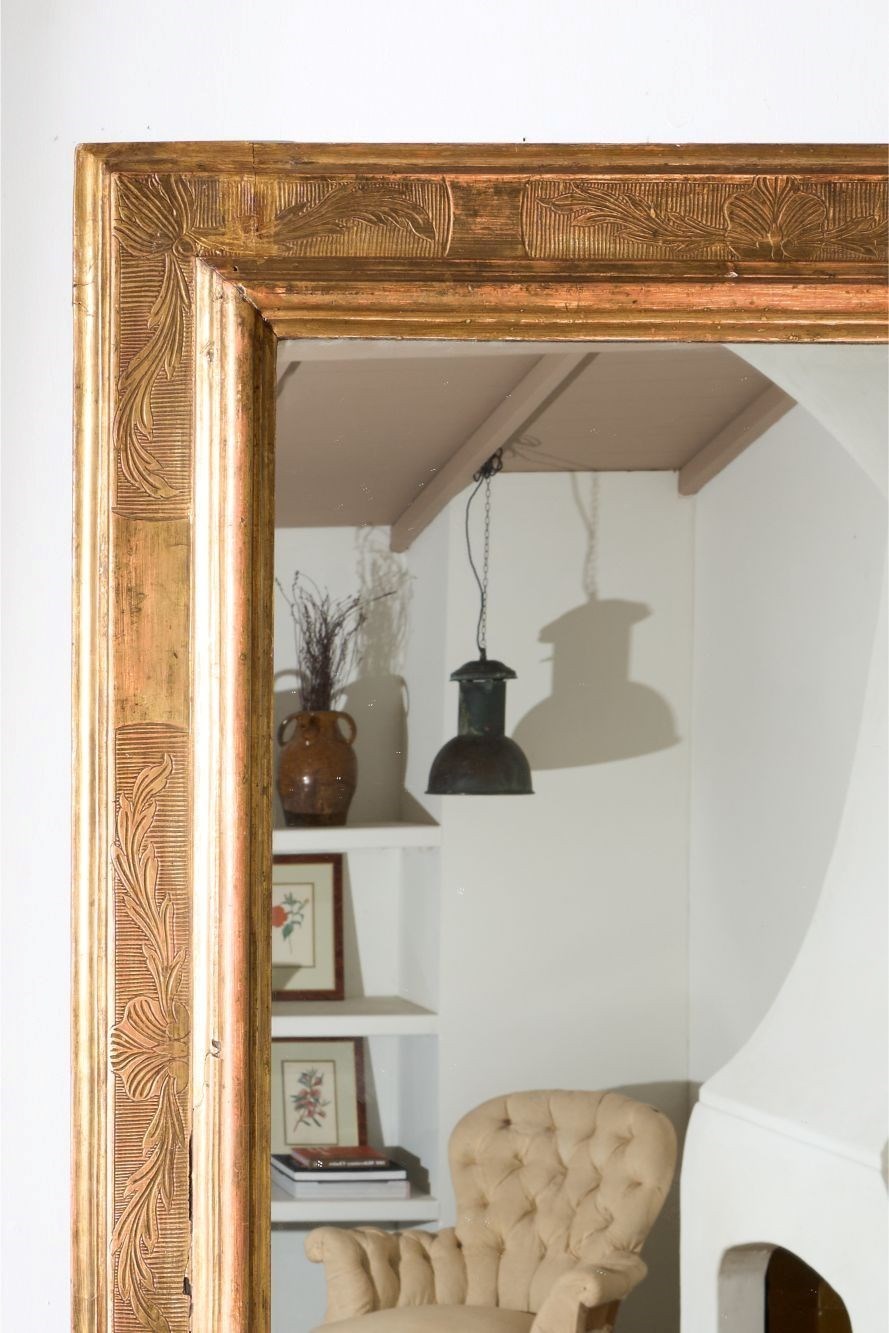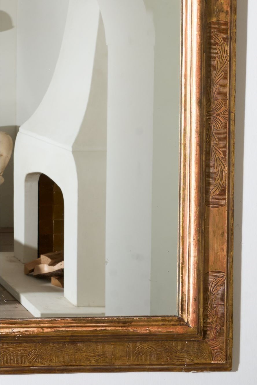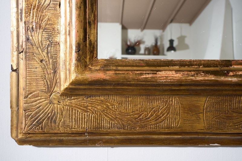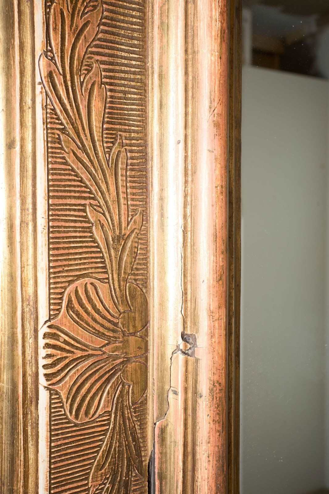 This is a very impressive Large early 19th century gilt mirror. The subtle details in the gesso and timber frame make this hugely decorative and the wear on the frame softens the gilt to a nice level. The size and clear plate make this a great addition to a room. The plate isn't new but is later than the age of the mirror. Overall condition very good. Can be used either portrait or landscape.