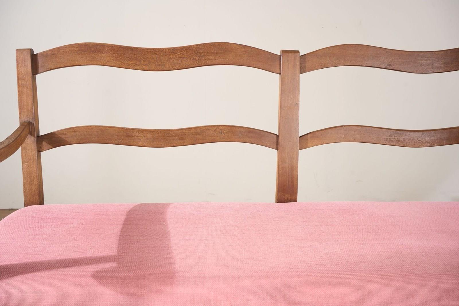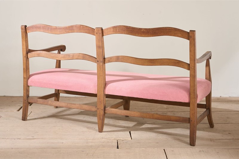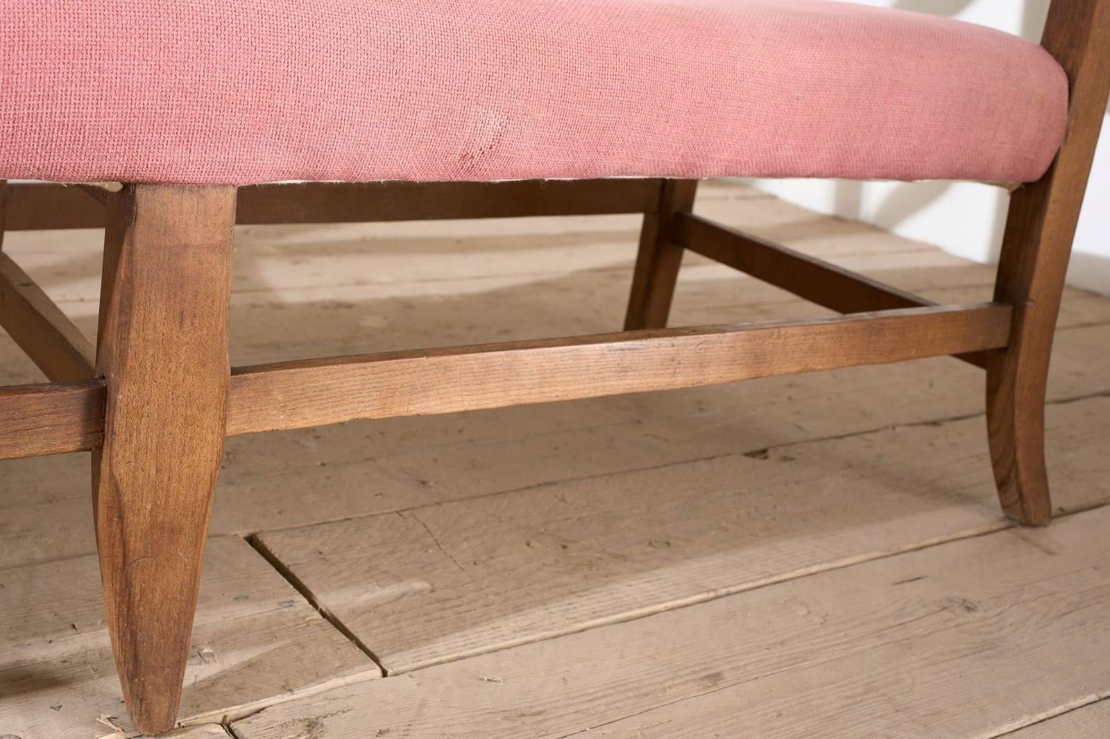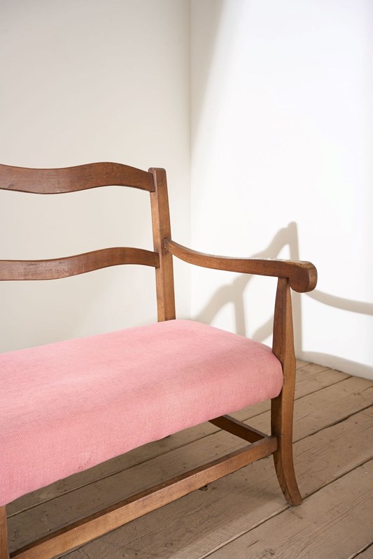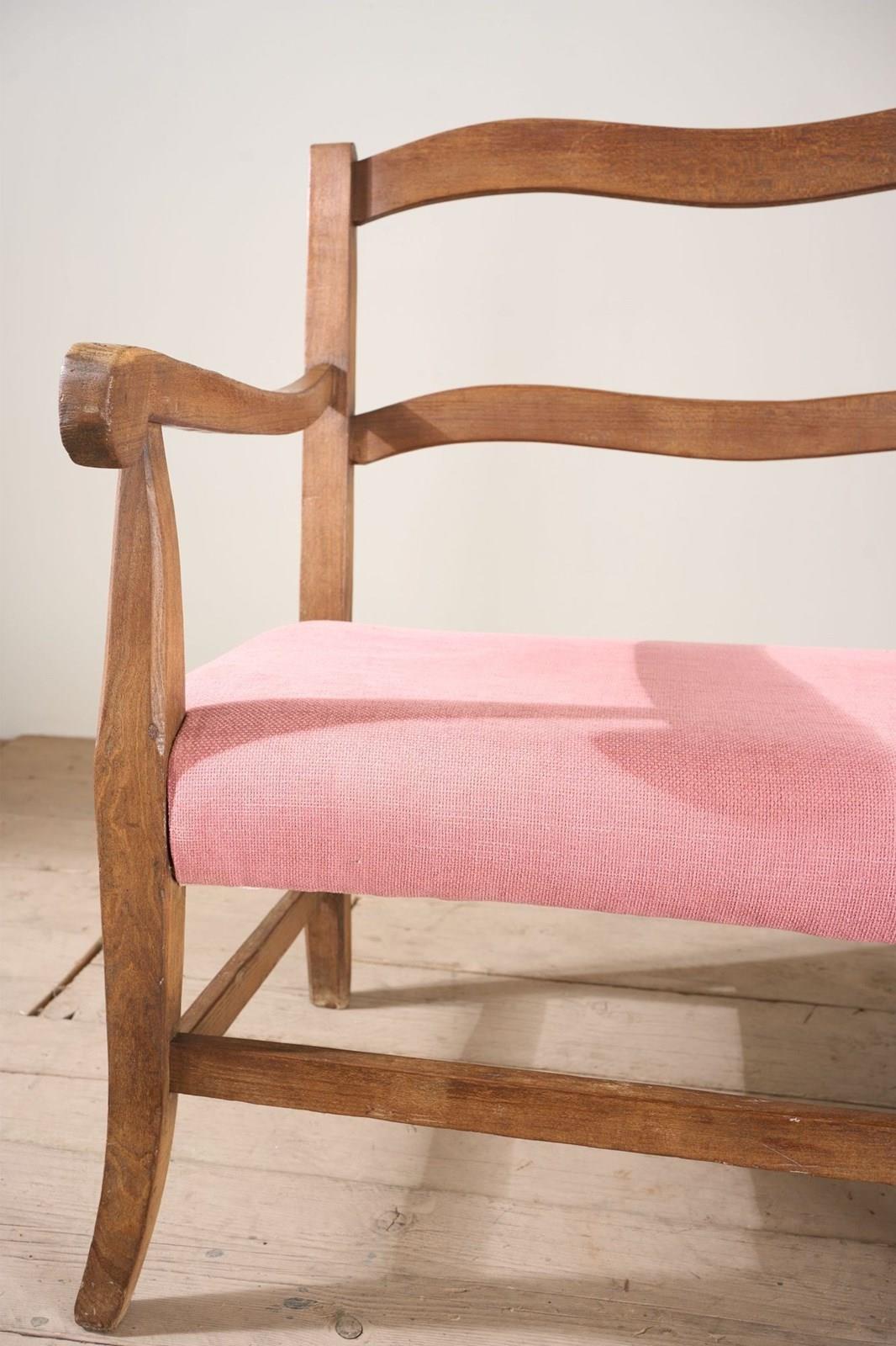 This is an effortlessly elegant early 20th century French hall bench. The wavy back rest and the splayed legs are stunning. This is recently upholstered (not by us) but clean to be used as is or we can recover if you prefer. The patina to the timber is wonderful and the size makes this the ideal hall bench or end of a bed.