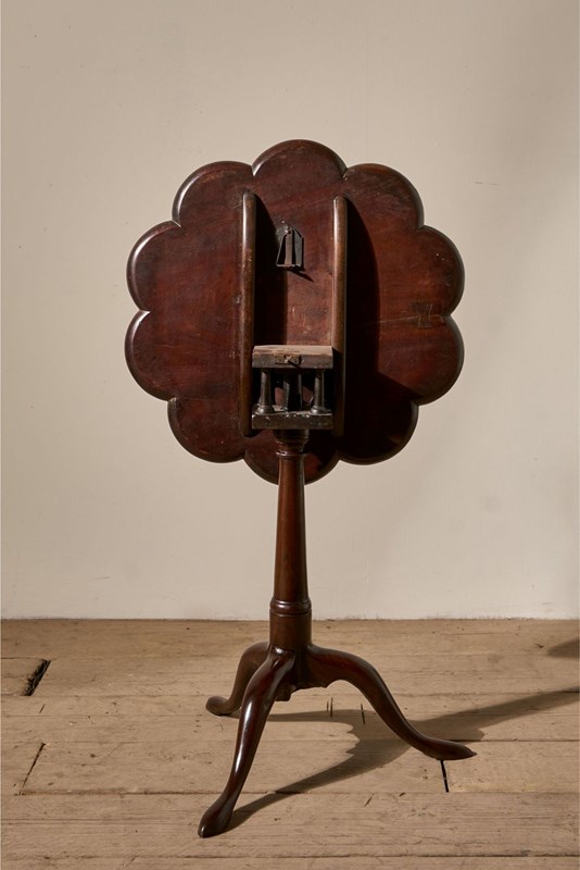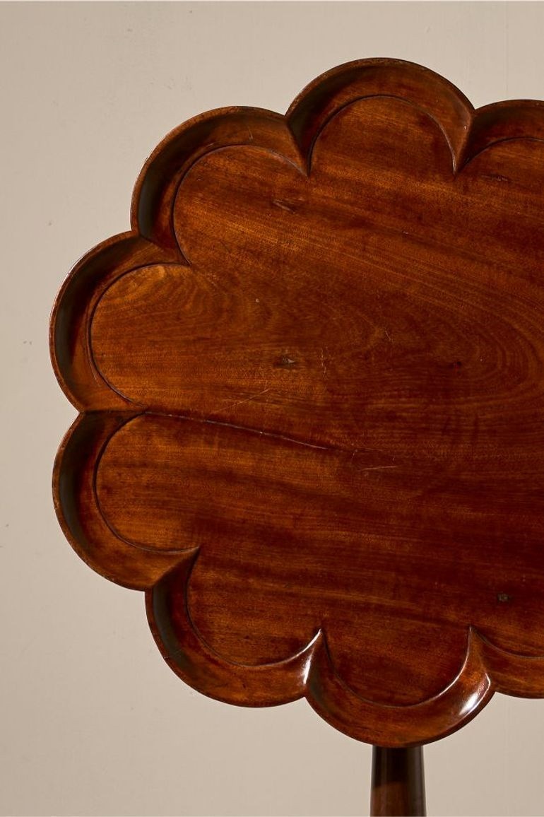 English Georgian Scalloped Edge Mahogany Tilt Top Table