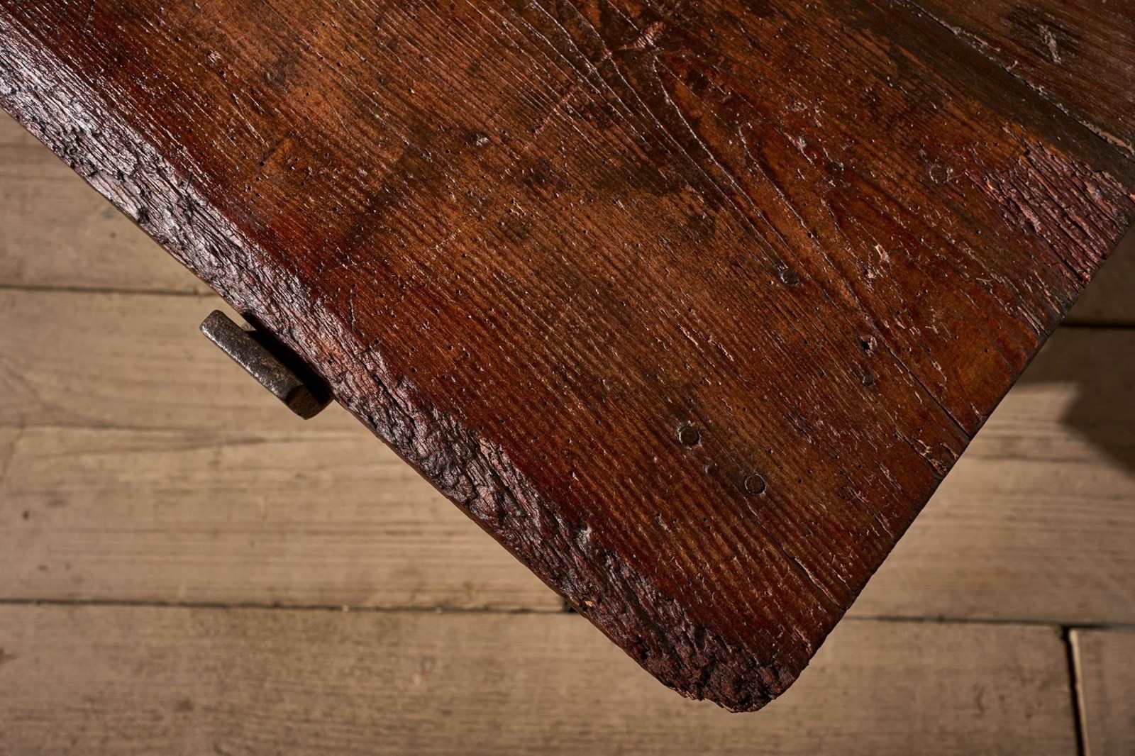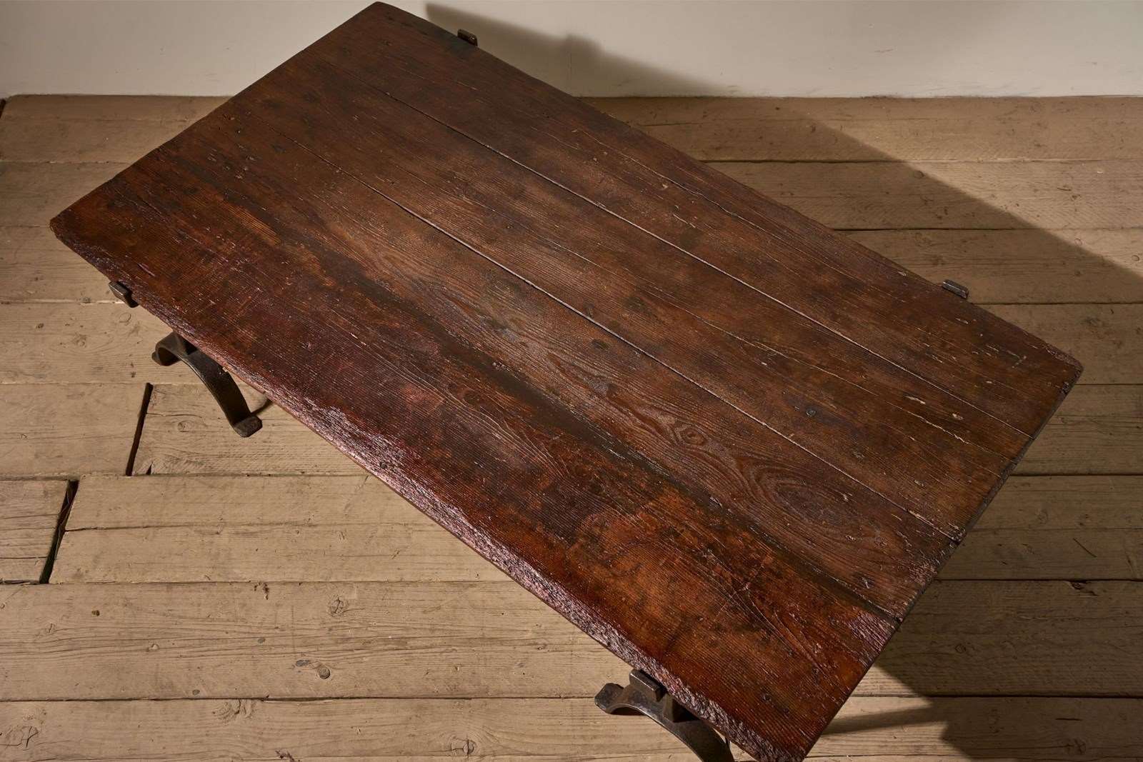This is a great looking large scale 18th century trestle coffee table. The timber is of period as well. The tresltes are beautifully made with a wonderful patina. Great design aesthetic and the scale makes it a real statement in a room. Plenty of character as well.