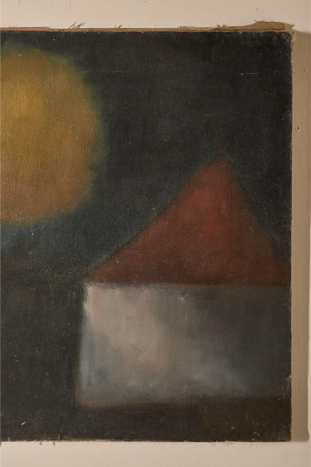 Mid 20Th Century Oil On Canvas Abstract Painting - Dark Landscape