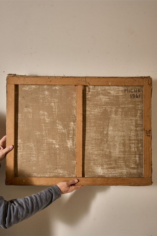 We have been fortunate to find on our last trip to France a selection of mid century Abstract oil on canvas paintings. All by and signed 'Micha' dated to the 1960's. The canvas is heavy giving these a lovely texture which compliments the styling perfectly. Bold pieces and all great as stand alone paintings or could be used in a group.