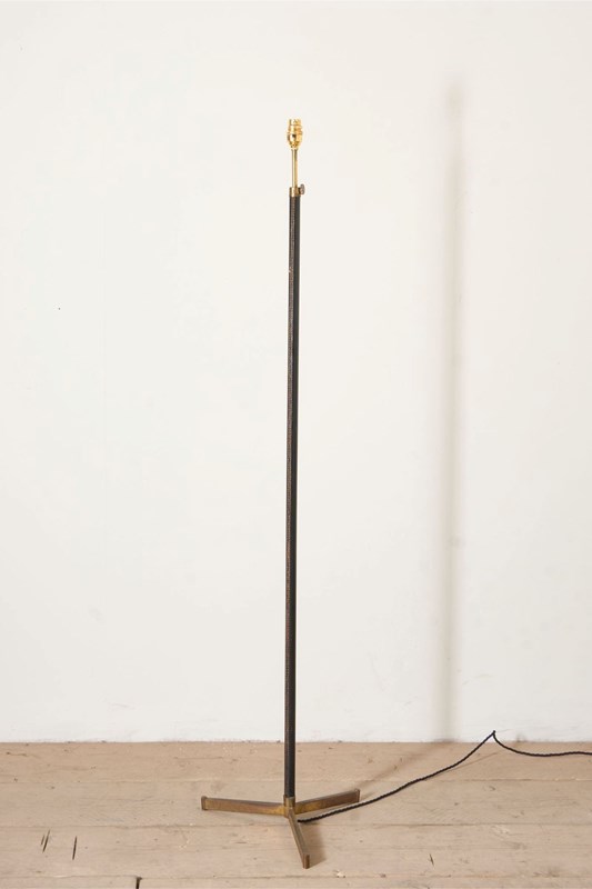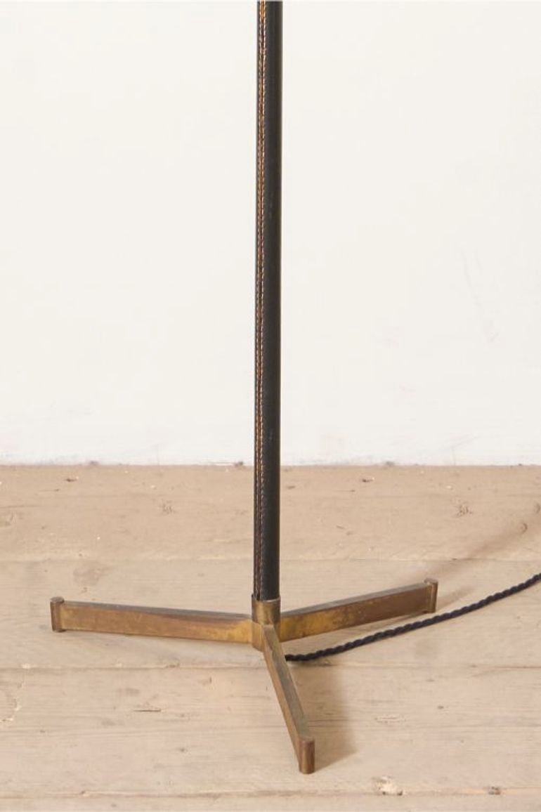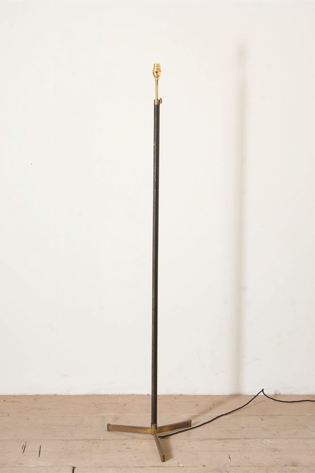 Mid 20Th Century Spanish Black Leather And Brass Floor Lamp