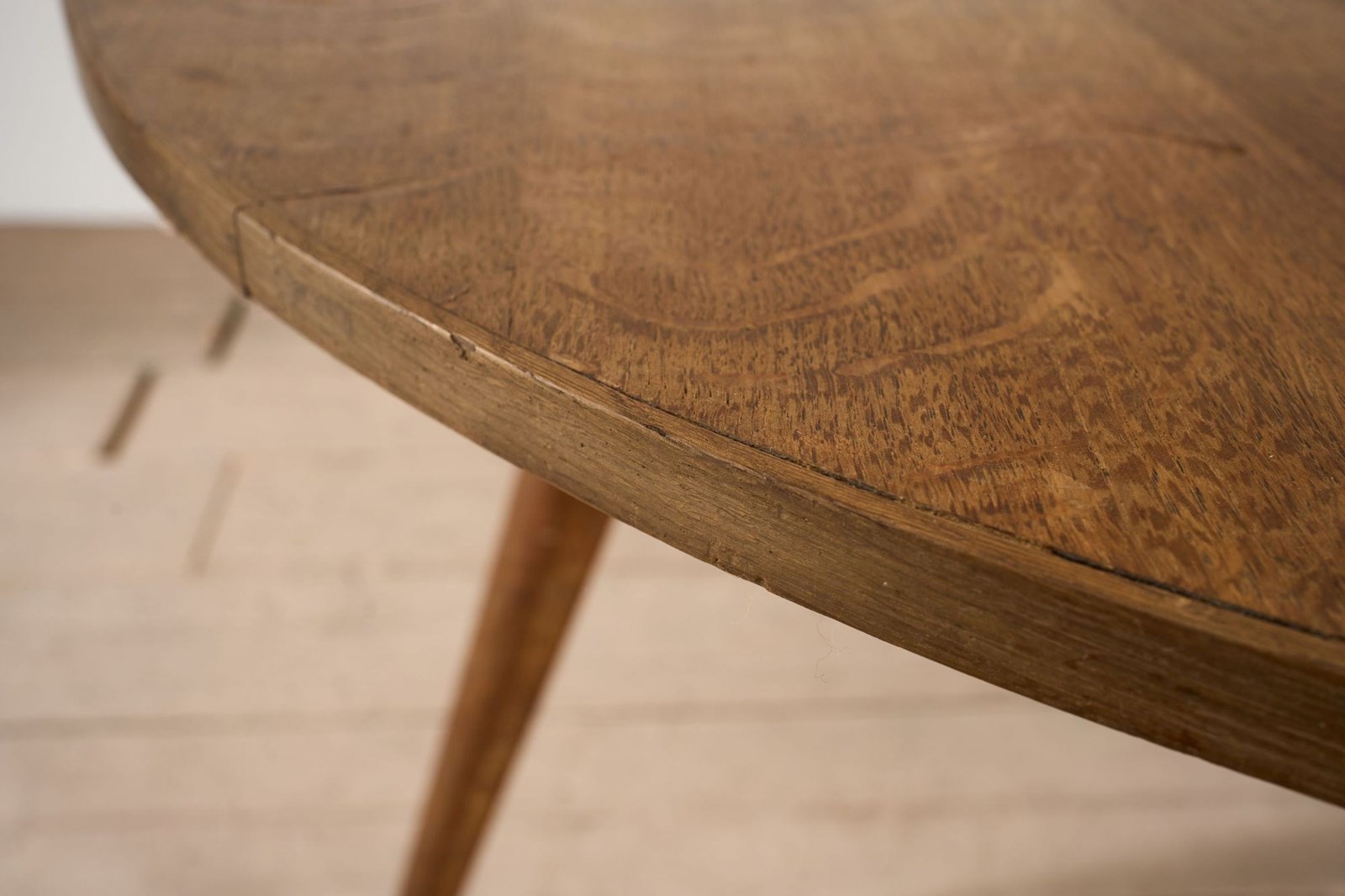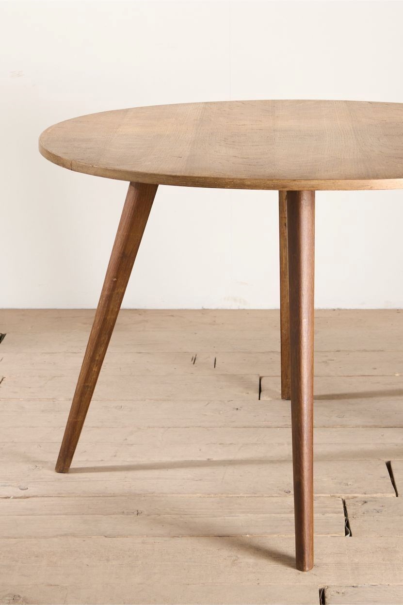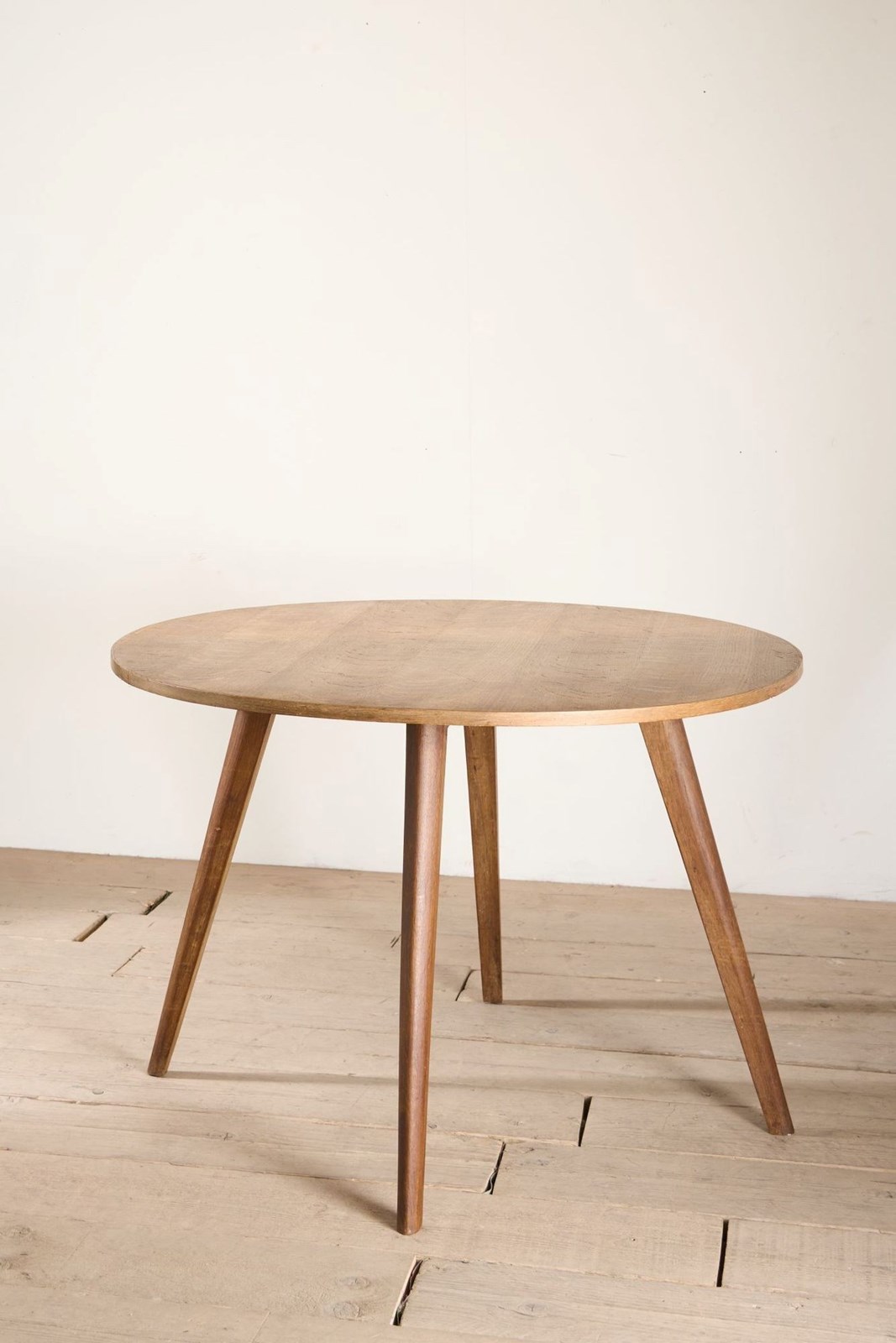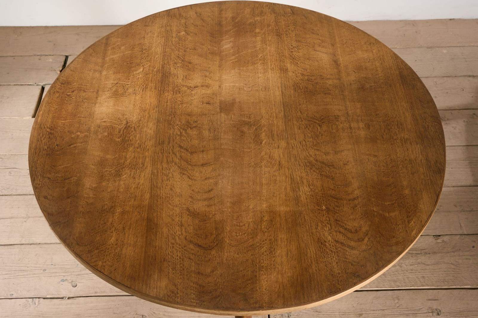 This is a lovely and simple mid 20th century circular centre table. Made from oak and oak veneer on the top. Lovely aged patina throughout and colour to the timber. The whole piece breaks down flat and sits perfectly sturdy once put together. Neat size making it ideal as a centre table or small dining table.