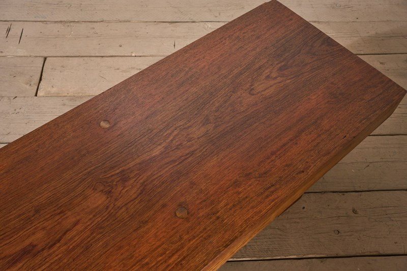 This is a superb bold piece of mid century furniture. Solid teak with a slab top that is unbelievably thick. The colour is fabulous as is the patina. Its a simple design that will work well in a huge number of interiors. Clean overall condition with no major issues just light general age related marks.