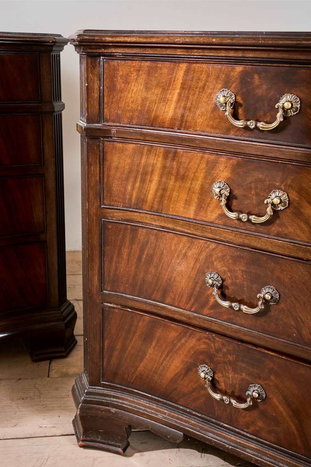 Pair Of 1920'S Serpentine Fronted Mahogany Jewellers Chest Of Drawers