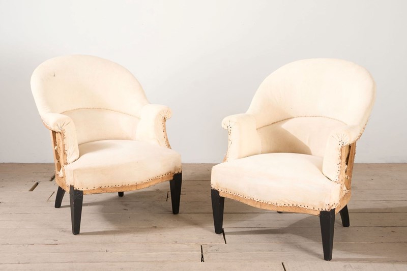 These are a great looking pair of Art Deco tub chairs. French in origin and the tapered legs just add to their elegance. You can really imagine these in a 30's club looking the part. Ideal seating for everyday use or looking good in the corners of rooms.