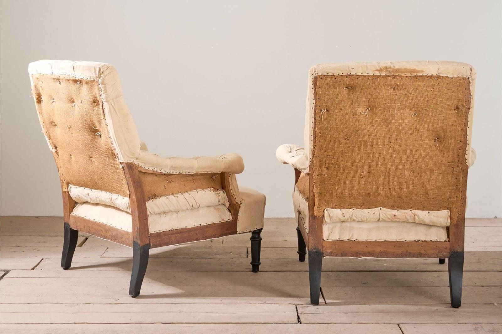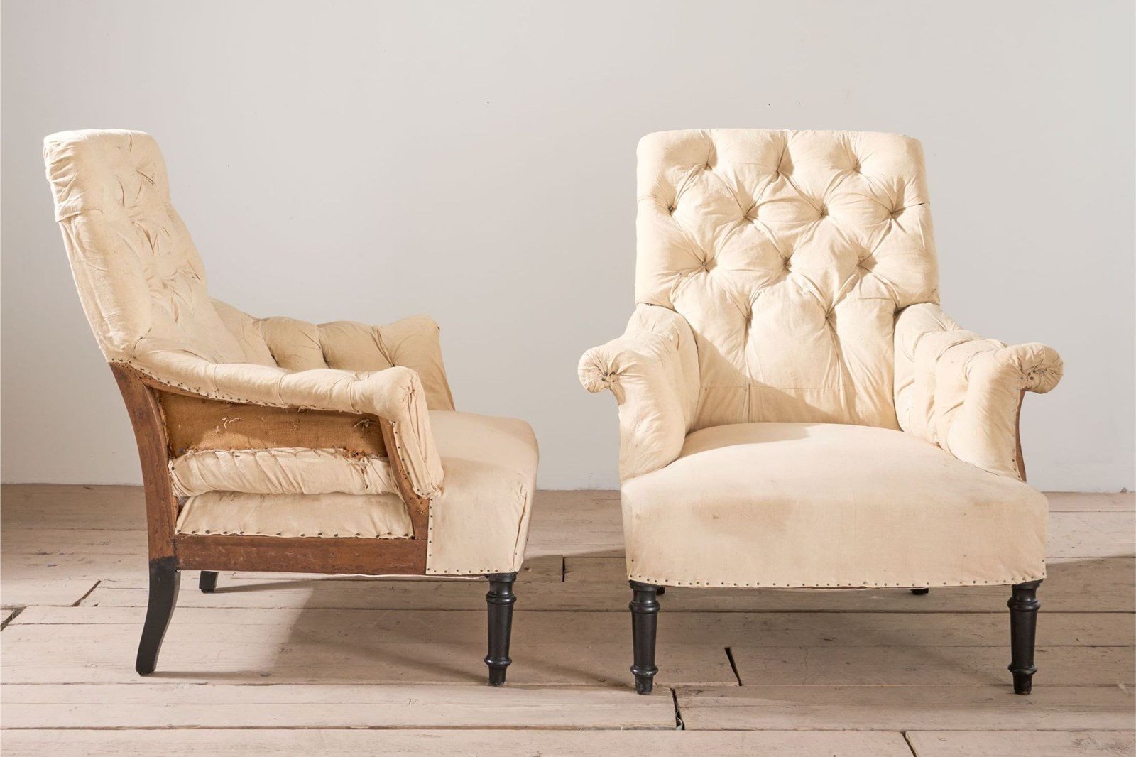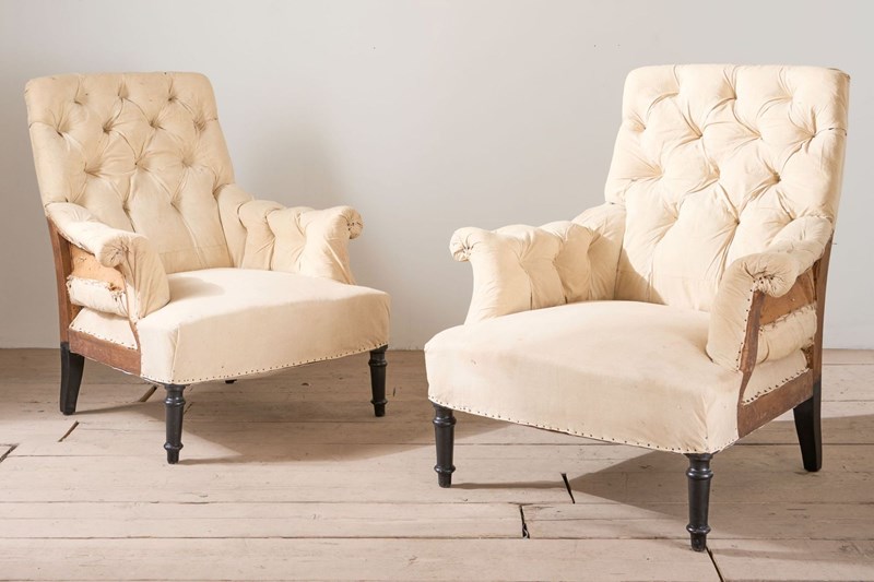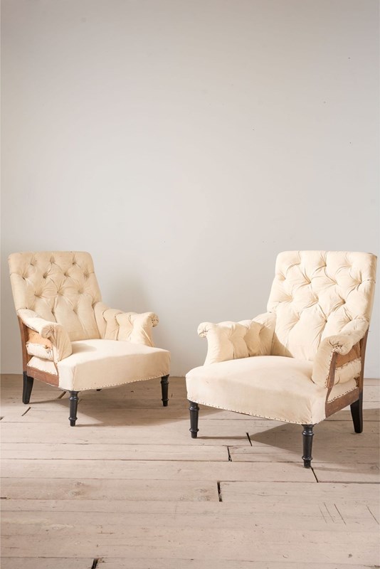 Pair Of Napoleon III Buttoned Square Back Armchairs