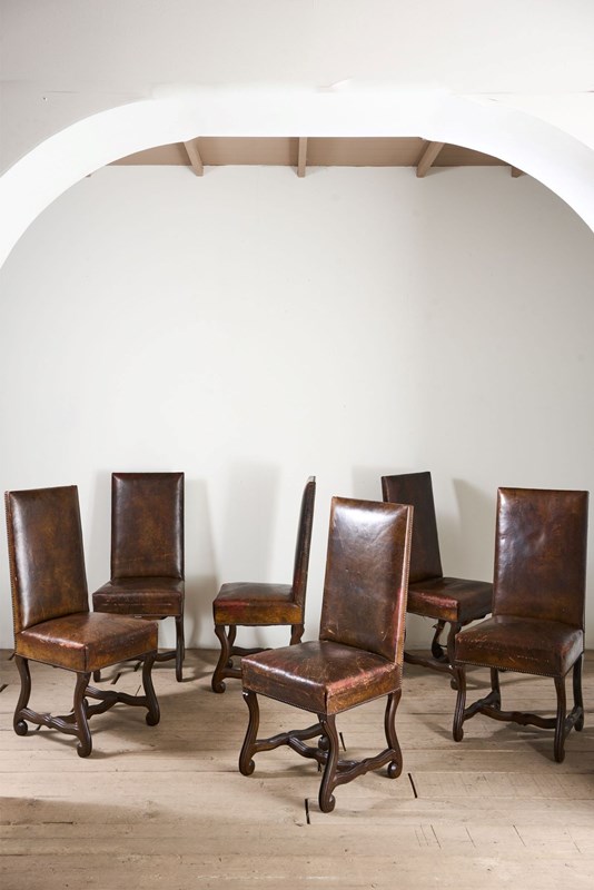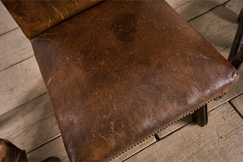 Set Of 6 19Th Century Spanish Leather Dining Chairs