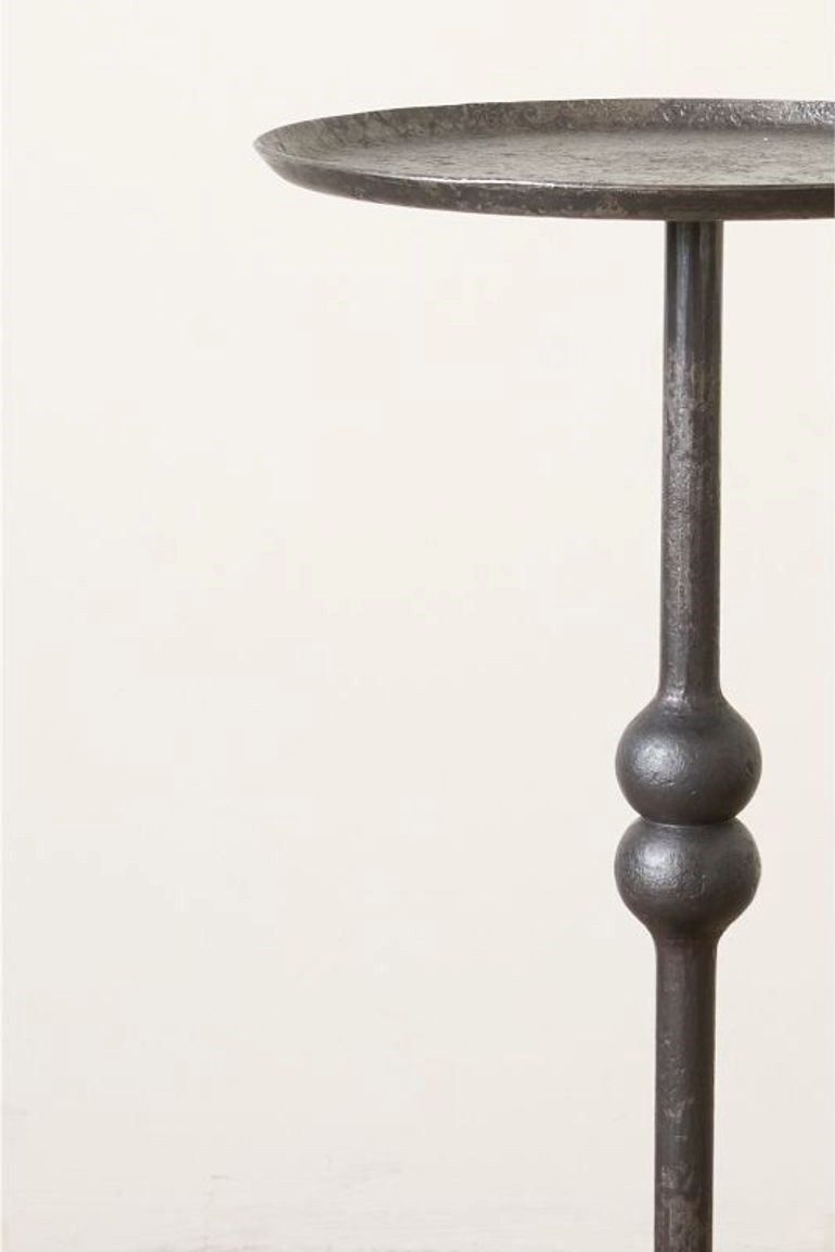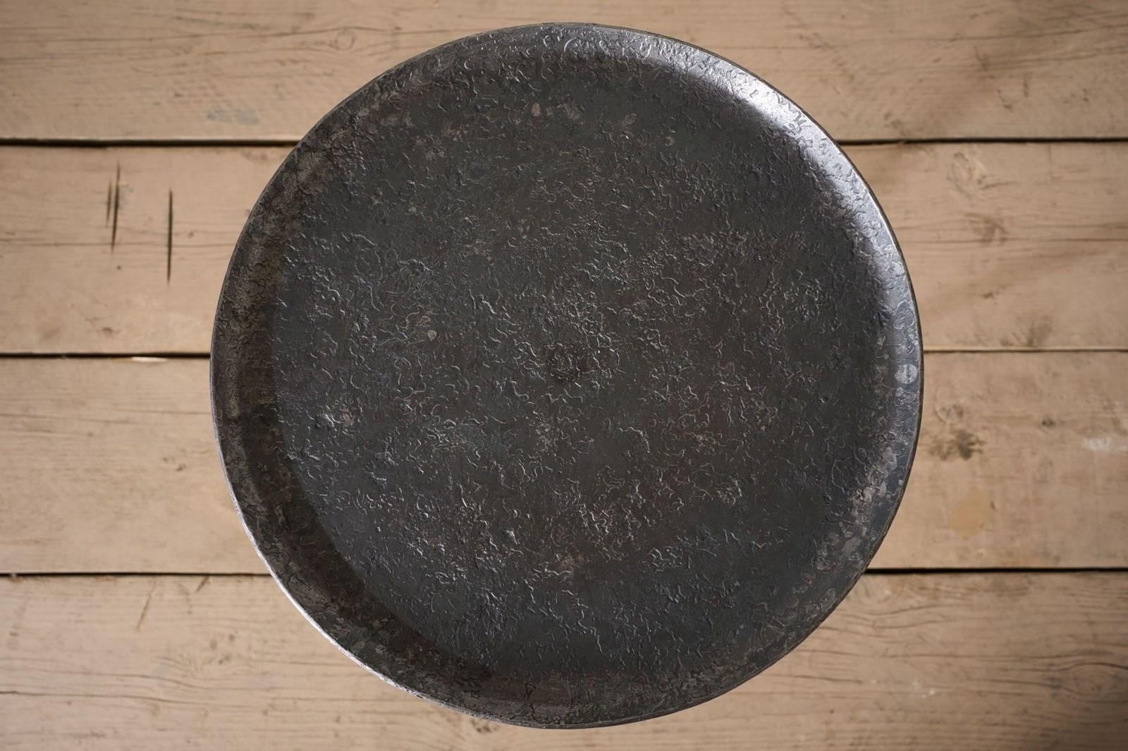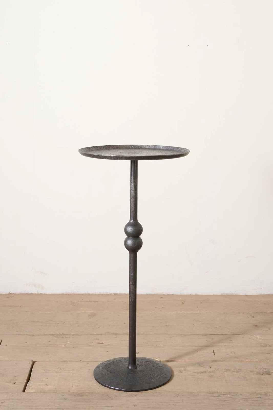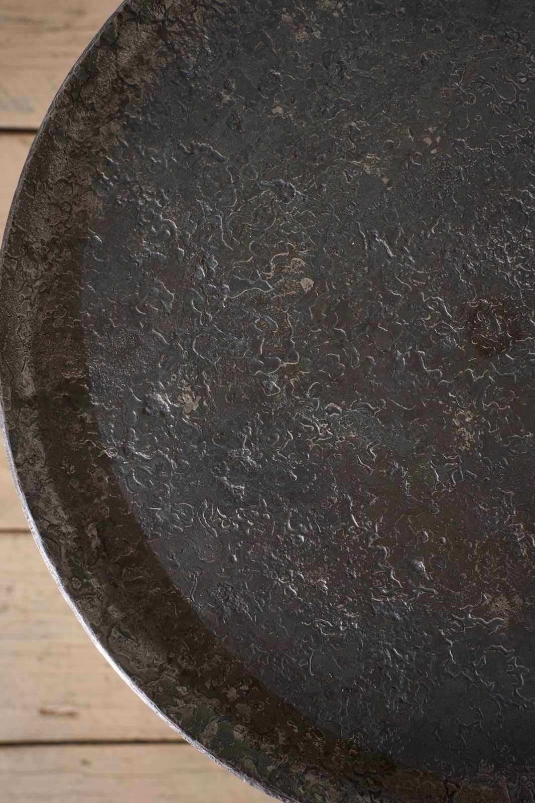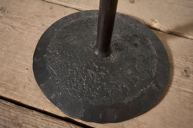 Fabulous patina is given to the table through the process of manufacture. The central stem with swage detail is made from one bar and shaped by hand. The top and base plate are cut, then hammered and pressed to shape meaning you get an attractive irregularity because of the hand made nature.