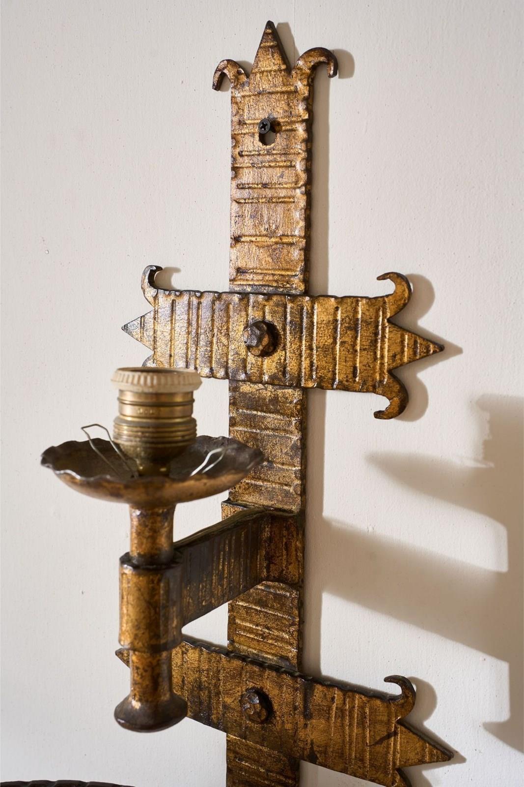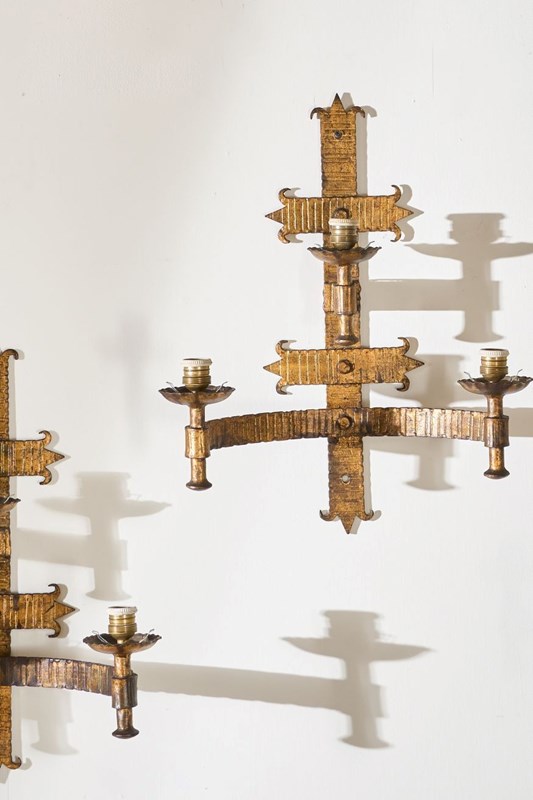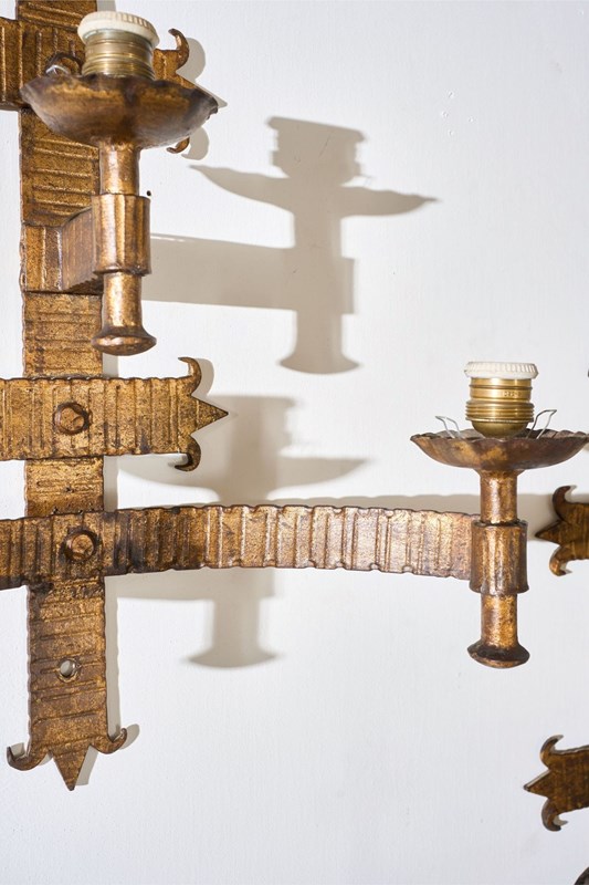 Trio Of Mid Century Spanish Gilt Metal Wall Lights