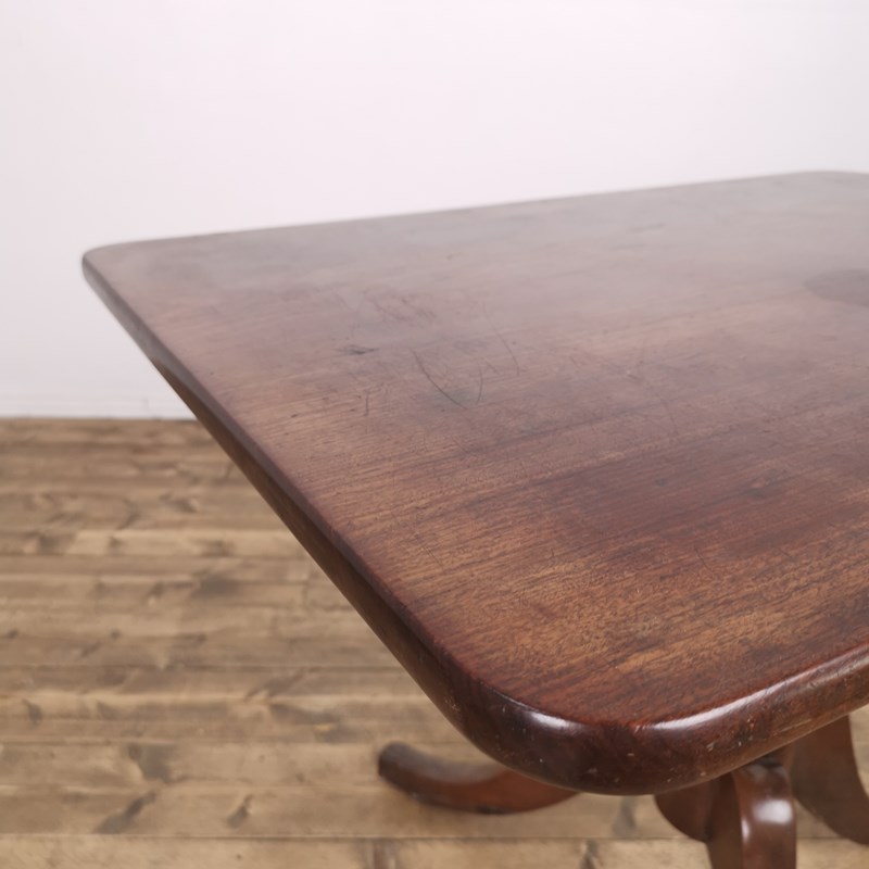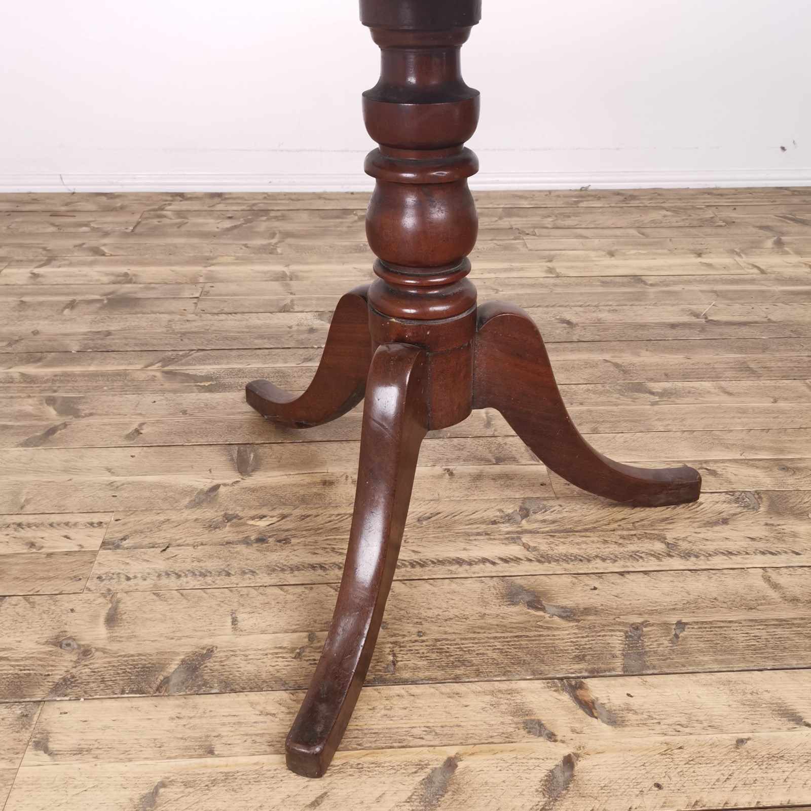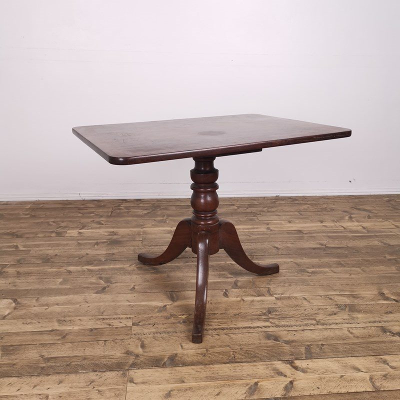 Made from mahogany with turned single pedestal on tripod legs. We'll put it through the workshop here in Stafford, make sure it's 'bob-on', give it a wax & polish all before it leaves us.
