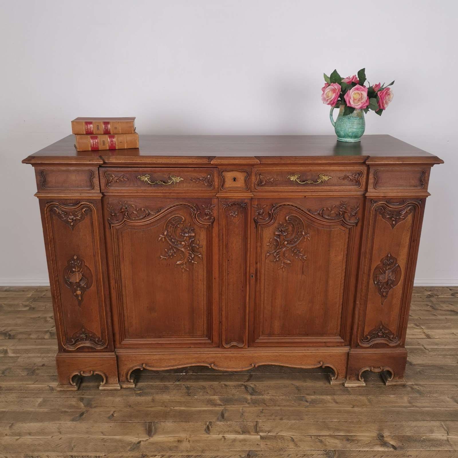 Ideal as a waiter station, it’s lovely quality and has great decorative carving to the front and drawers, as well as lovely cast brass handles.