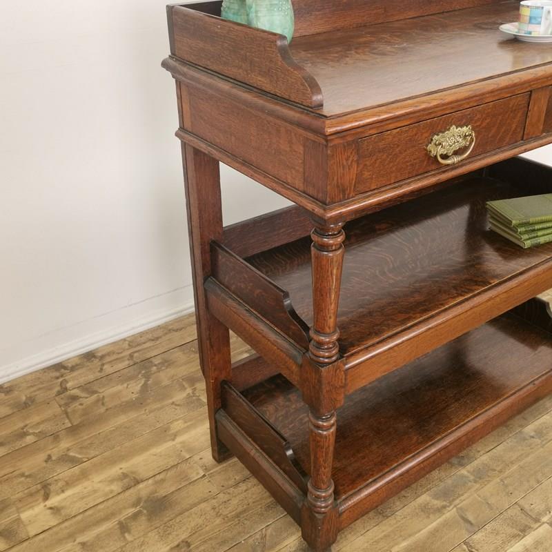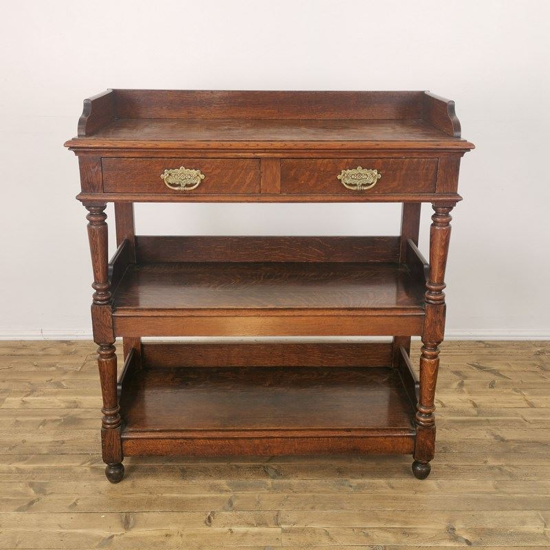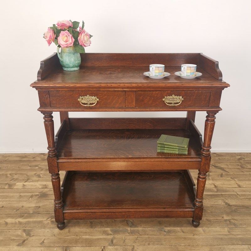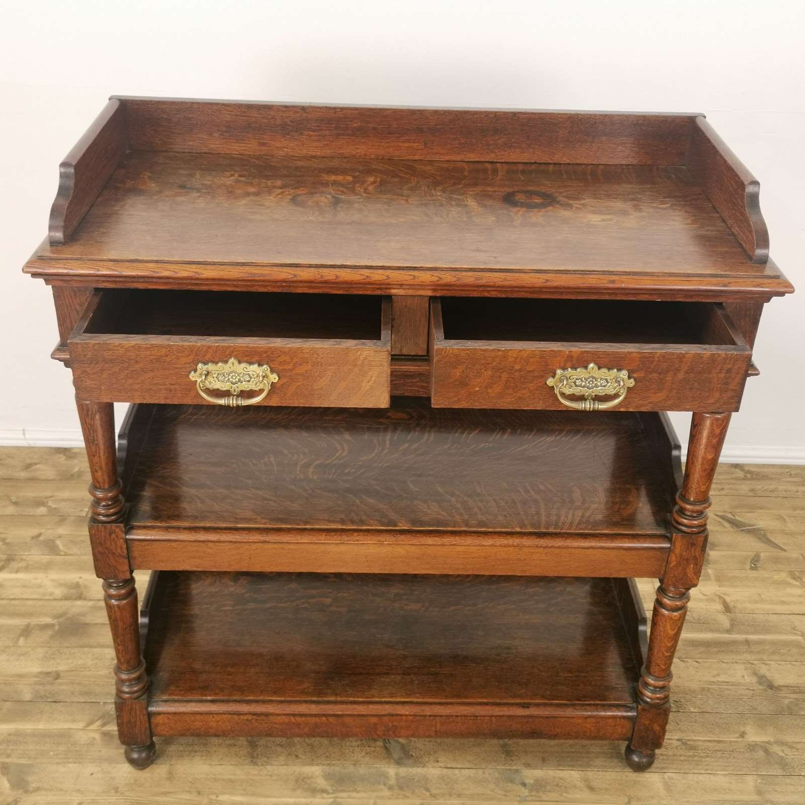 Made in solid oak, having two drawers to the top and upstands surrounding each shelf this makes a great addition for storing or serving from.