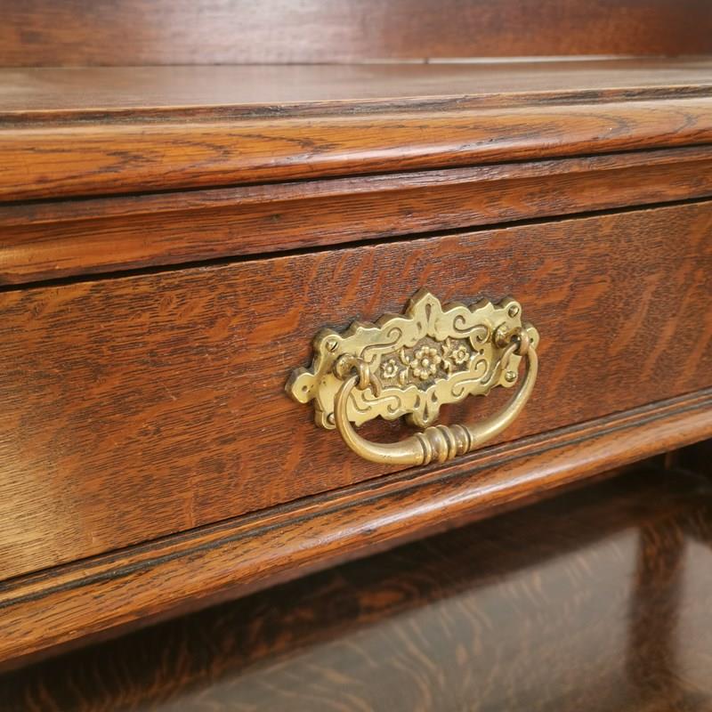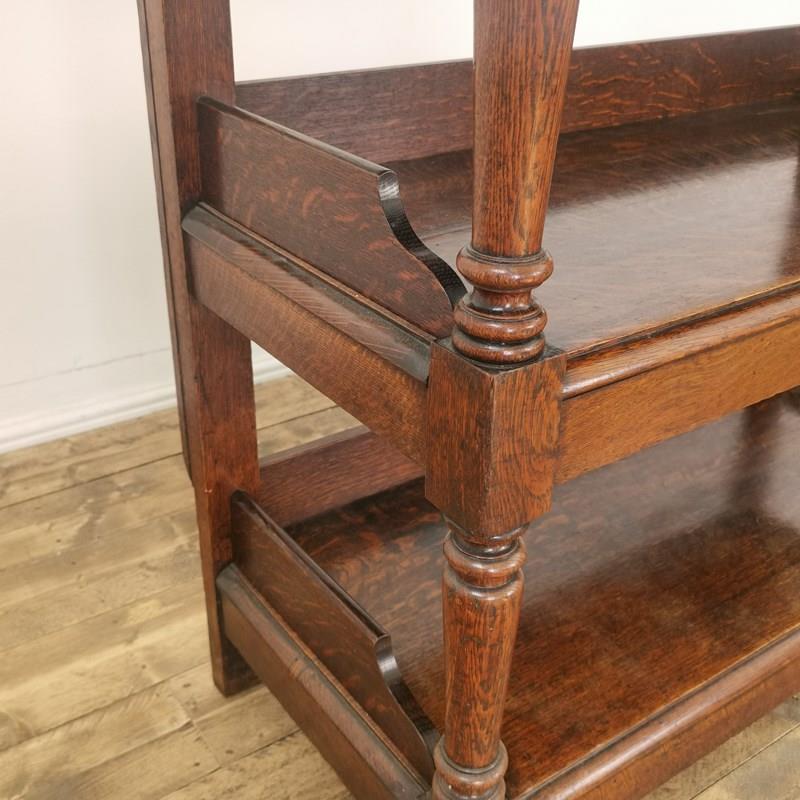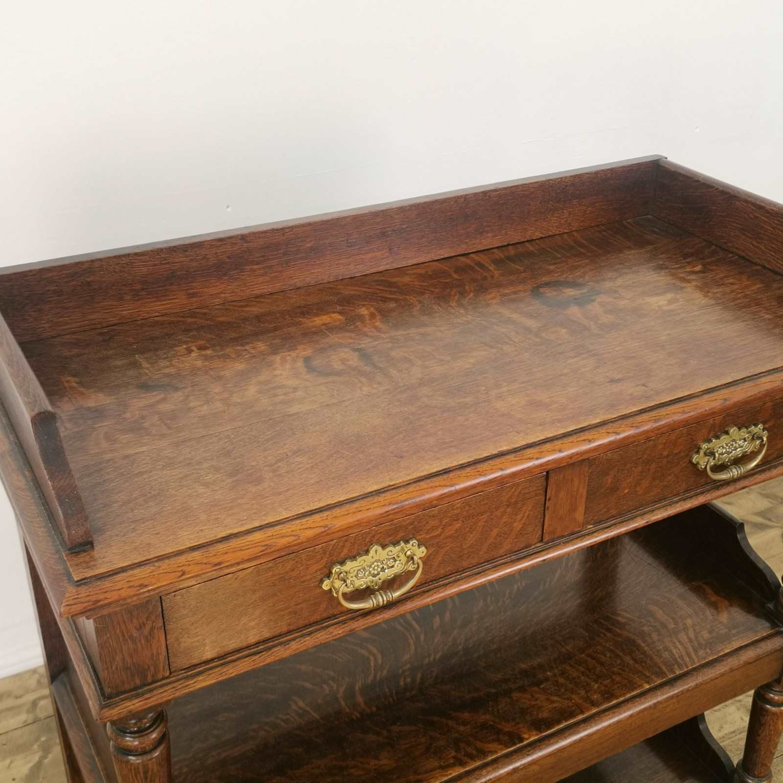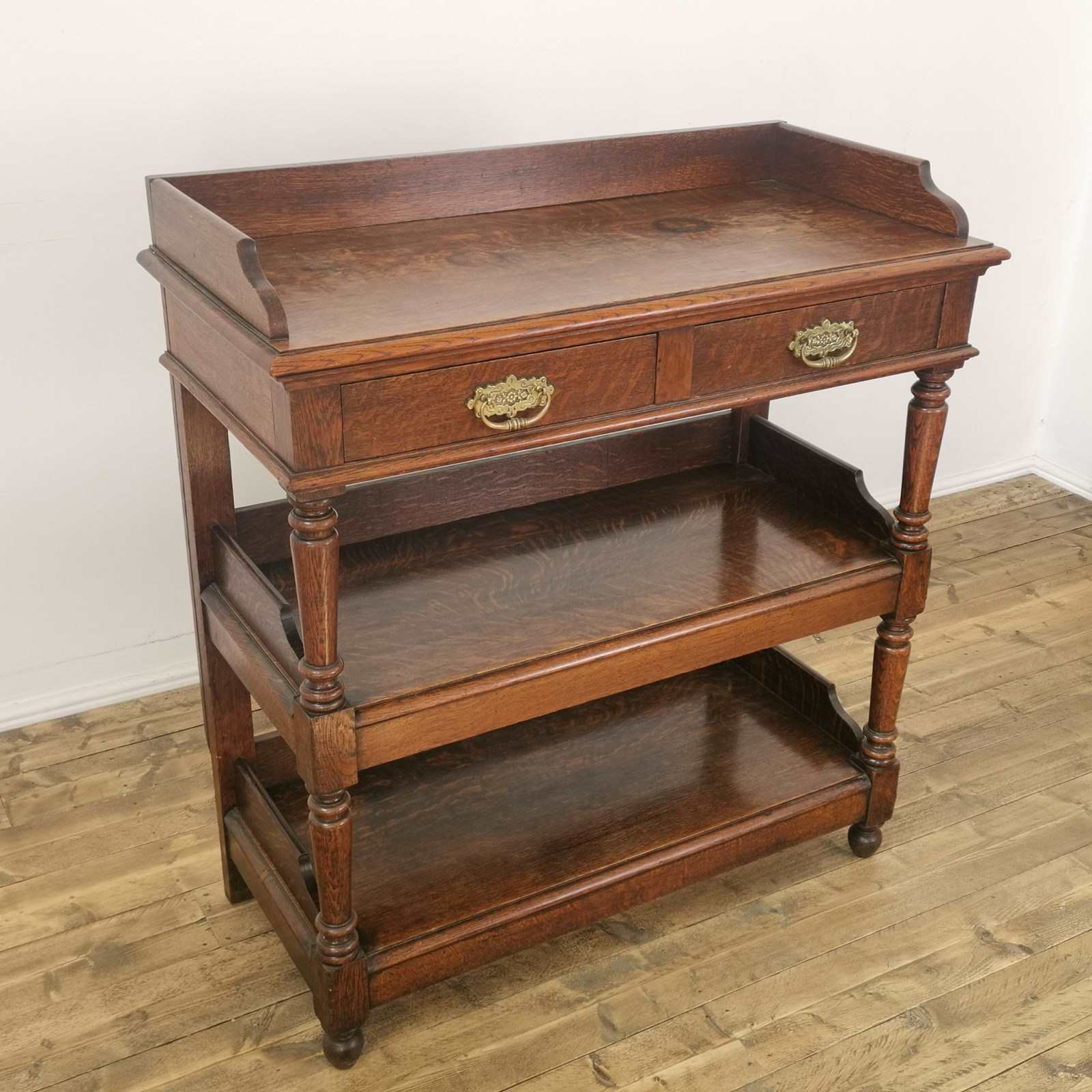 Made in solid oak, having two drawers to the top and upstands surrounding each shelf this makes a great addition for storing or serving from.