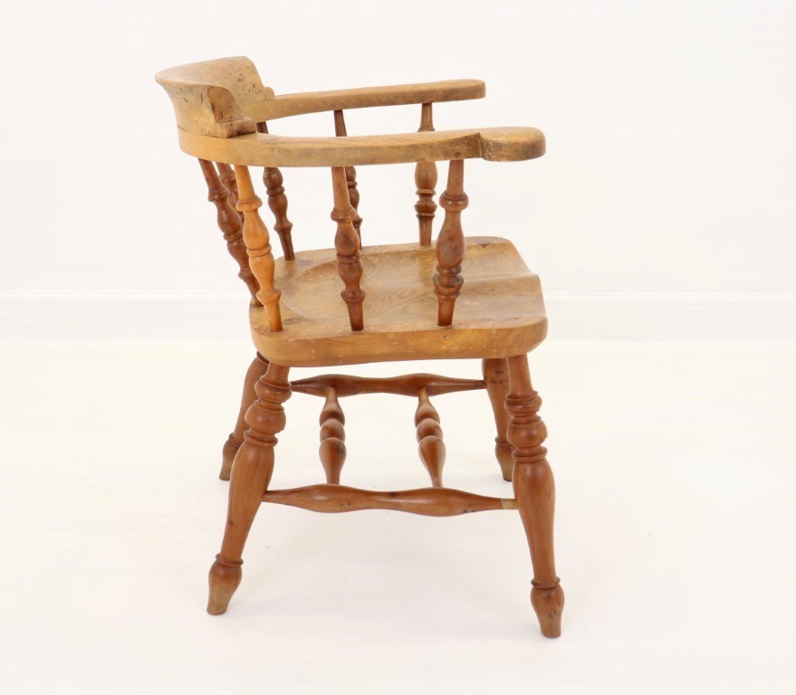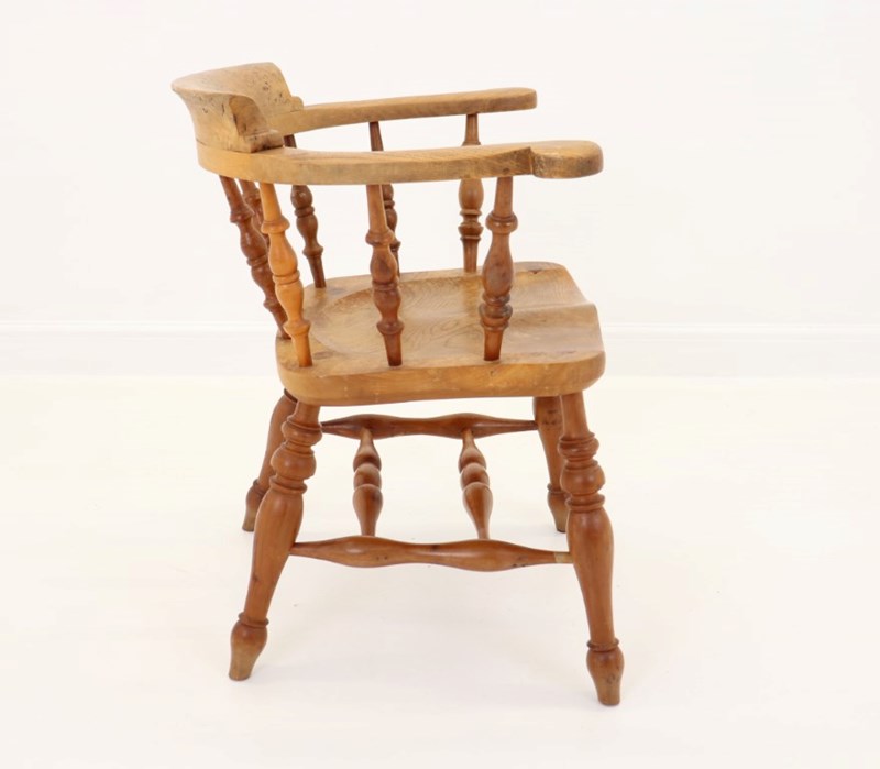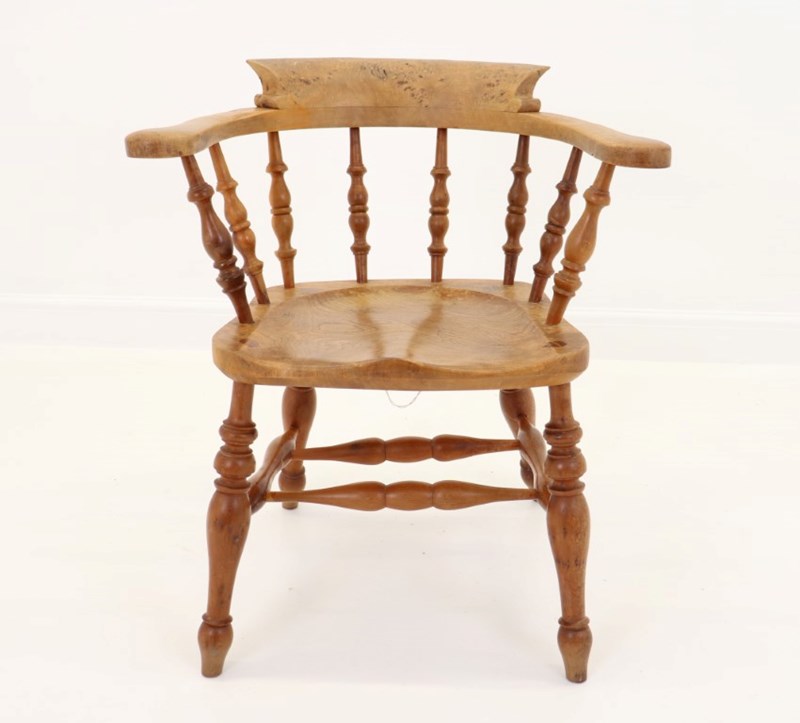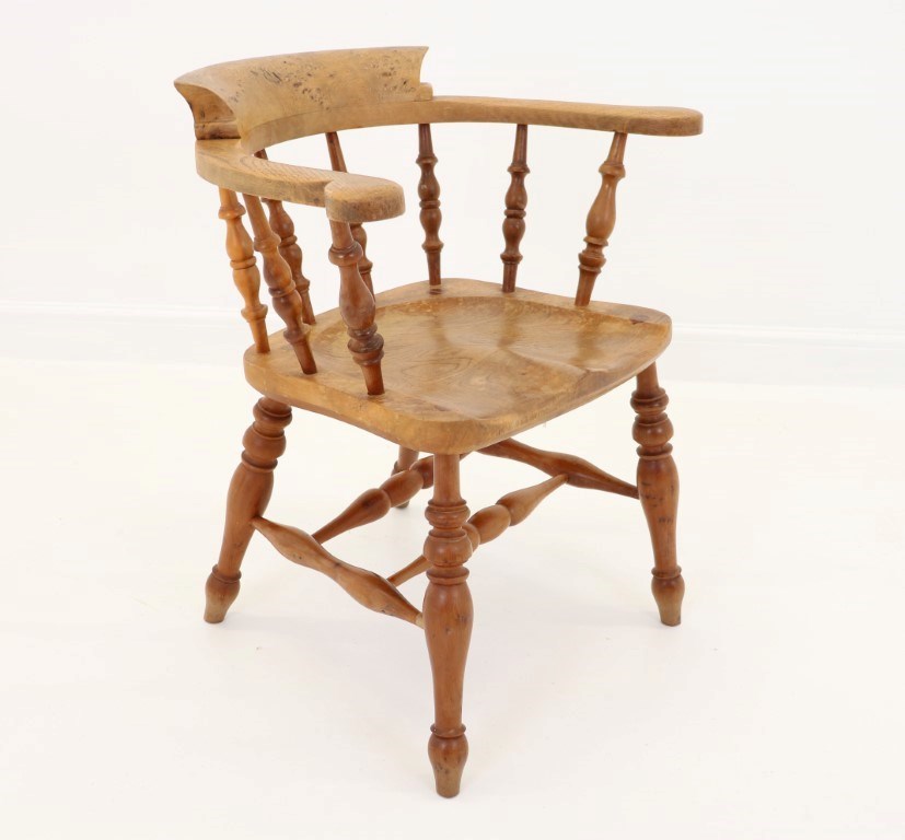 A traditional Smokers bow armchair made from Yew wood. Having well-turned spindles and stretchers and a lovely shaped seat.