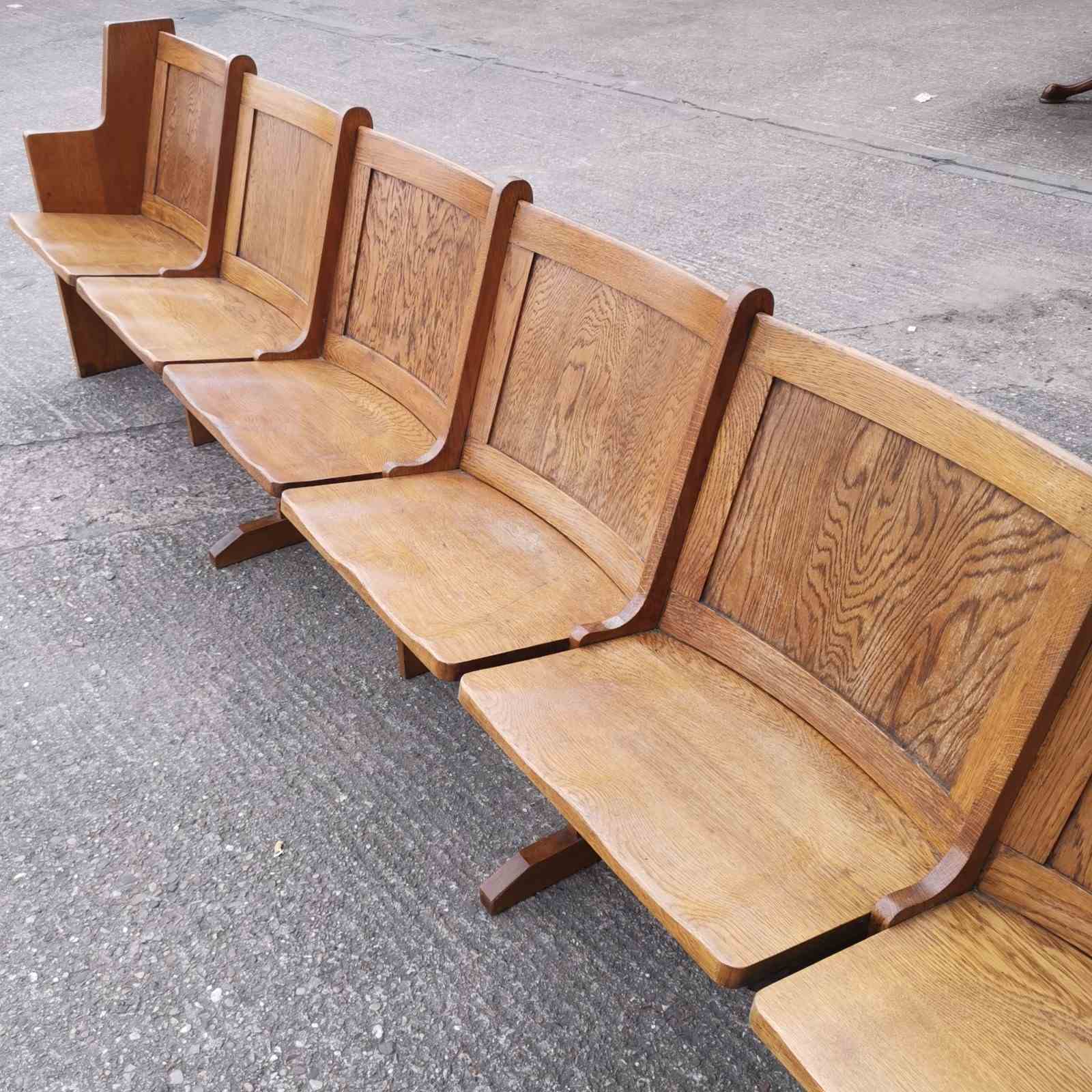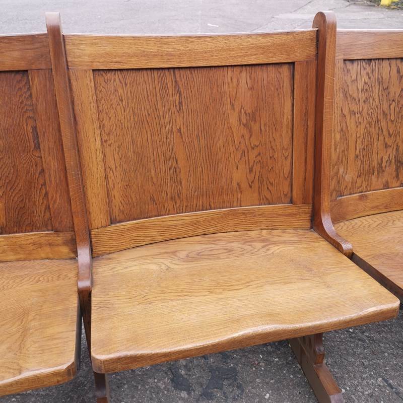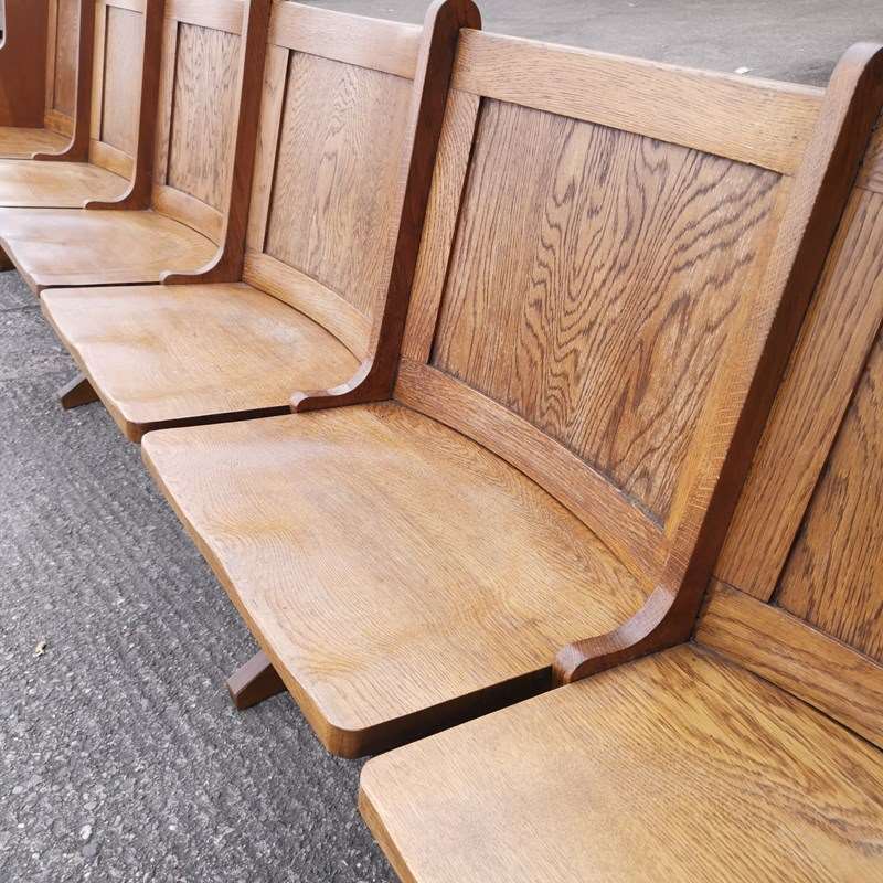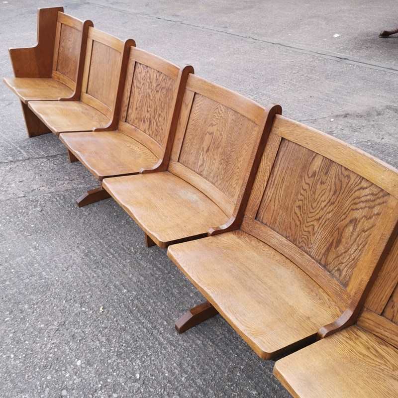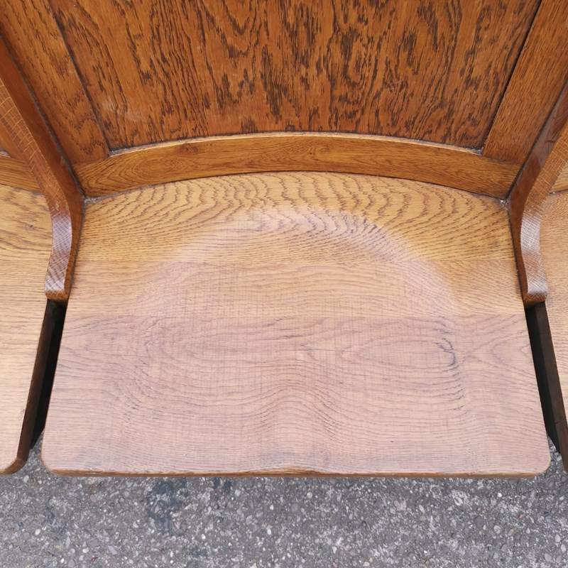 Good solid construction with shaped solid oak seats and bowed plywood backs. It has been through our workshop, has been checked over and waxed up and is in very good fettle.