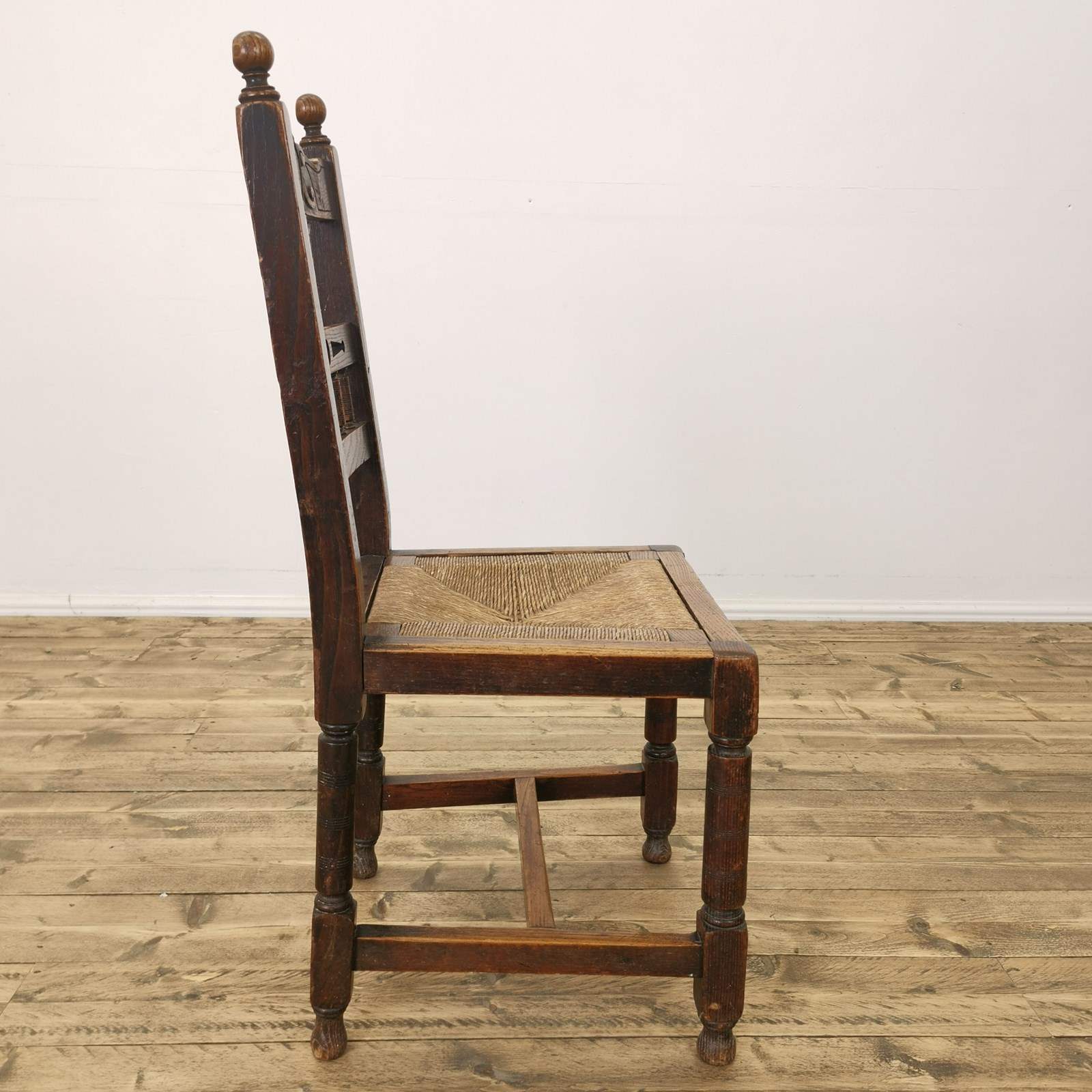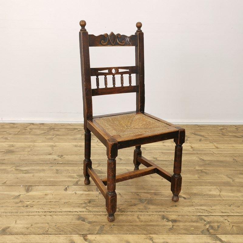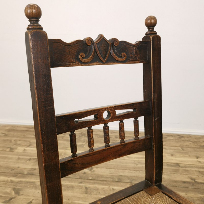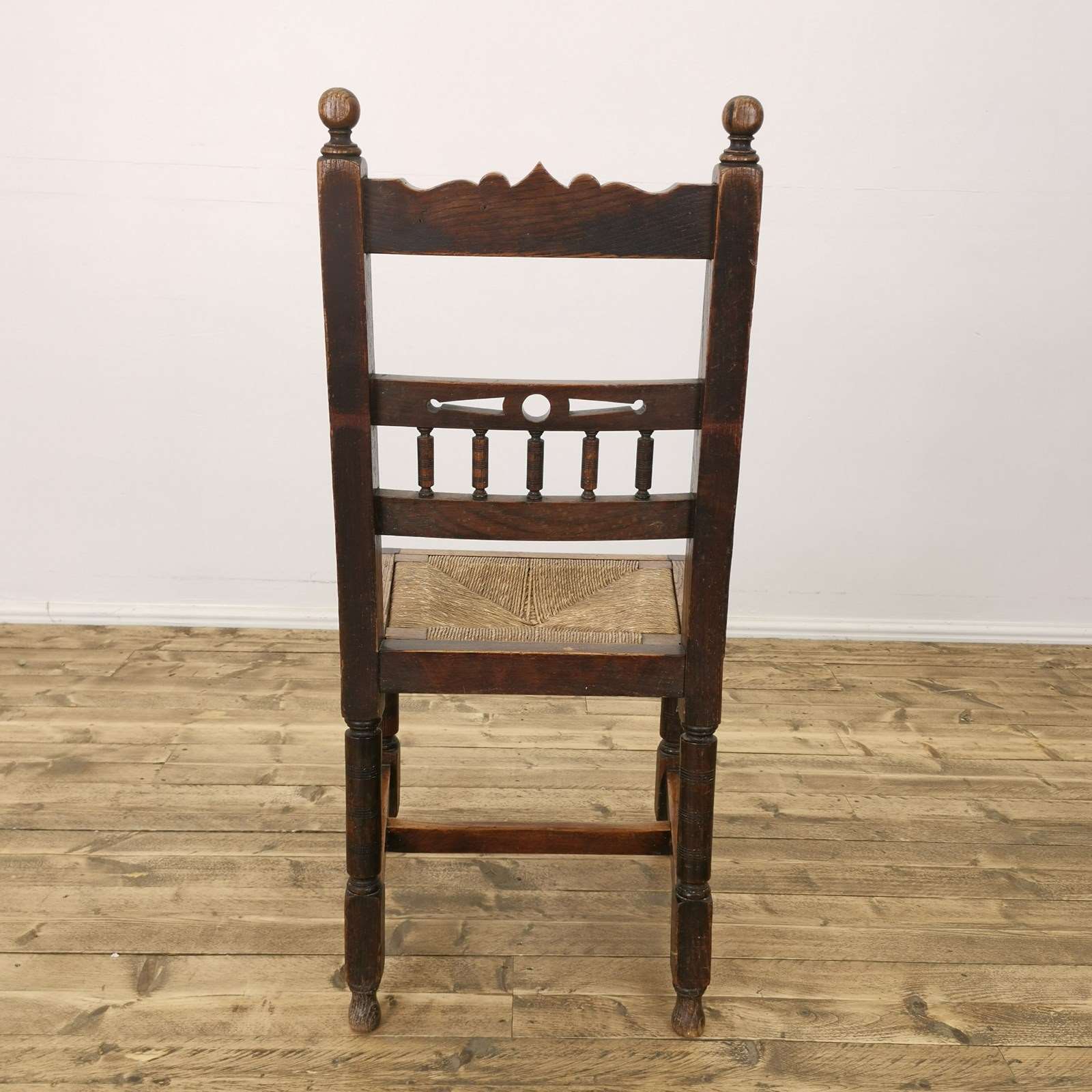 Wonderful set of solid oak framed chairs. We’ll add seat boards and foam to the seat, unless you’d prefer the rush seats as they are.