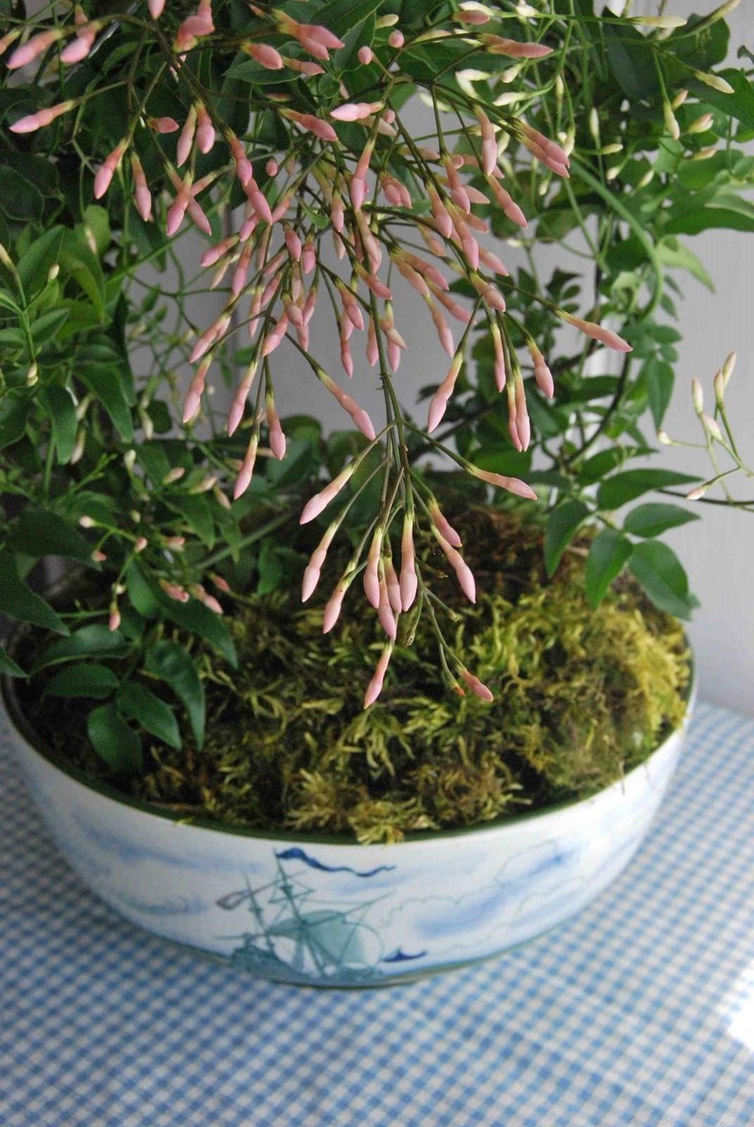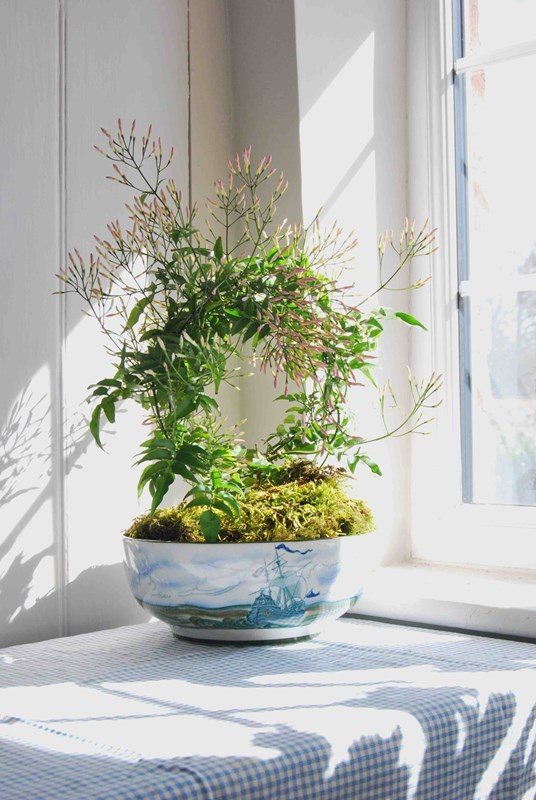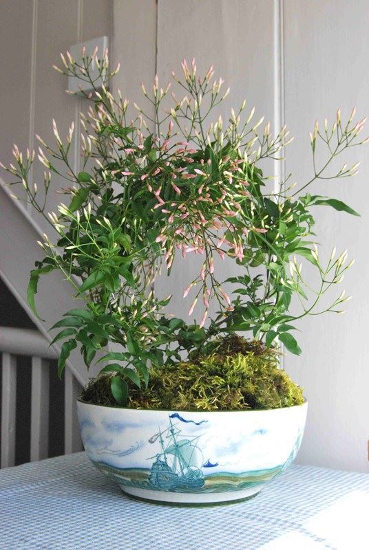 This is a good piece in excellent condition - no chips or cracks - just light crazing (shown) commensurate with age. Planted with indoor jasmine which will flower for weeks with the glorious scents and which can be planted outside in the garden after it has finished flowering. We provide both plant care instructions and provenance. The potted plant is preferably collected from our barn but can also be couriered.