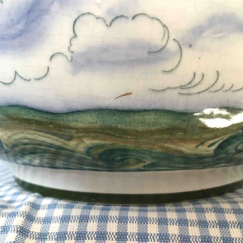 It was made by Furnivals in Elder Road Pottery Works, Cobridgea and the piece dates between 1895 and 1912. The ceramic art and the quality of the painting is quite exceptional and this could be attributed to the introduction c1865 of a method of crayon drawing and painting on the unglazed surface of earthenware and china, using the drawings made by artists.