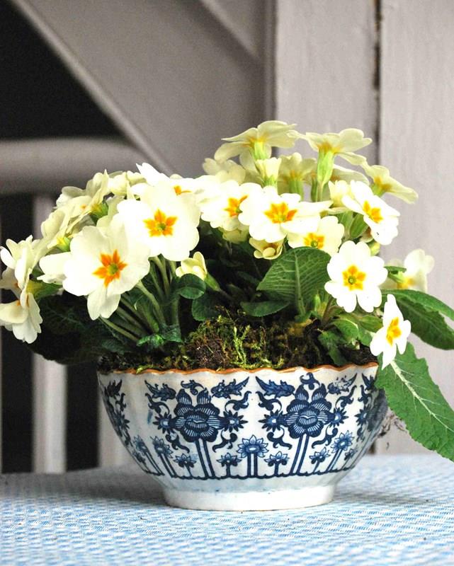 Georgian Pearlware Bowl In Royal Lily Pattern Planted With Primroses