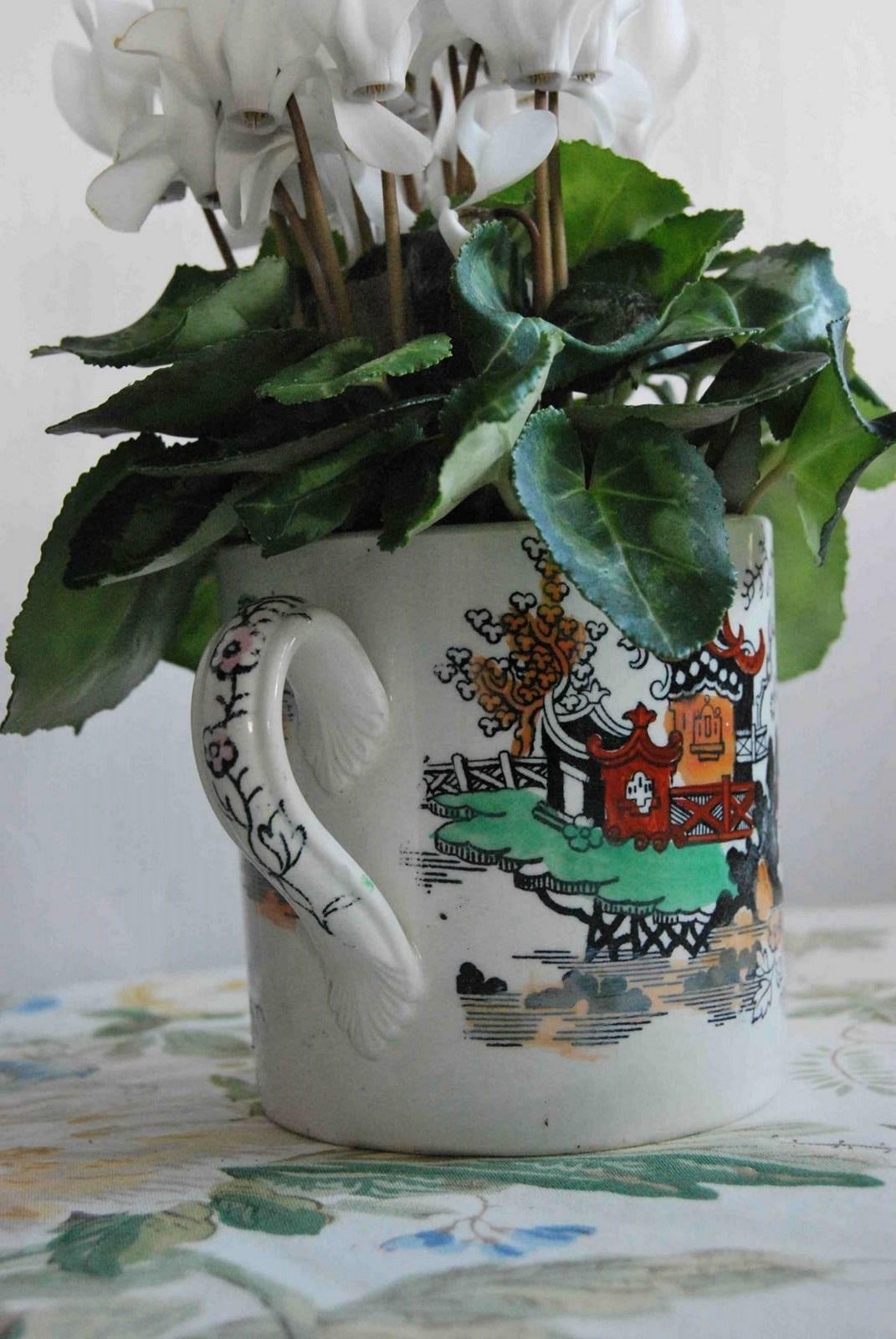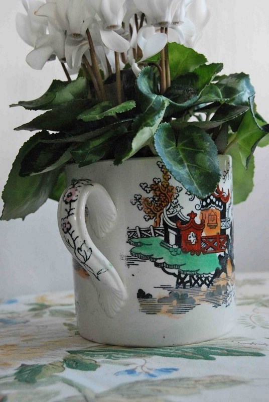 Victorian Chinoiserie Loving Cup With White Cyclamens